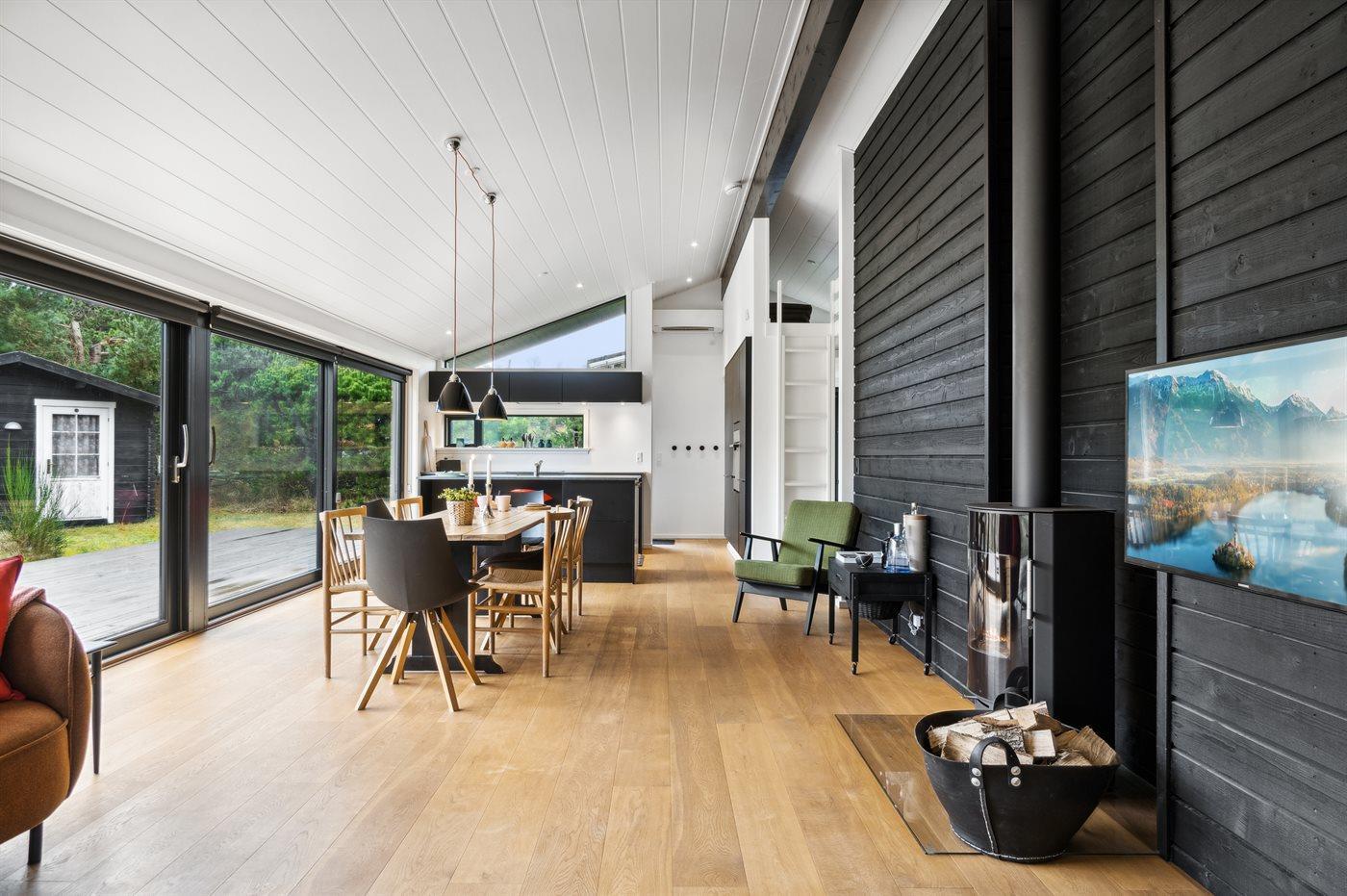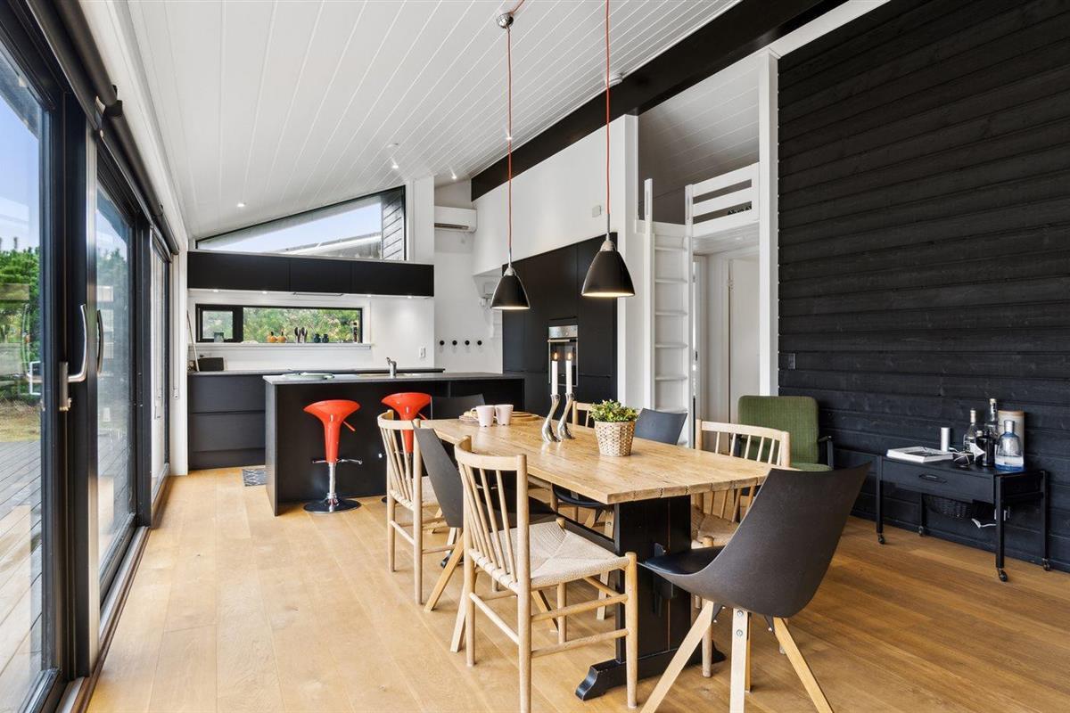 De keuken is uitgerust met koelkast Er is 4 inductiekookplaten, heteluchtoven en vaatwasser.