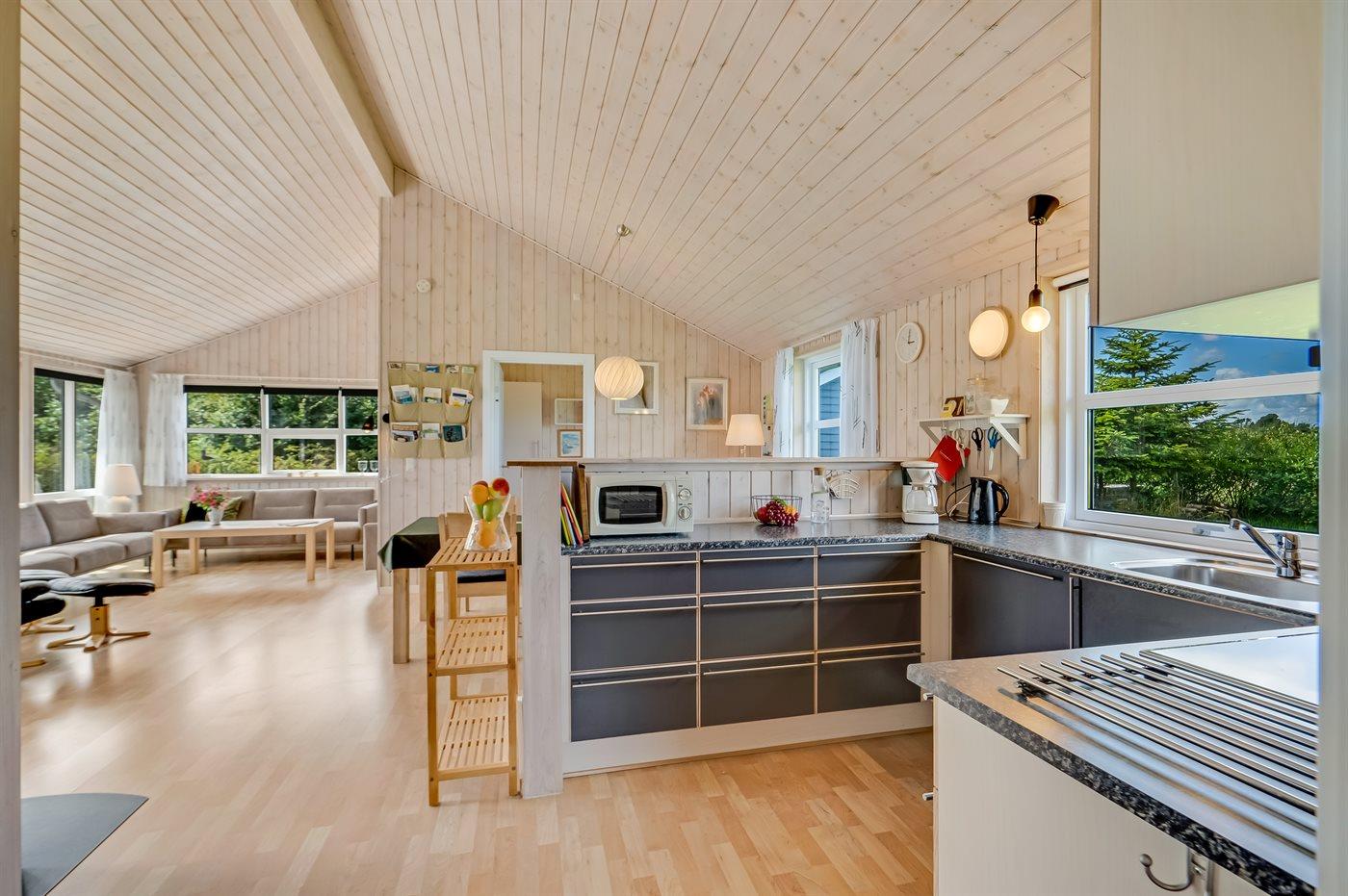 De keuken is uitgerust met koelkast Er zijn 4 keramische kookplaten, heteluchtoven, magnetron en vaatwasser.