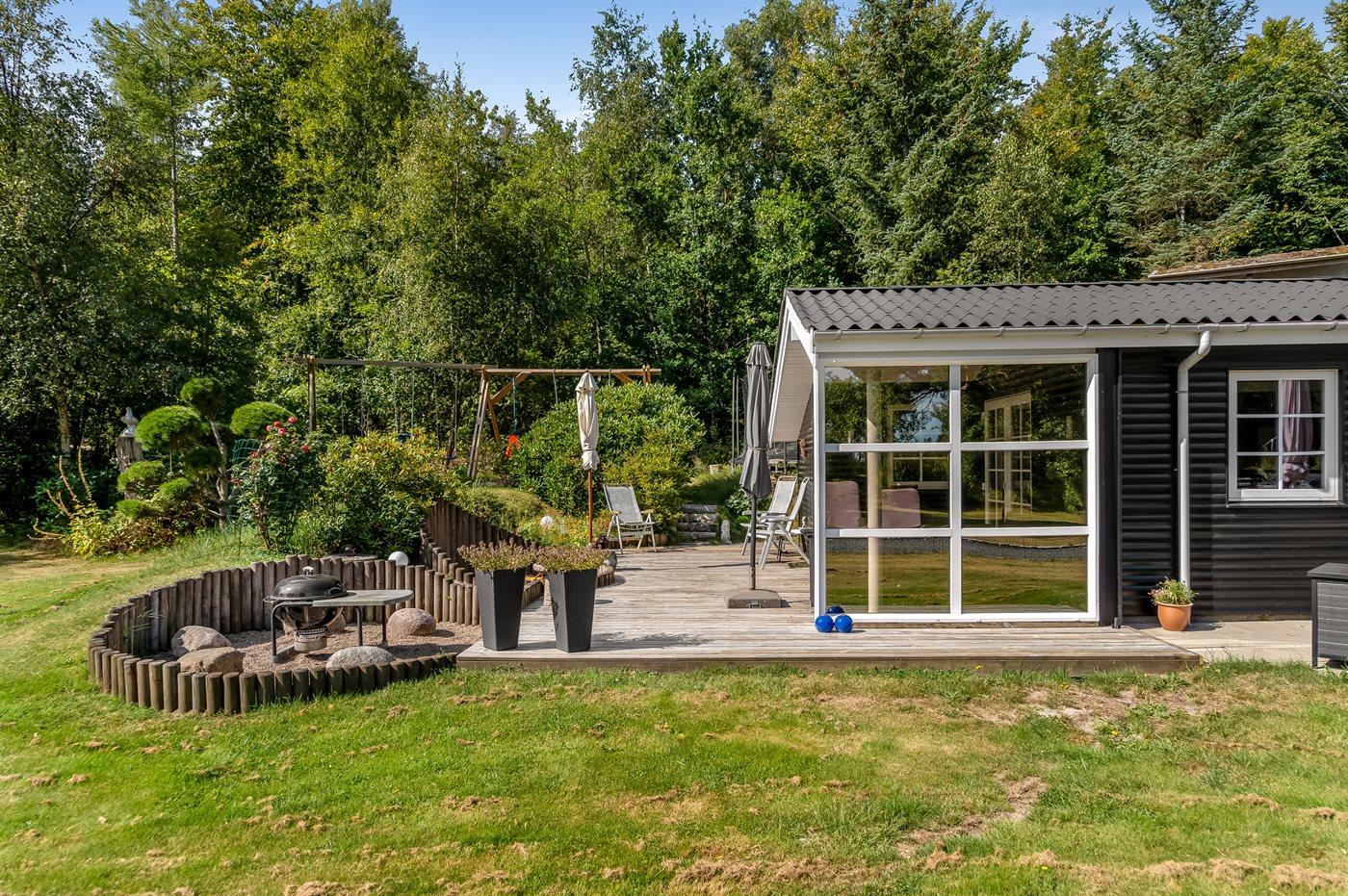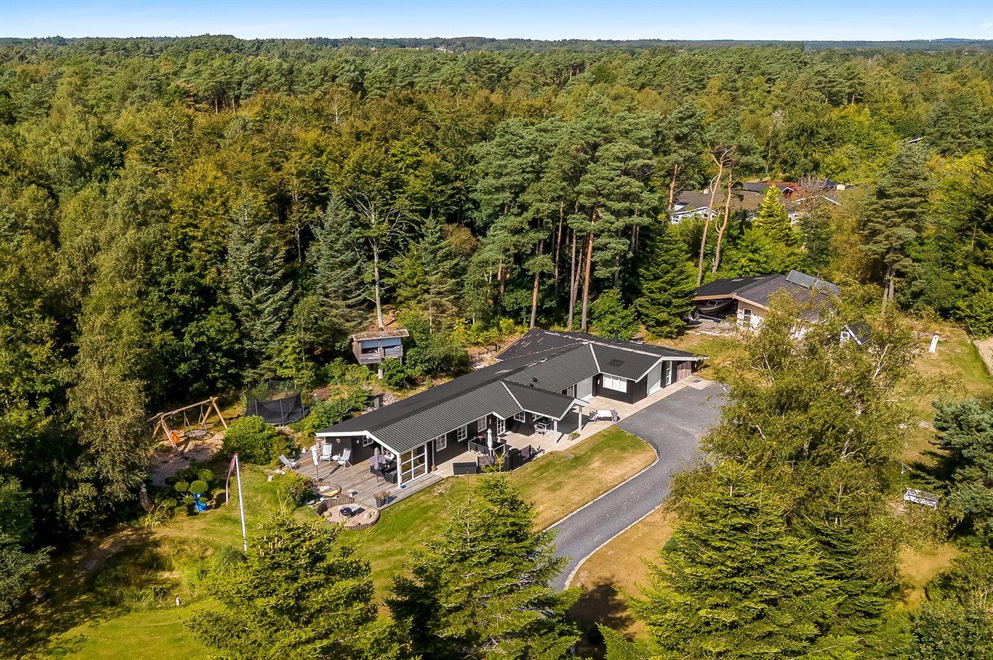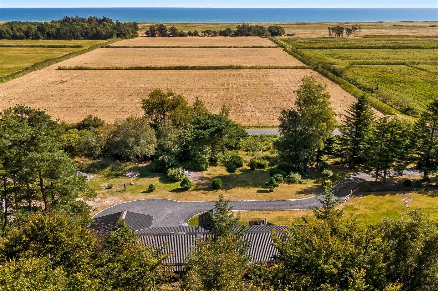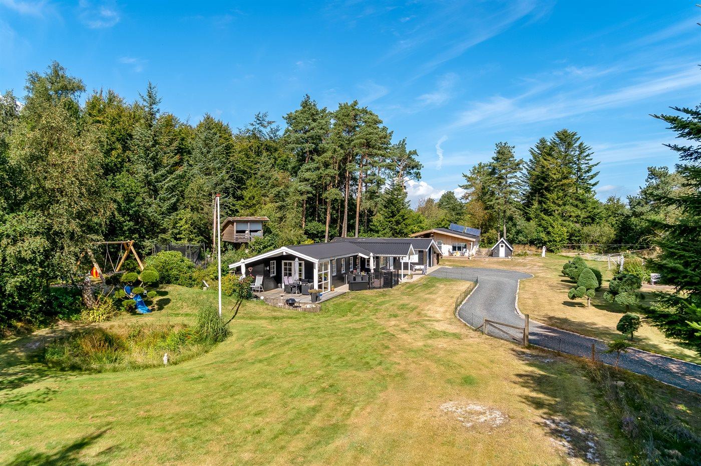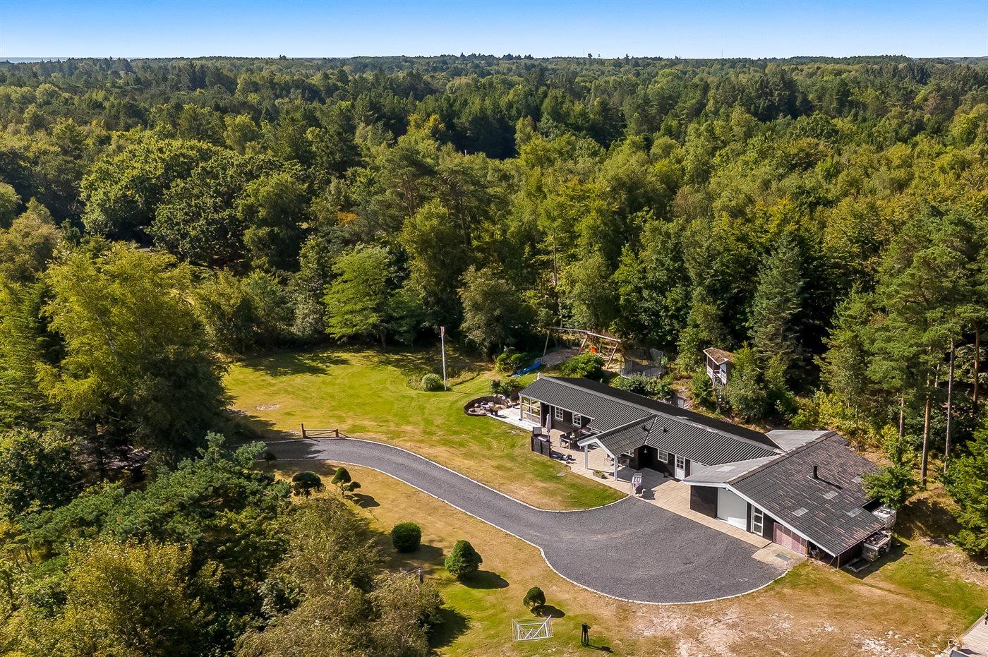 De vakantiewoning is gelegen op een 5240 m² groot aangelegde tuin. Afstand tot de zee 850 m. Dichtstbijzijnde winkel 3800 m. Er is een golfbaan op een afstand van 11000 m. Bij de vakantiewoning hoort 50 m² terras. Daarnaast is er een 21 m² groot overdekt terras. Bij de vakantiewoning hoort terras. Daarnaast is er een overdekt terras. Schommel. Trampoline. Glijbaan.Vuurplaats. Barbecue. Het huis heeft een stopcontact voor het opladen van een elektrische auto. Parkeerplaats bij het huis.