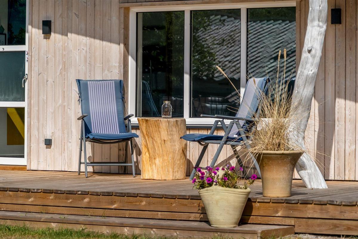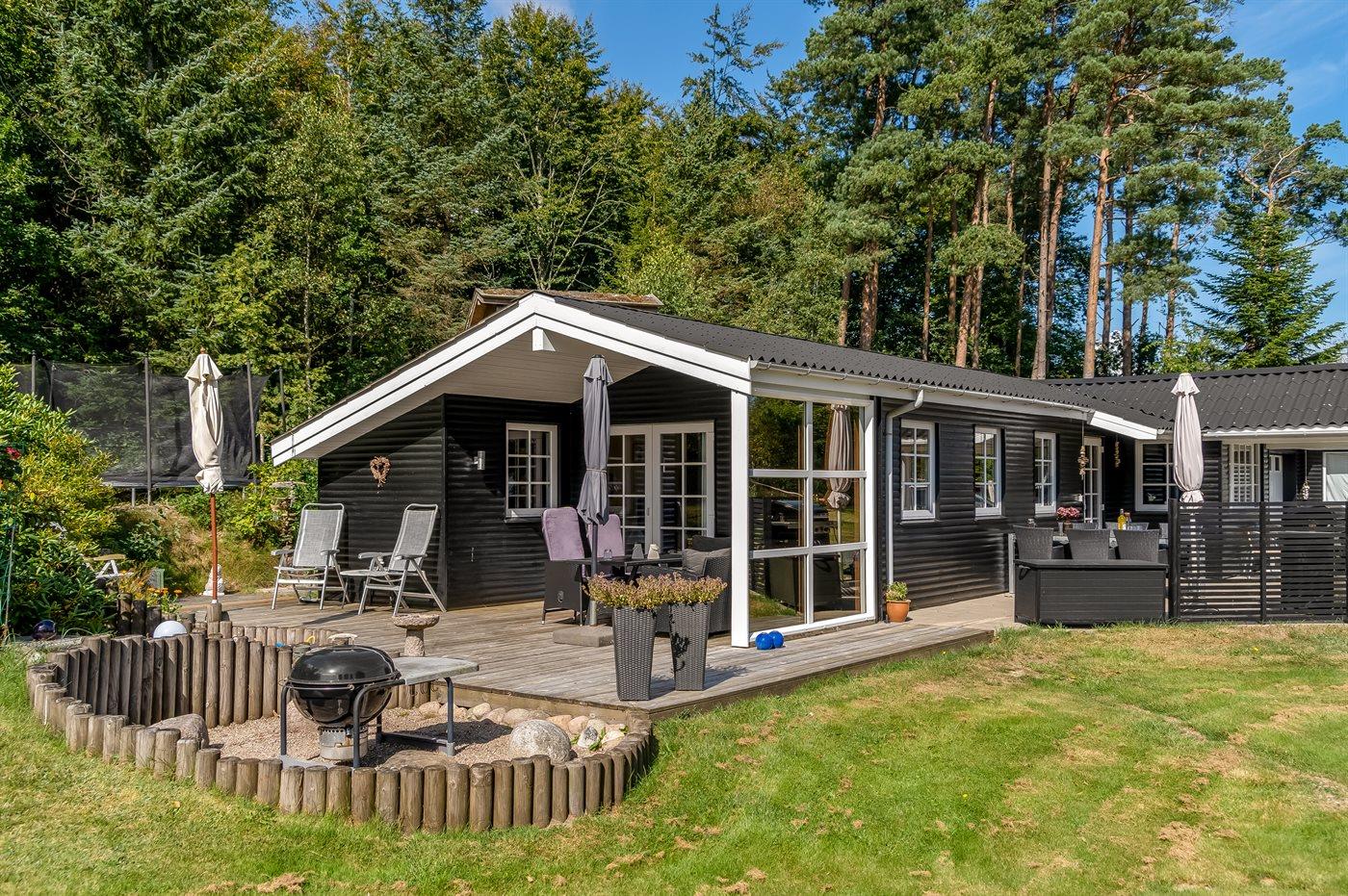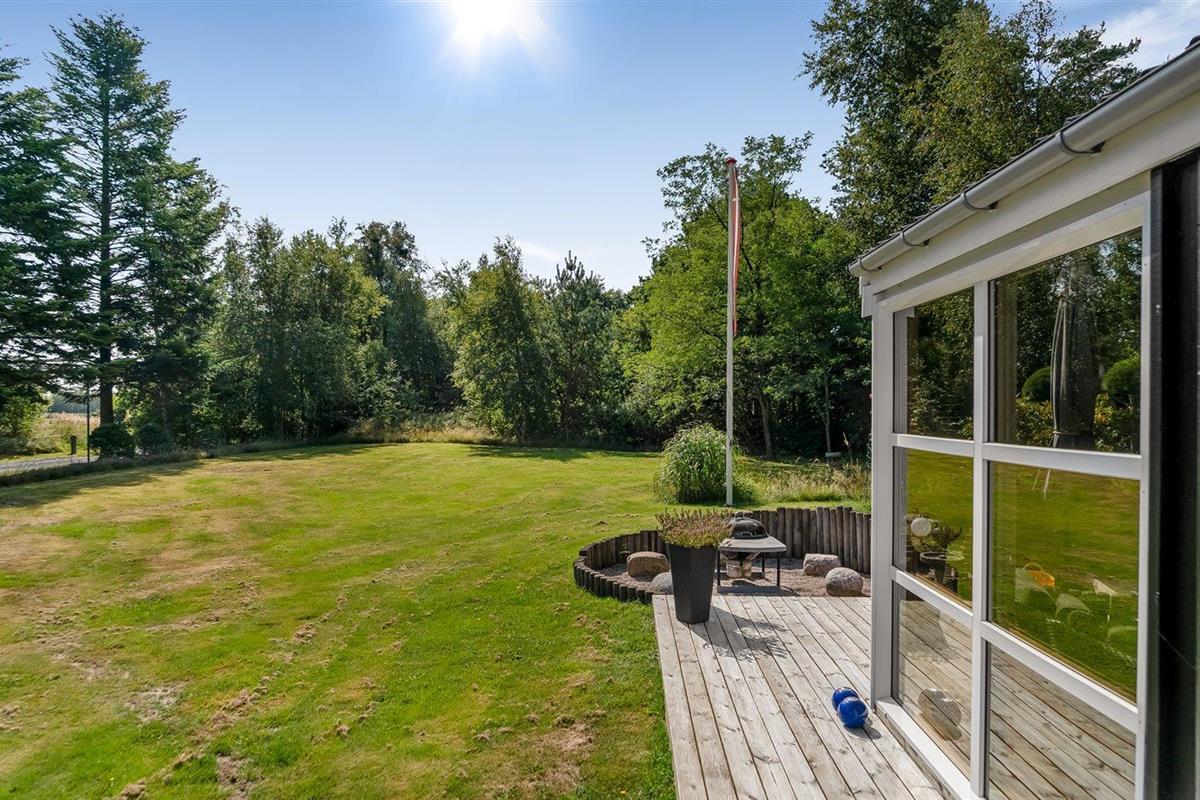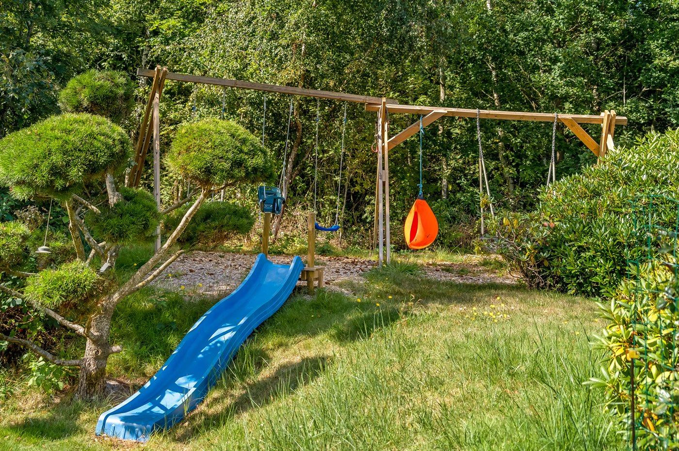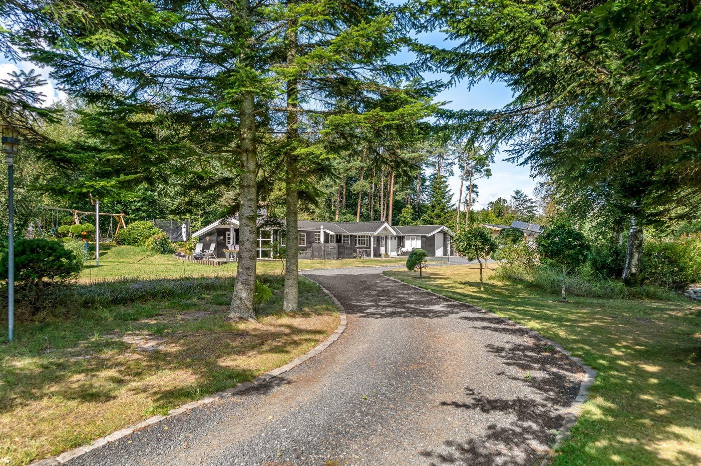 De vakantiewoning is gelegen op een 5240 m² groot aangelegde tuin. Afstand tot de zee 850 m. Dichtstbijzijnde winkel 3800 m. Er is een golfbaan op een afstand van 11000 m. Bij de vakantiewoning hoort 50 m² terras. Daarnaast is er een 21 m² groot overdekt terras. Bij de vakantiewoning hoort terras. Daarnaast is er een overdekt terras. Schommel. Trampoline. Glijbaan.Vuurplaats. Barbecue. Het huis heeft een stopcontact voor het opladen van een elektrische auto. Parkeerplaats bij het huis.
