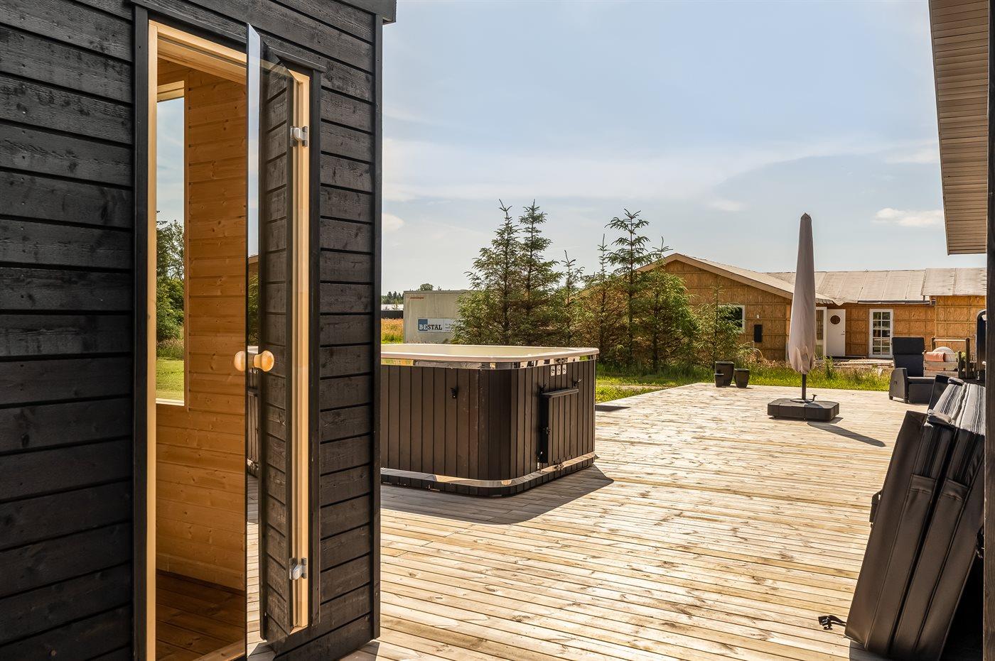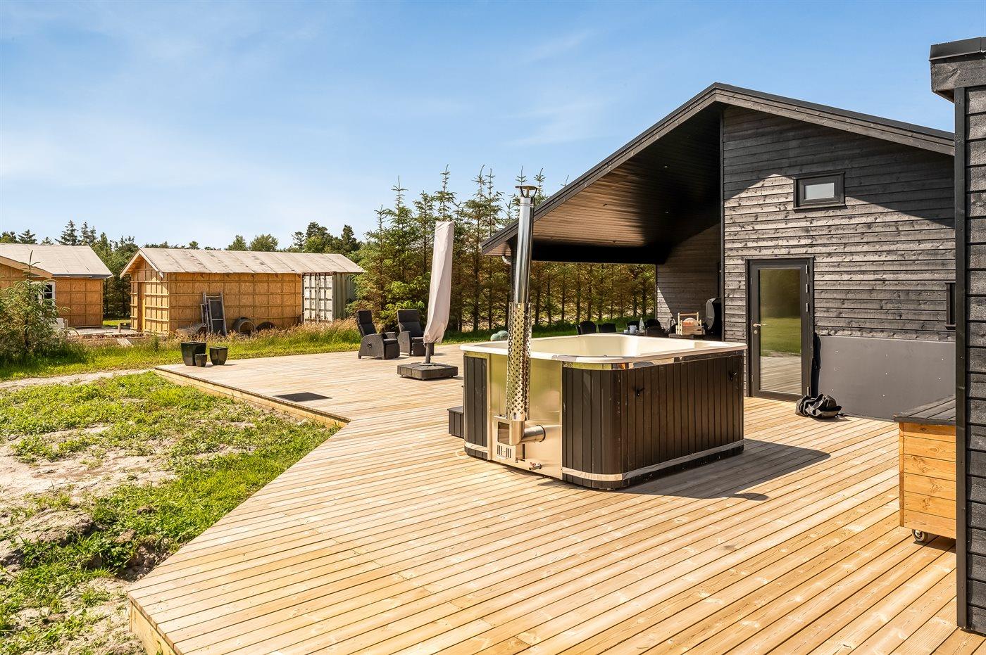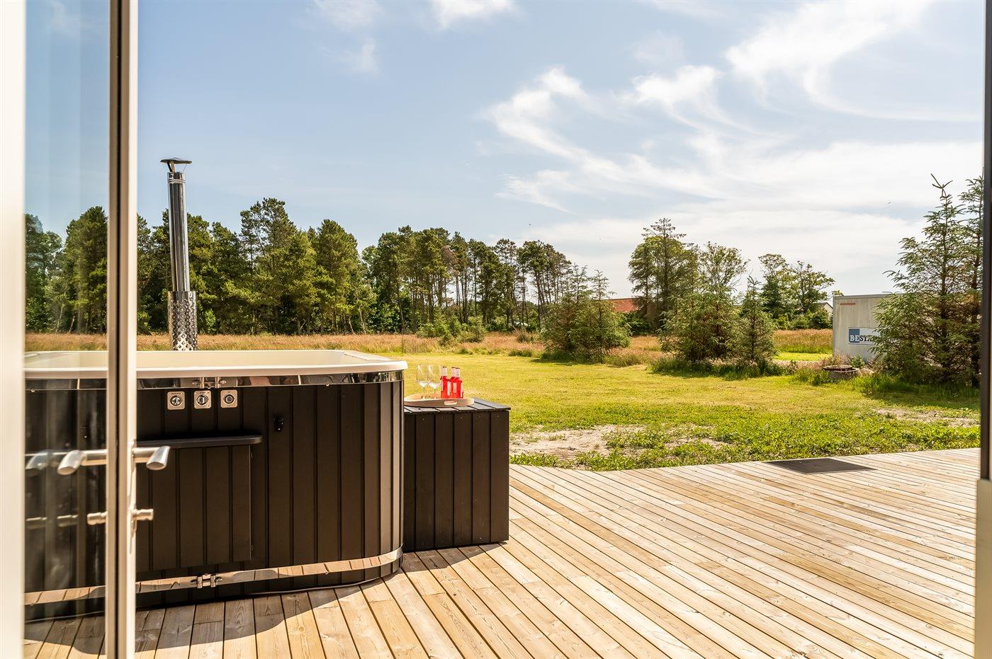 Het buiten hot tub biedt ontspanning aan 6 personen.
