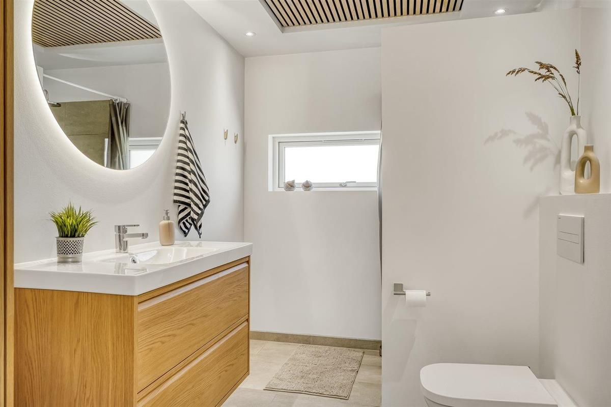 Er is 2 badkamers met douchehok en 2 toiletten. Er is vloerverwarming in 2 van de badkamers.