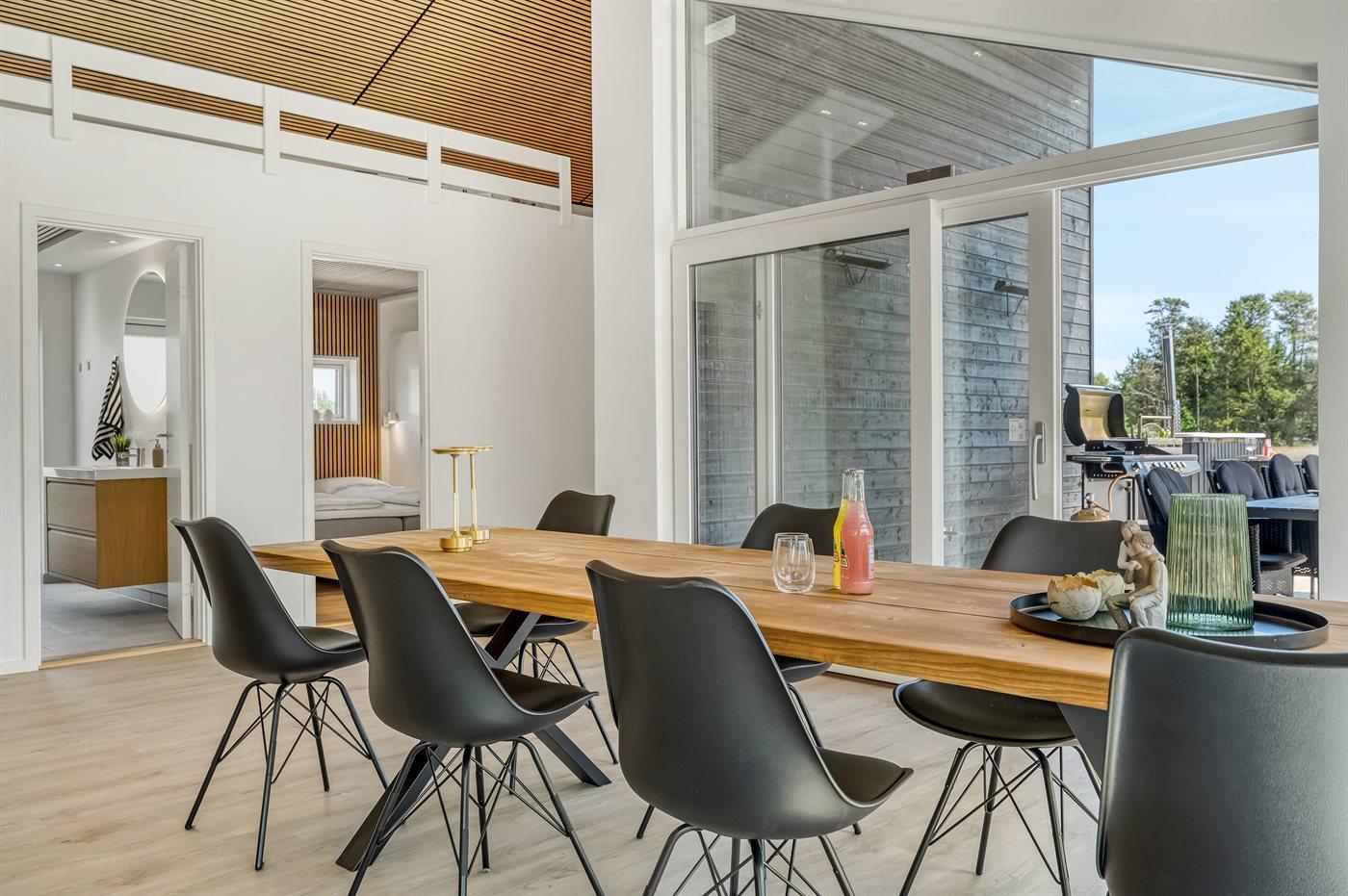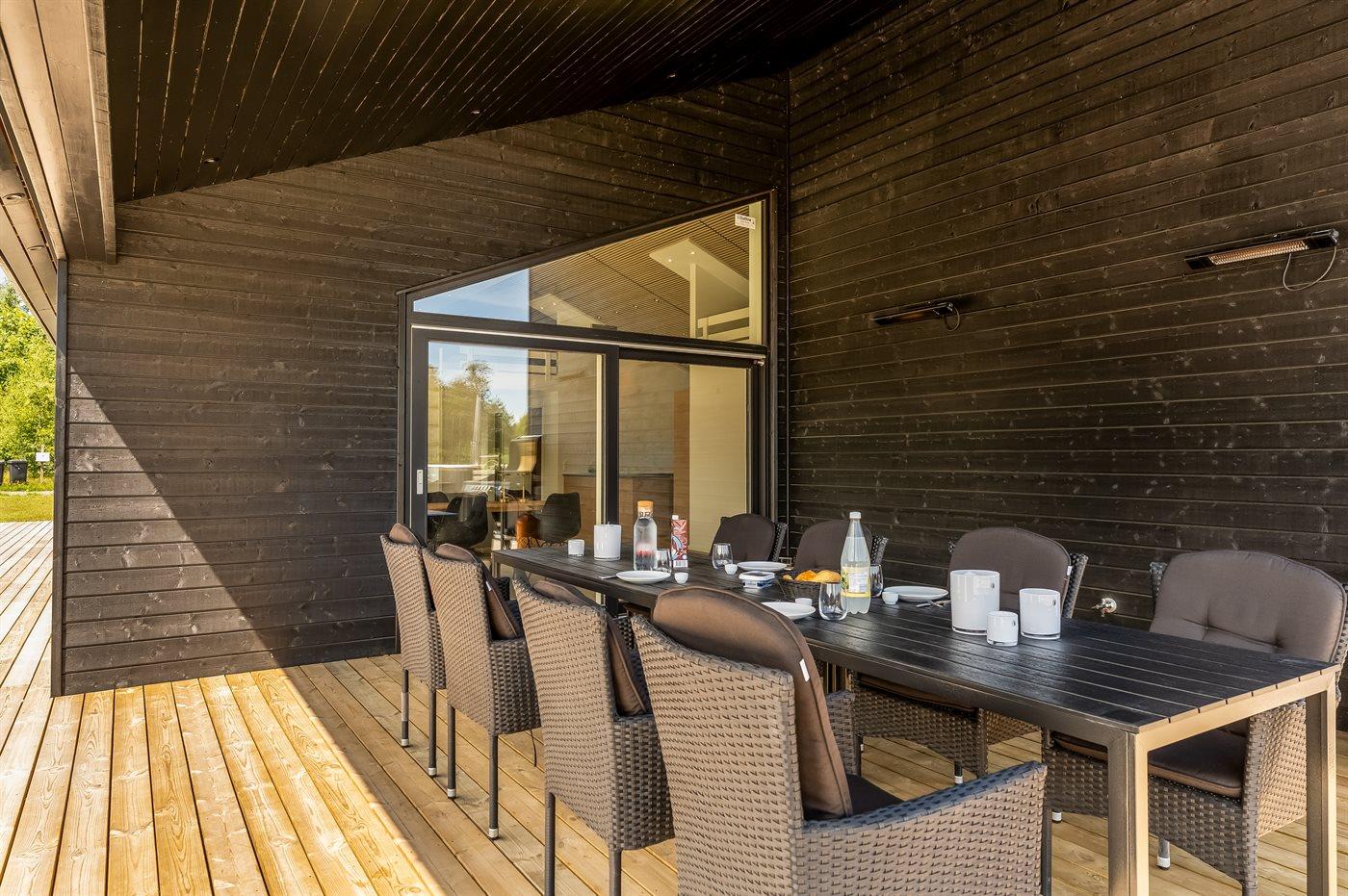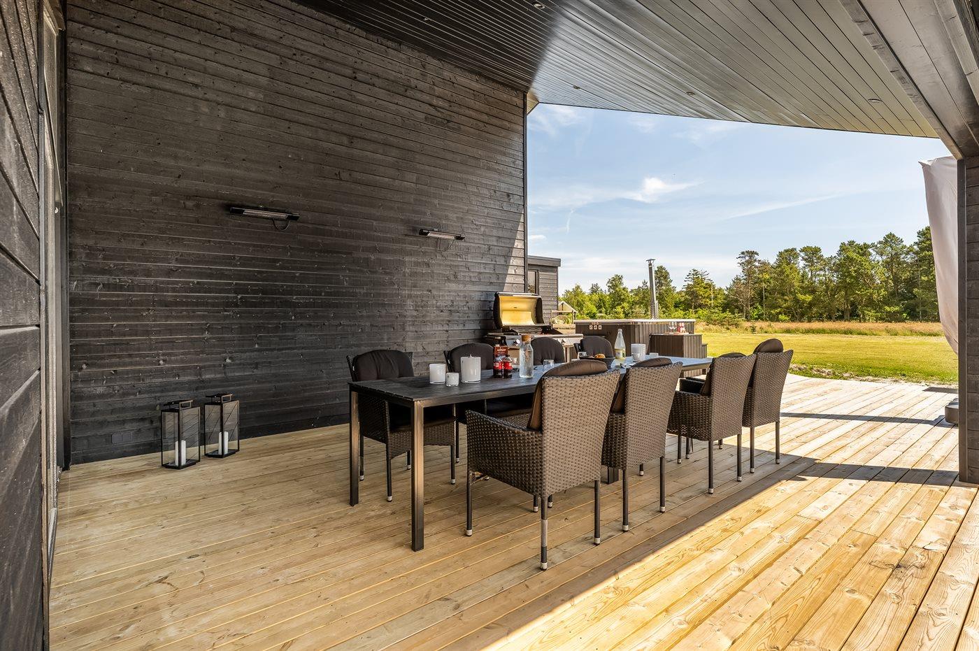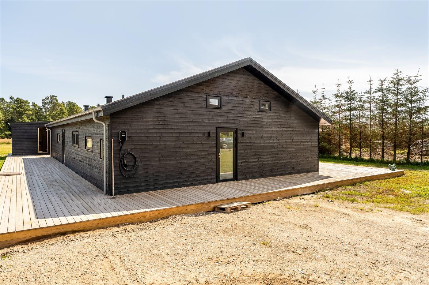 De vakantiewoning is gelegen op een 2323 m² groot natuural grond. Afstand tot de zee 700 m. Dichtstbijzijnde winkel 6200 m. Er is een golfbaan op een afstand van 8100 m. Bij de vakantiewoning hoort terras. Daarnaast is er een overdekt terras. Voetbaldoel. Buitensauna. Buitendouche. Barbecue. Het huis heeft een stopcontact voor het opladen van een elektrische auto. Oplaadstekker type 2. Met 11 kW-laadvermogen. Parkeerplaats bij het huis.