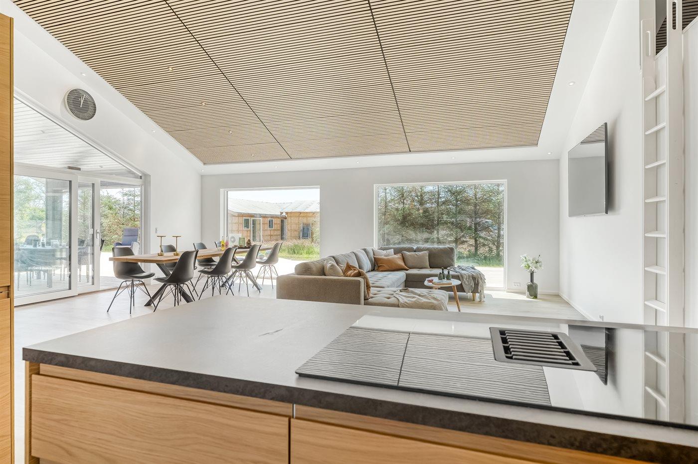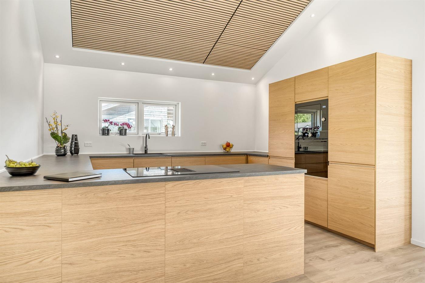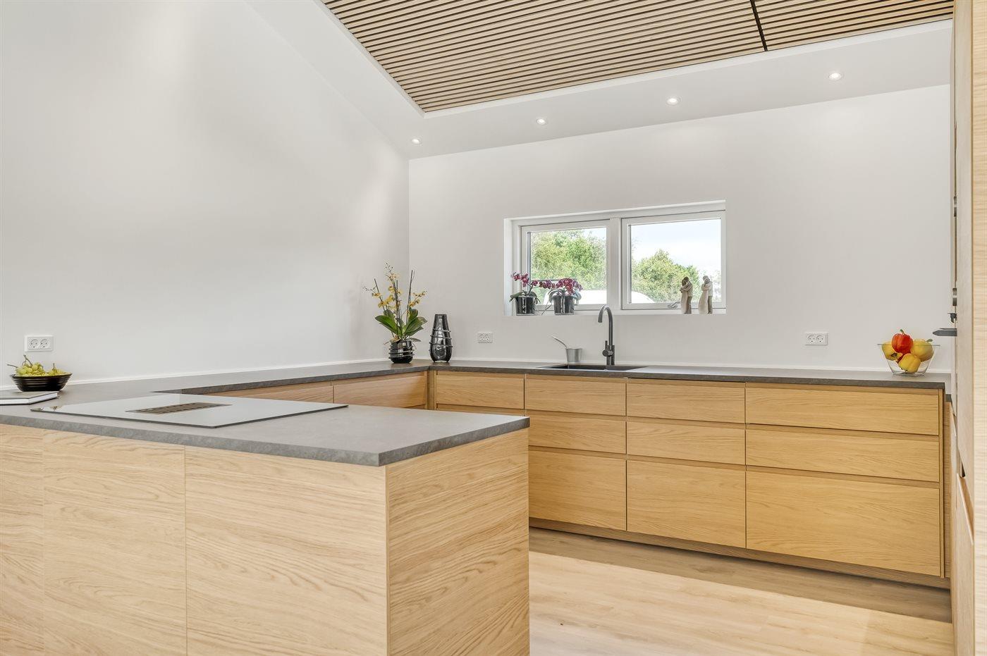 De keuken is uitgerust met koelkast Er is 4 inductiekookplaten, heteluchtoven, magnetron en vaatwasser.