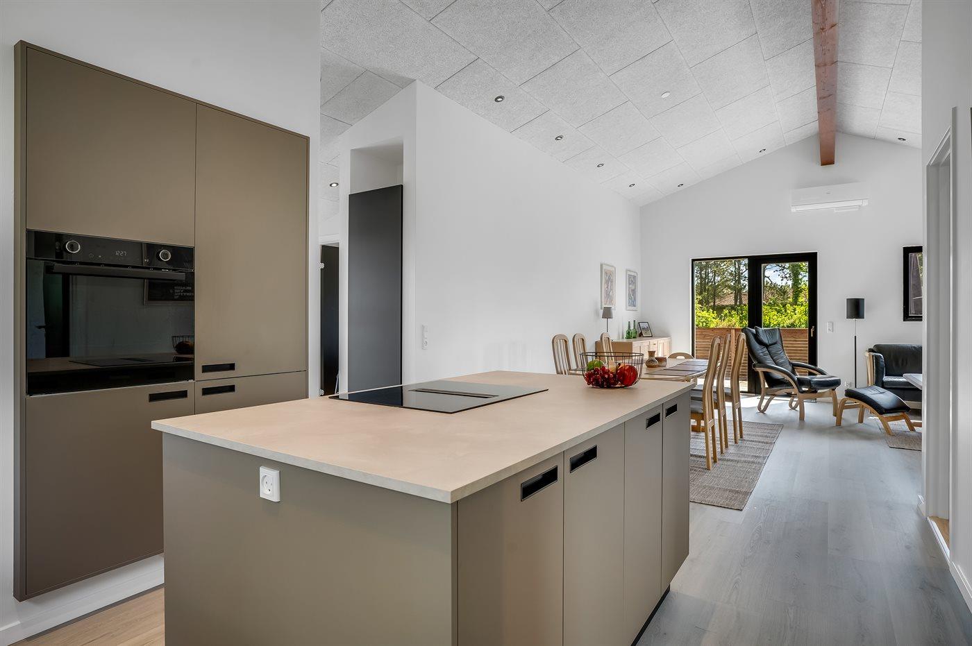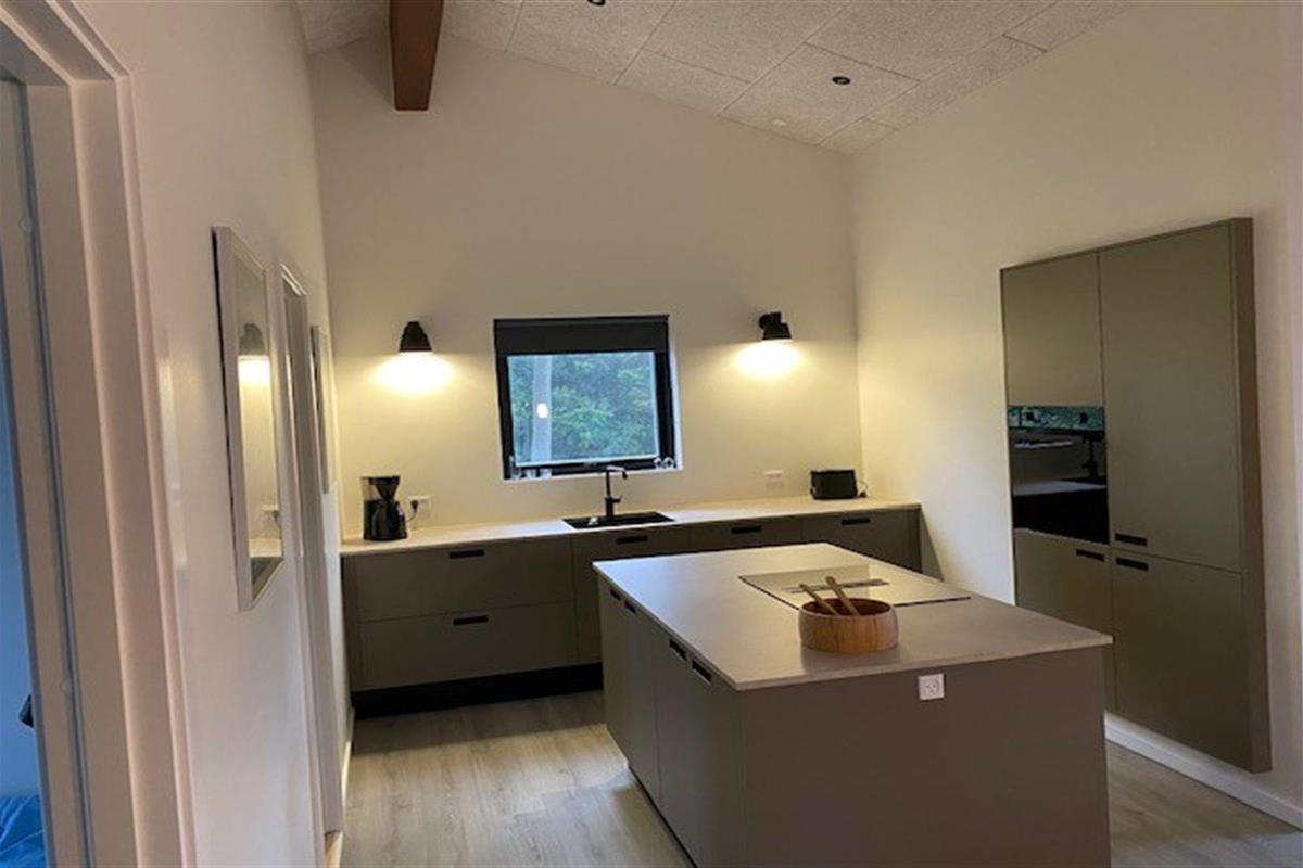 De keuken is uitgerust met koelkast Er is 4 inductiekookplaten, heteluchtoven, magnetron en vaatwasser.