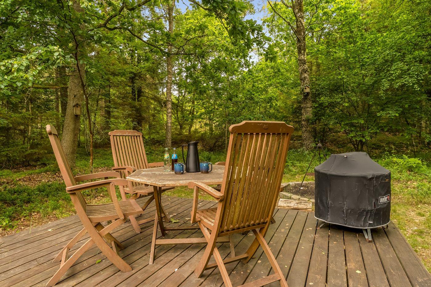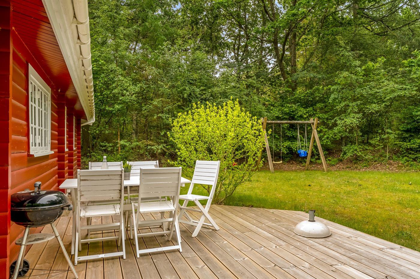 De vakantiewoning is gelegen op een 5020 m² groot aangelegde tuin. Afstand tot de zee 1580 m. Dichtstbijzijnde winkel 4500 m. Bij de vakantiewoning hoort terras. Daarnaast is er een overdekt terras. Schommel. Zandbak.Vuurplaats. Barbecue. Parkeerplaats bij het huis.