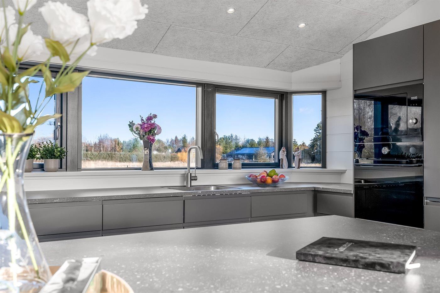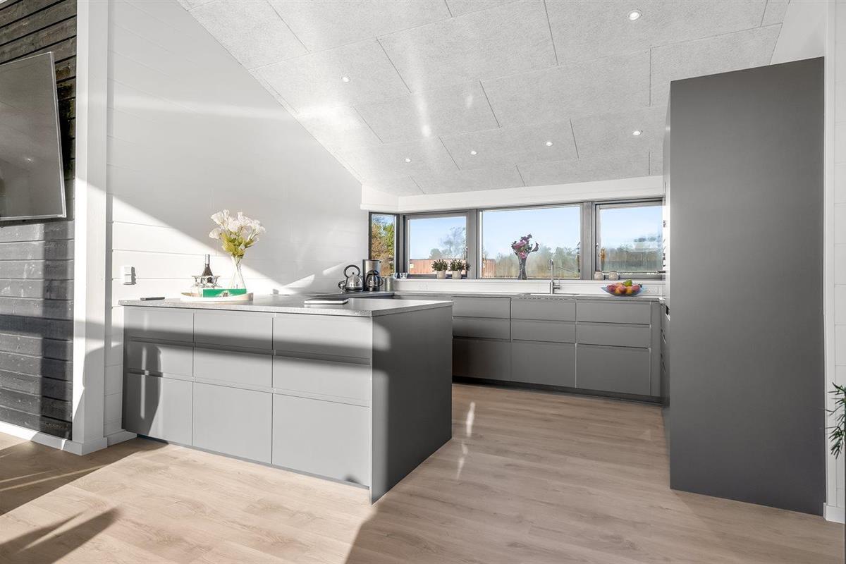 De keuken is uitgerust met koelkast Er is 4 inductiekookplaten, heteluchtoven, magnetron en vaatwasser.