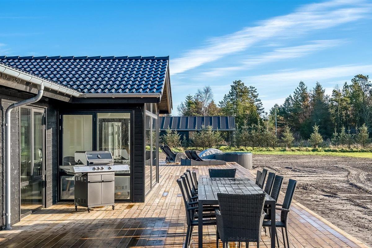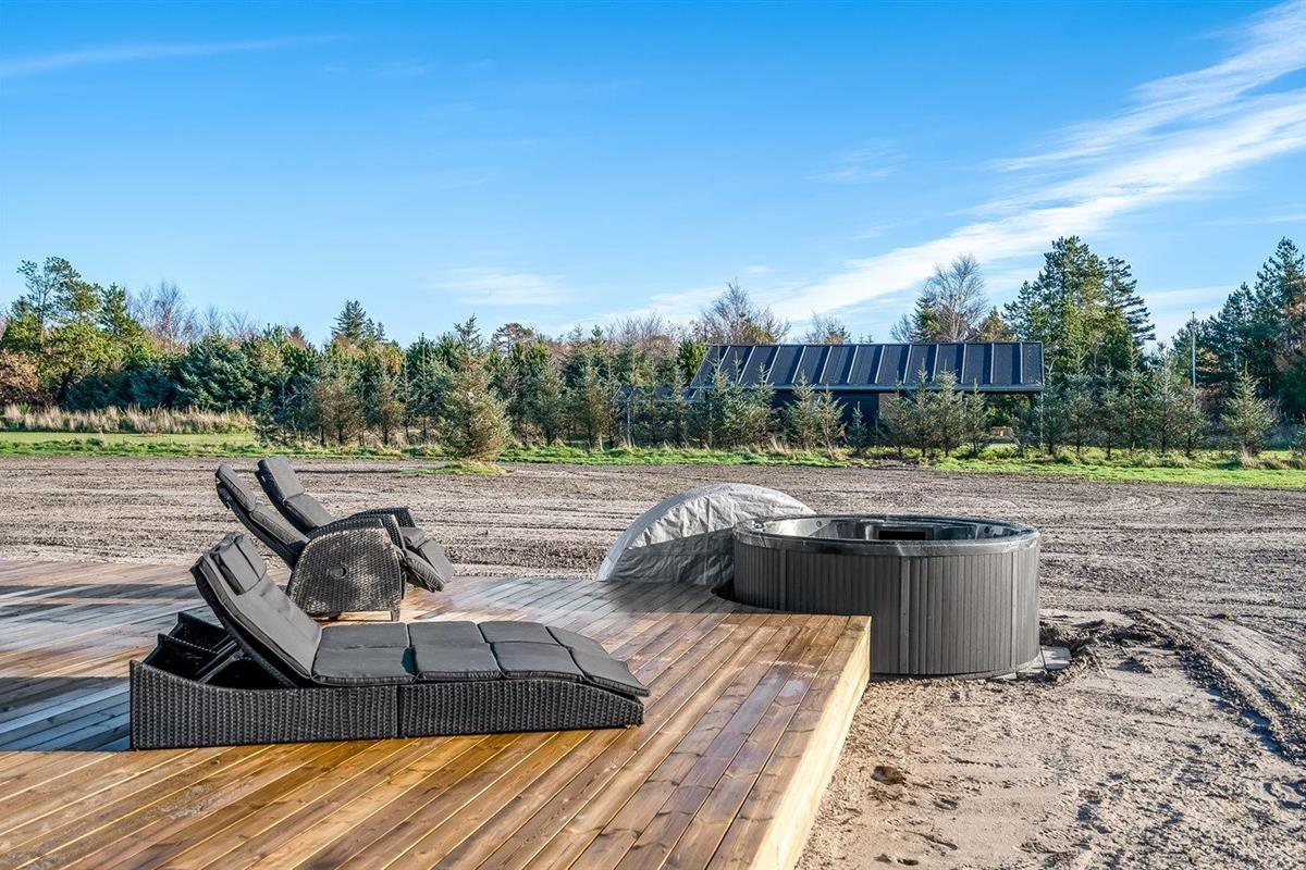 De vakantiewoning is gelegen op een 2547 m² groot natuural grond. Afstand tot de zee 700 m. Dichtstbijzijnde winkel 6200 m. Er is een golfbaan op een afstand van 8100 m. Bij de vakantiewoning hoort terras. Daarnaast is er een overdekt terras. Gereedschapsruimte. Buitendouche. Barbecue. Het huis heeft een stopcontact voor het opladen van een elektrische auto. Oplaadstekker type 2. Met 11 kW-laadvermogen. Parkeerplaats bij het huis.