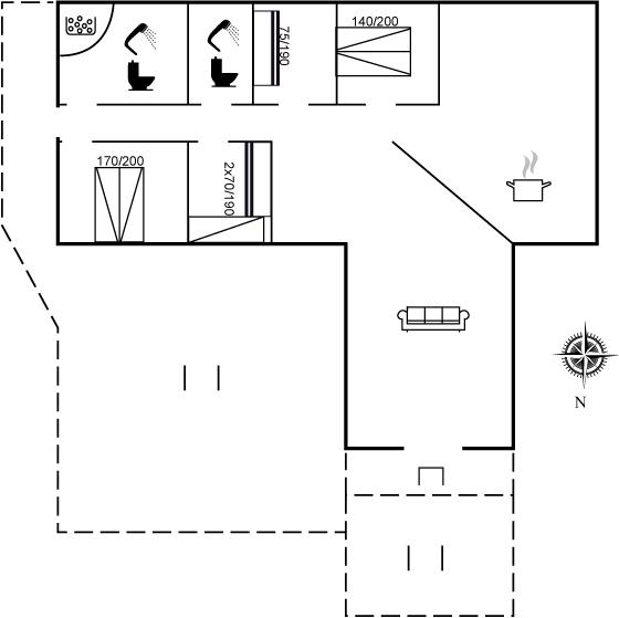 De vakantiewoning is gelegen op een 7400 m² groot natuural grond. Afstand tot de zee 50 m. Dichtstbijzijnde winkel 6600 m. Bij de vakantiewoning hoort 70 m² terras. Daarnaast is er een 4 m² groot overdekt terras. Schommel. Barbecue. Parkeerplaats bij het huis.