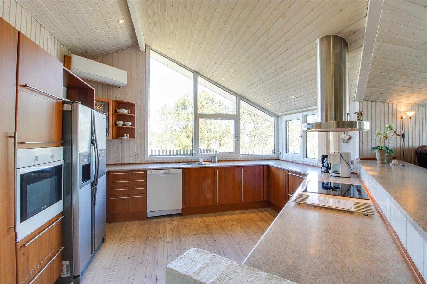 De keuken is uitgerust met amerikaanse koelkast Er zijn 4 keramische kookplaten, heteluchtoven, magnetron en vaatwasser.