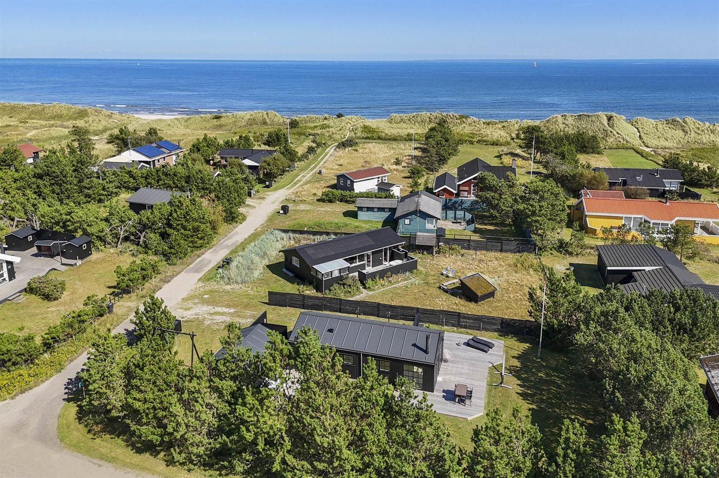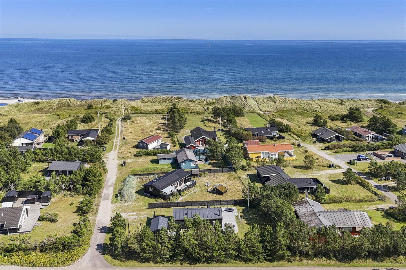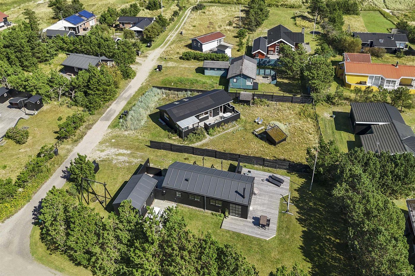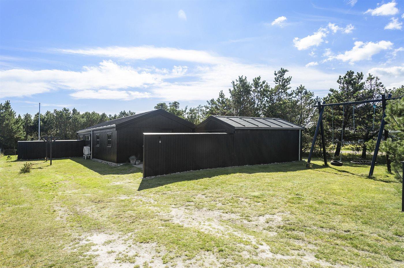 De vakantiewoning is gelegen op een 850 m² groot De grond is omheind. Afstand tot de zee 150 m. Dichtstbijzijnde winkel 8000 m. Bij de vakantiewoning hoort 125 m² terras. Waarvan in totaal 12 m² beschut terras. Schommel. Buitendouche. Barbecue. Het huis heeft een stopcontact voor het opladen van een elektrische auto. (Tesla Generation 3). Parkeerplaats bij het huis.