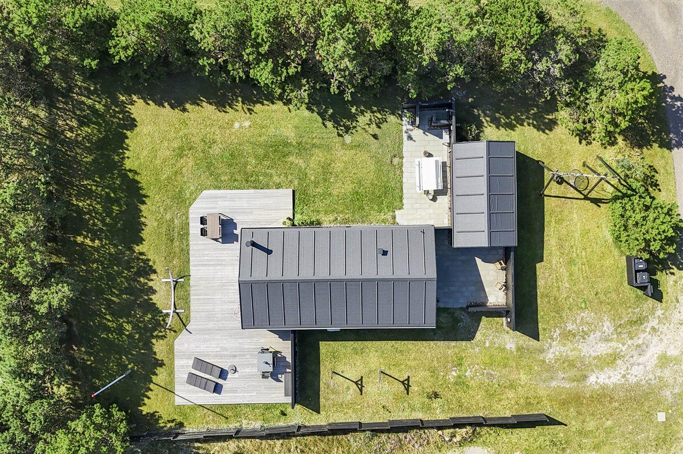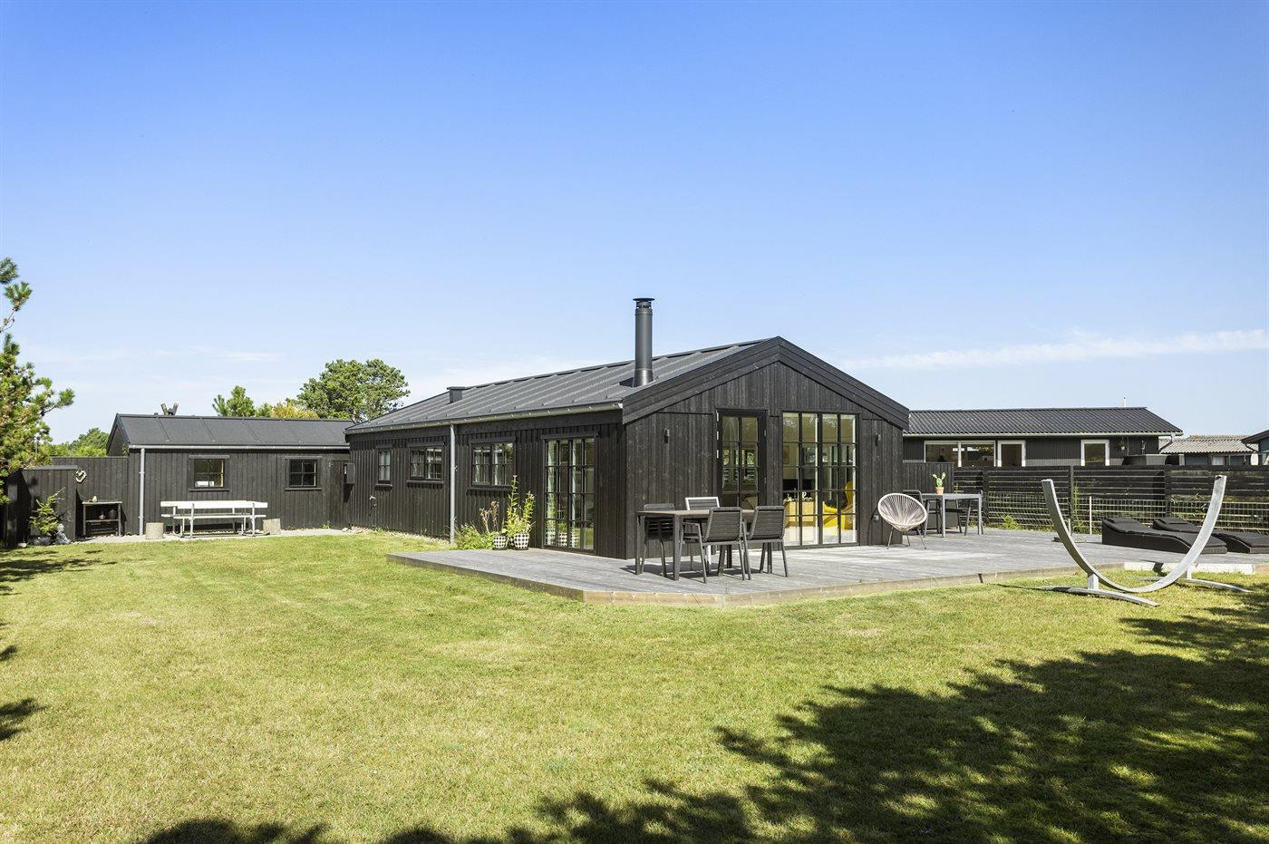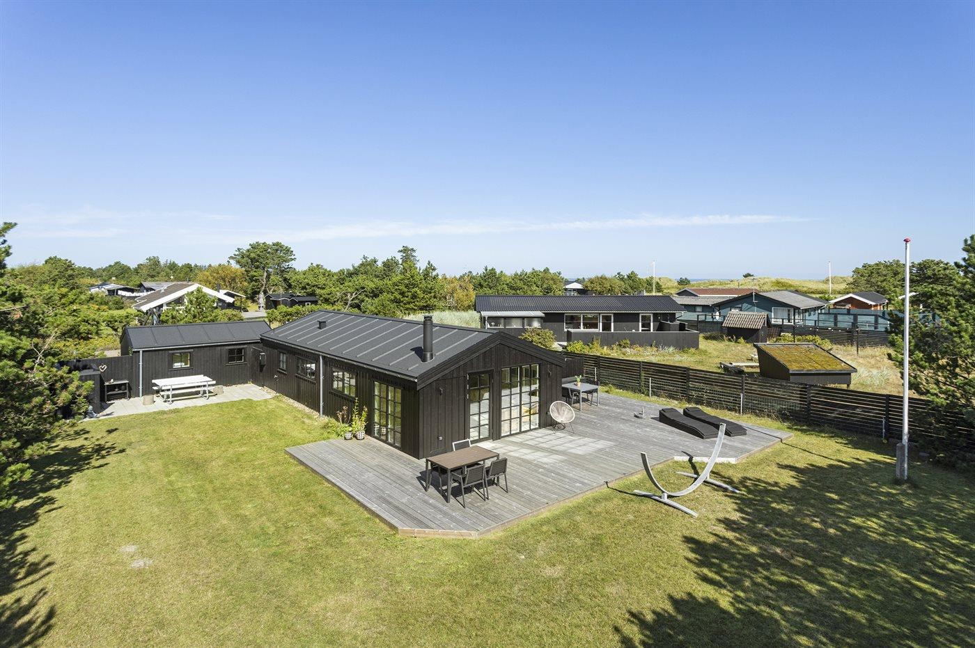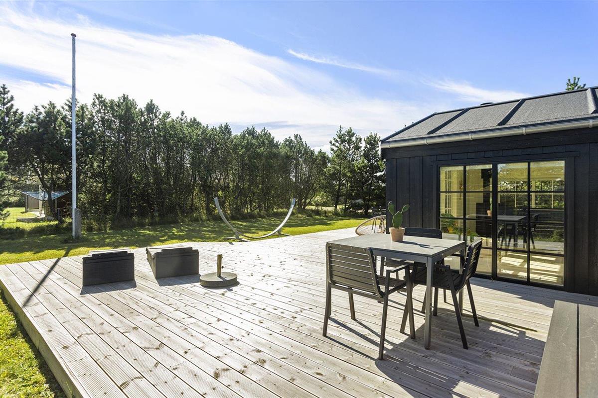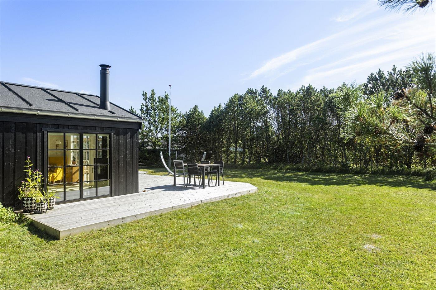 De vakantiewoning is gelegen op een 850 m² groot De grond is omheind. Afstand tot de zee 150 m. Dichtstbijzijnde winkel 8000 m. Bij de vakantiewoning hoort 125 m² terras. Waarvan in totaal 12 m² beschut terras. Schommel. Buitendouche. Barbecue. Het huis heeft een stopcontact voor het opladen van een elektrische auto. (Tesla Generation 3). Parkeerplaats bij het huis.