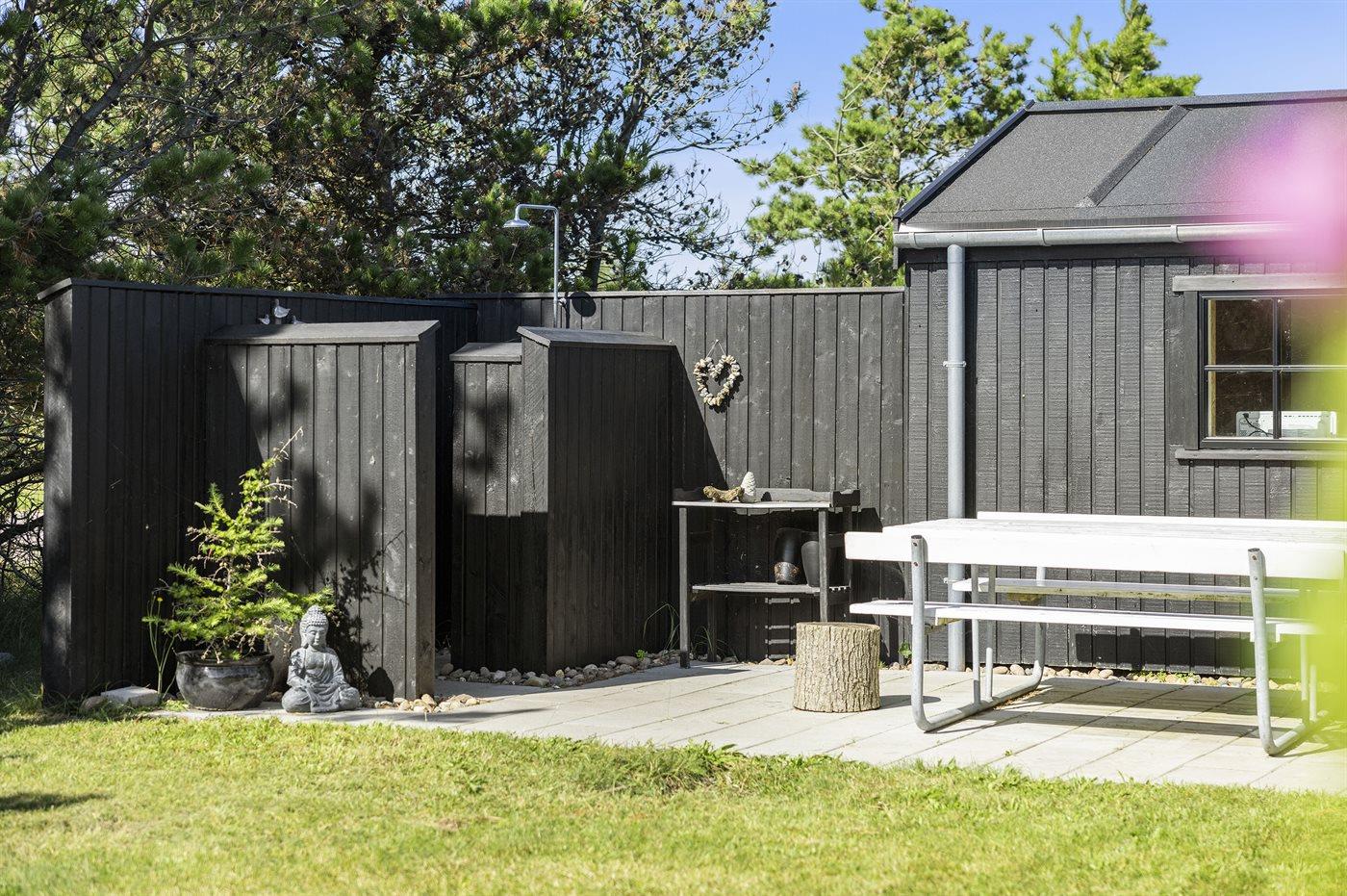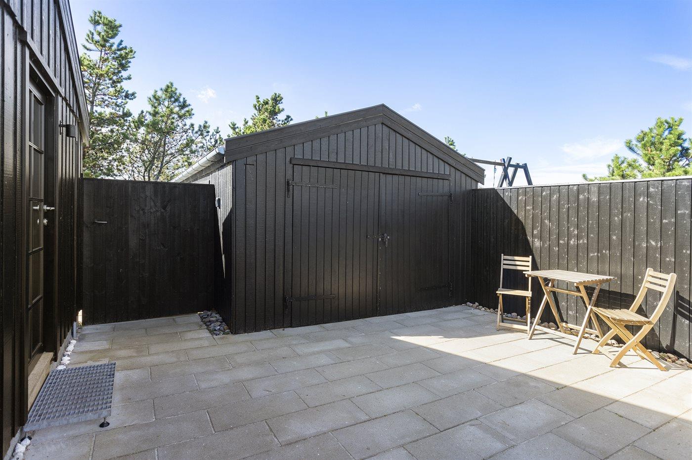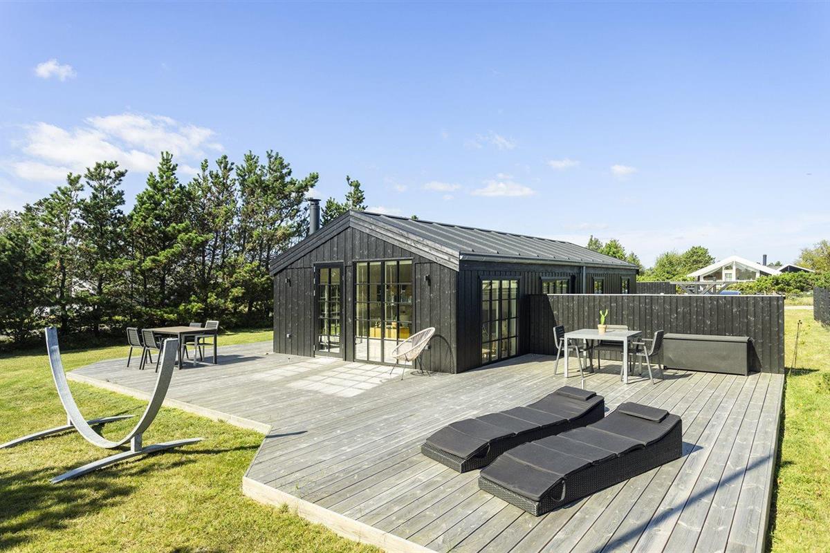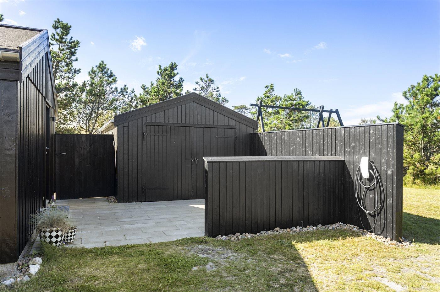 De vakantiewoning is gelegen op een 850 m² groot De grond is omheind. Afstand tot de zee 150 m. Dichtstbijzijnde winkel 8000 m. Bij de vakantiewoning hoort 125 m² terras. Waarvan in totaal 12 m² beschut terras. Schommel. Buitendouche. Barbecue. Het huis heeft een stopcontact voor het opladen van een elektrische auto. (Tesla Generation 3). Parkeerplaats bij het huis.