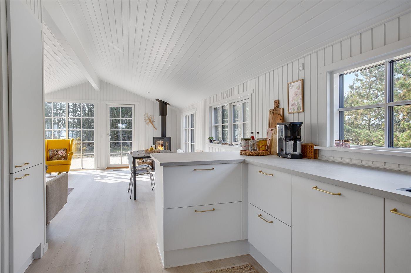 De keuken is uitgerust met koelkast Er is 4 inductiekookplaten, heteluchtoven en vaatwasser.