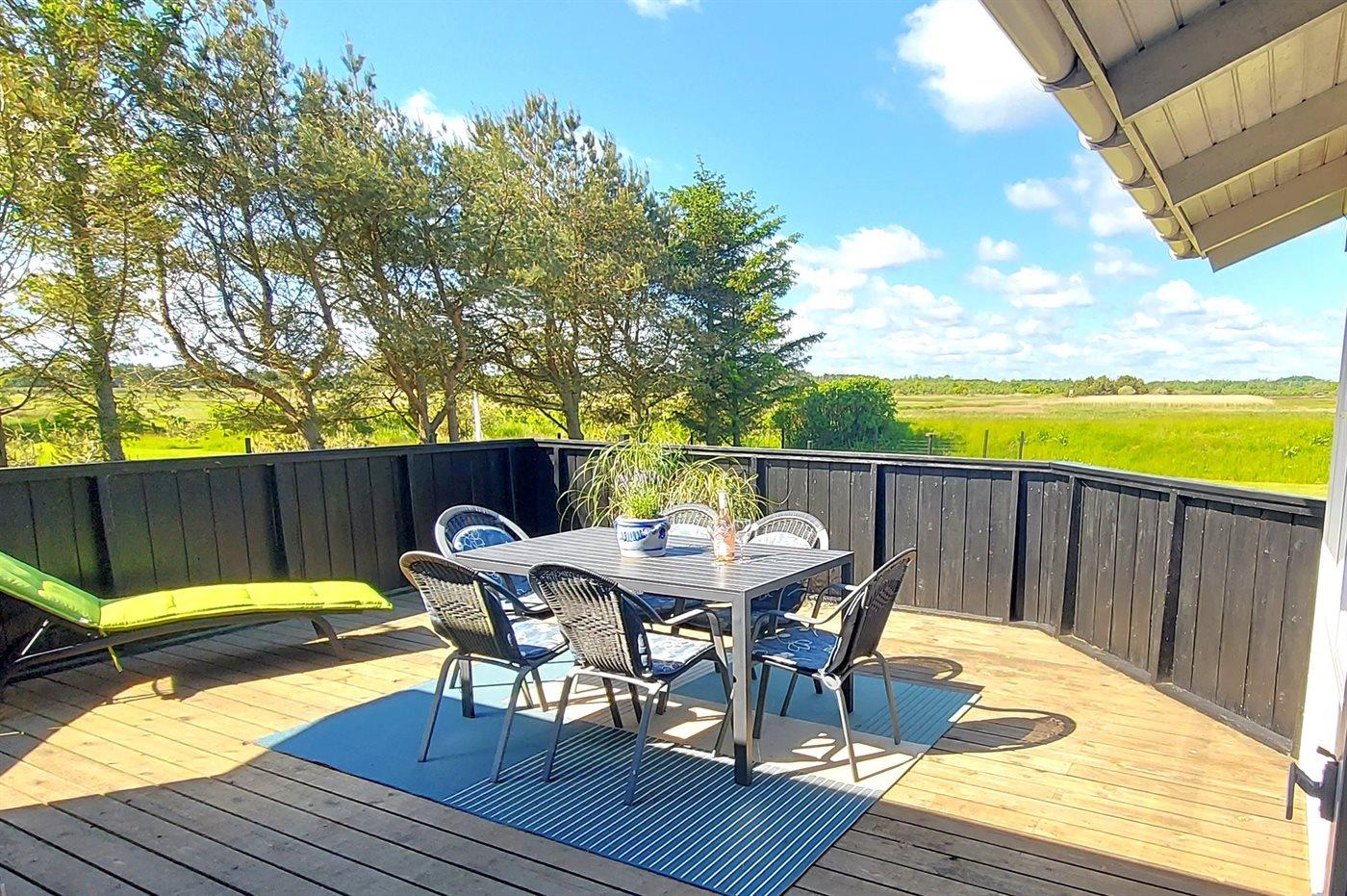 De vakantiewoning is gelegen op een 1503 m² groot natuural grond. De grond is omheind. Afstand tot de zee 100 m. Dichtstbijzijnde winkel 7000 m. Bij de vakantiewoning hoort 50 m² terras. Gereedschapsruimte. Trampoline. Barbecue. Parkeerplaats bij het huis.