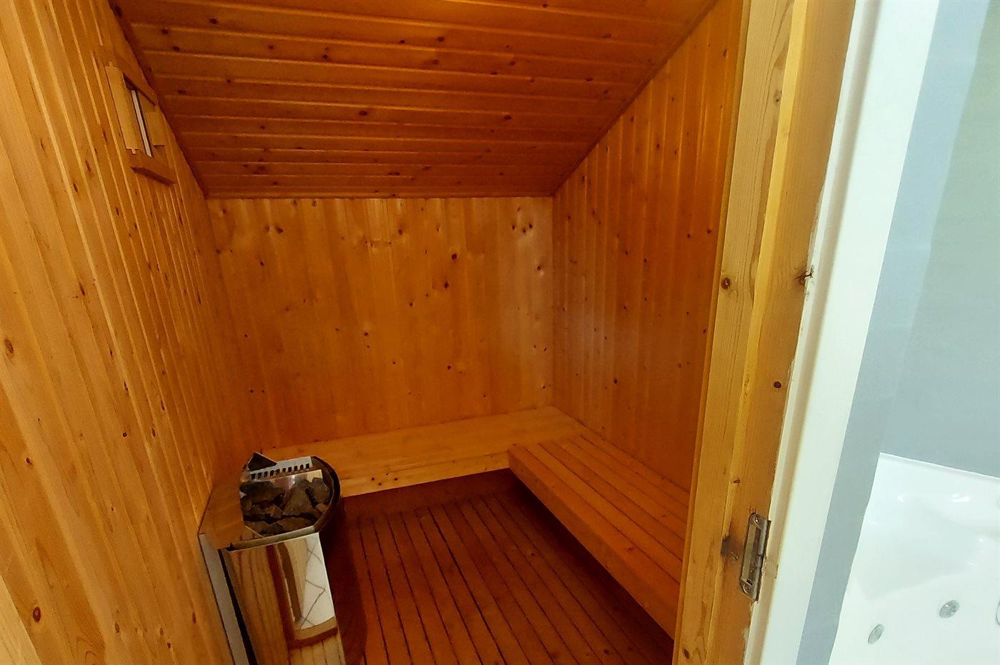 Er is 2 badkamers met douchehok en 2 toiletten. Er is vloerverwarming in 2 van de badkamers. De sauna biedt de gelegenheid tot ontspanning.