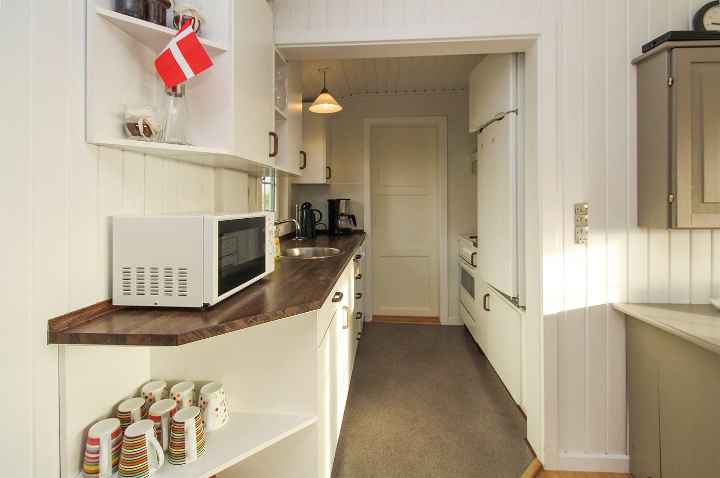 De keuken is uitgerust met koelkast Er is 4 elektrische kookplaten, bakoven, magnetron en vaatwasser.