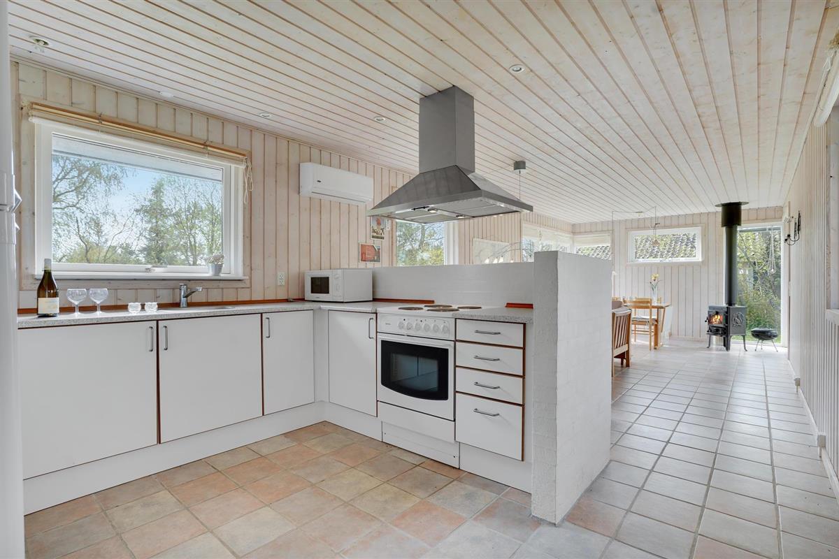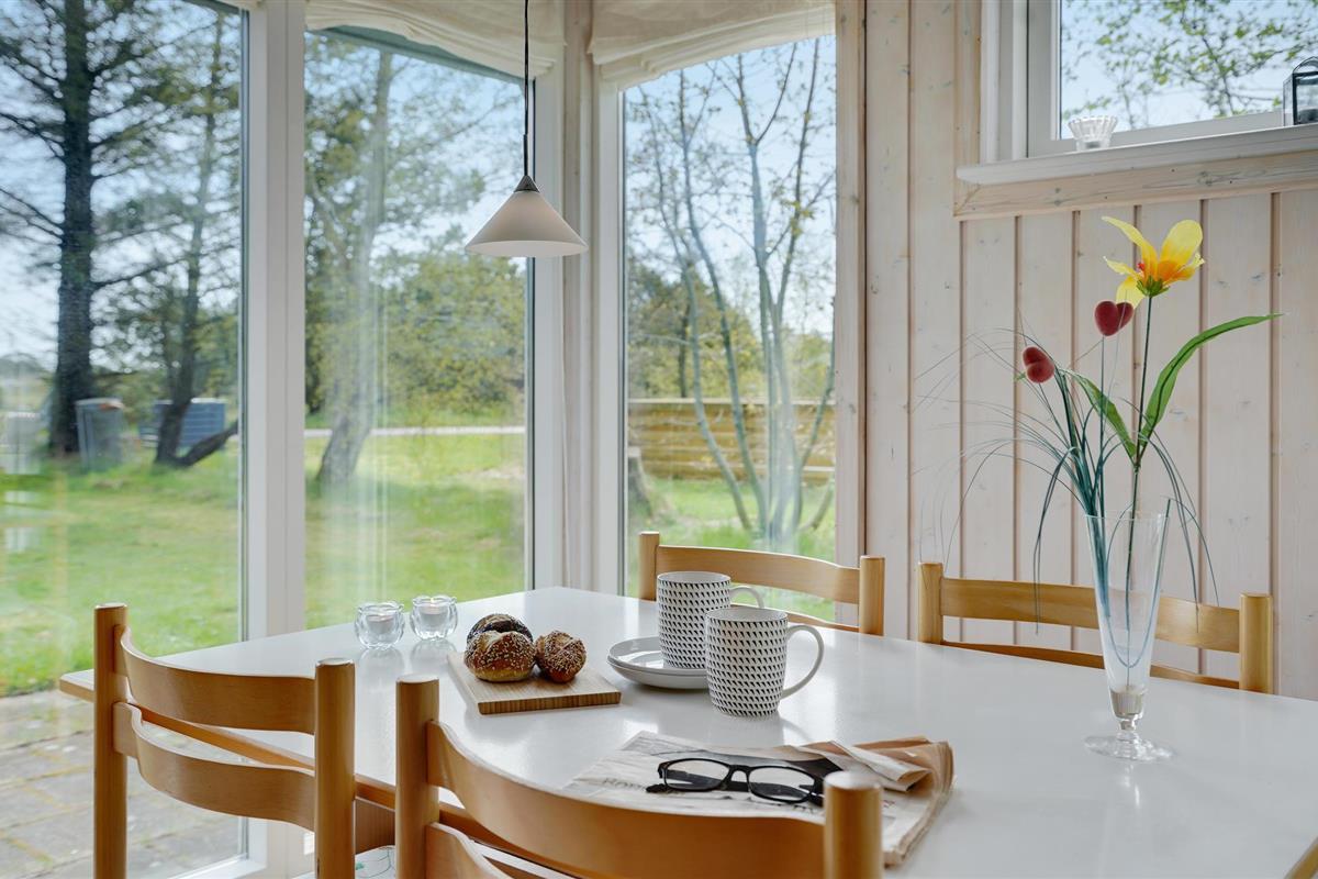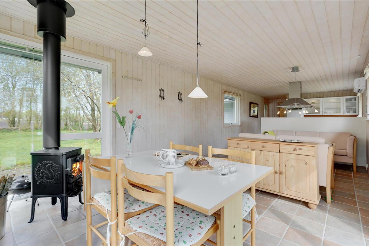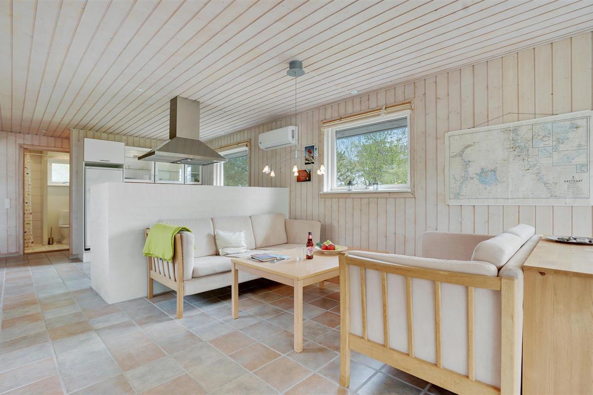 Dit gezellige vakantiehuis ligt op een mooi natuurperceel omringd door bomen, zodat je er altijd zowel zon als schaduw vindt. Het huis is licht en uitnodigend met een goede inrichting. Op het autovrije zandstrand in Lyngså kun je na een sterke zuidoostenwind prachtige schelpen en misschien barnsteen verzamelen en het hele jaar door op platvis vissen. Het gezellige havenstadje Sæby ligt op slechts een klein eindje rijden en biedt een gezellige haven waar je het beeld "De Vrouwe van de Zee" kunt zien, een dubbelzijdig boegbeeld van wit beton. De stad biedt ook goede winkels, een mooi voetgangersgebied en veel restaurants, waar vooral verse vis op het menu staat. Veel van de attracties van Noord-Jutland liggen binnen handbereik, zoals Skagen, Fårup Sommerland, het Noordzee Oceanarium, de vuurtoren Rubjerg Knude, het duin Råbjerg Mile en niet te vergeten de vele geweldige golfbanen.