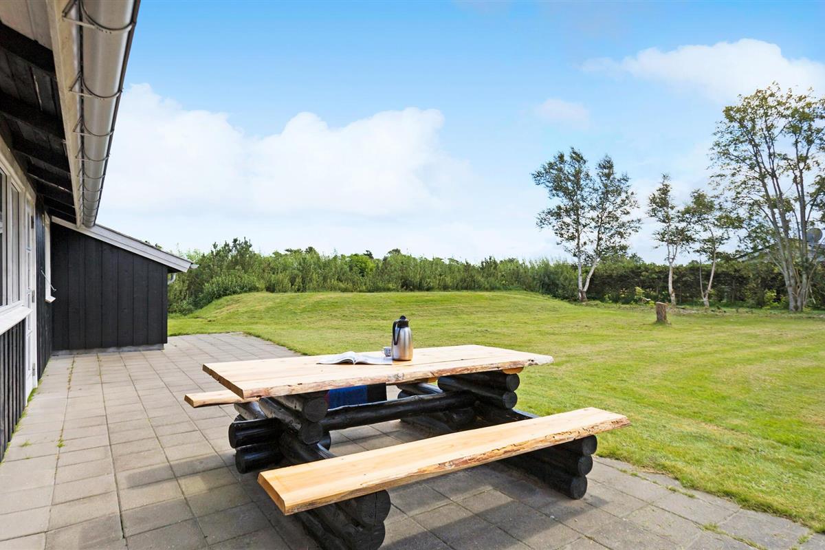 Op het prachtige terras kun je genieten van de frisse zeelucht en de dag afsluiten met een glas wijn terwijl je uitkijkt over de tuin en je kinderen ziet spelen.