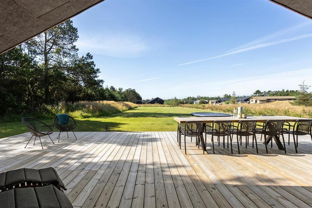 Geniet bij zonnig weer van een stevig ontbijt op het grote houten terras. Luister naar de geluiden van de natuur en laat je meevoeren door de rust. Ontspan op de ligstoelen met een goed boek of doe een middagdutje. Verzamel de familie of vrienden voor een barbecue in de avond en geniet van een ontspannen einde van de dag.