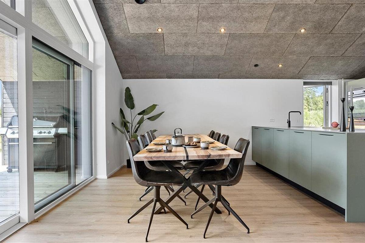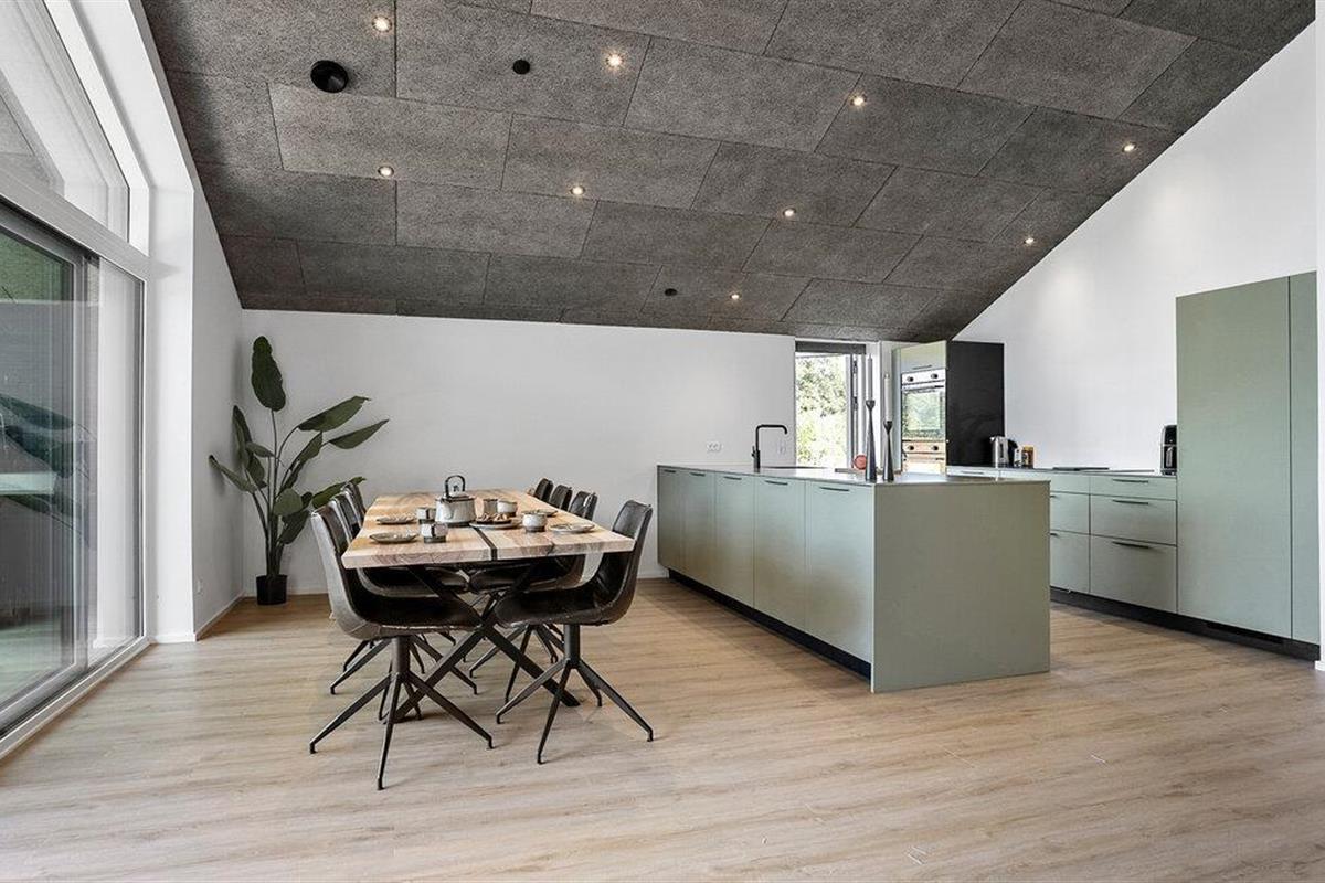 Dit ruime huis combineert stijlvolle elegantie met gezellig comfort en wordt overspoeld met natuurlijk licht door een grote raamgevel. Terwijl je heerlijke maaltijden op tafel tovert in de moderne keuken of plaatsneemt aan de houten eettafel, kun je genieten van het prachtige uitzicht op het groen. Daarna nodigt de comfortabele sofa je uit om ontspannende uren door te brengen met het kijken naar een goede film of gewoon achterover te leunen en diep adem te halen.