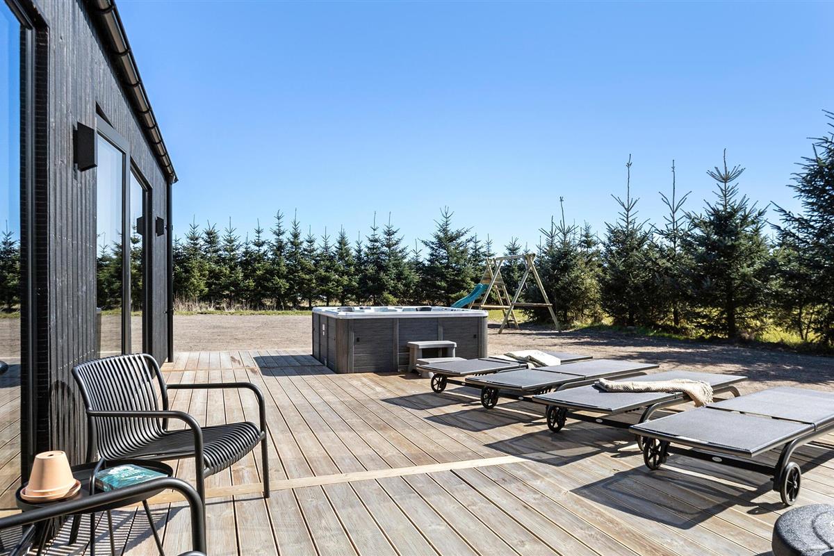 Ontspan op het terras terwijl je geniet van de zon en je kinderen ziet schommelen en graven, geniet van een rustgevende duik in het bubbelbad en sluit een heerlijke dag af met een heerlijke barbecue in de open lucht.