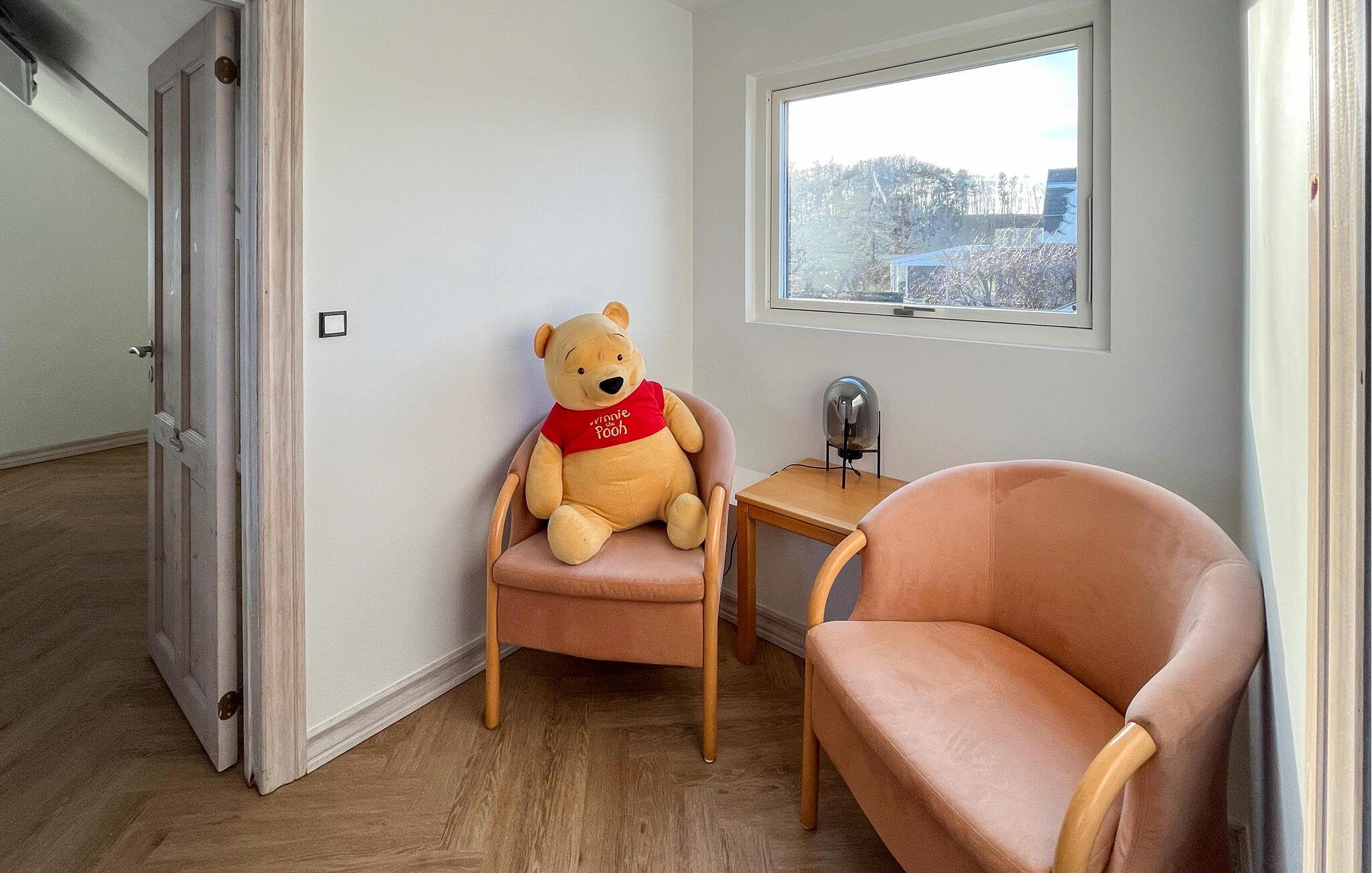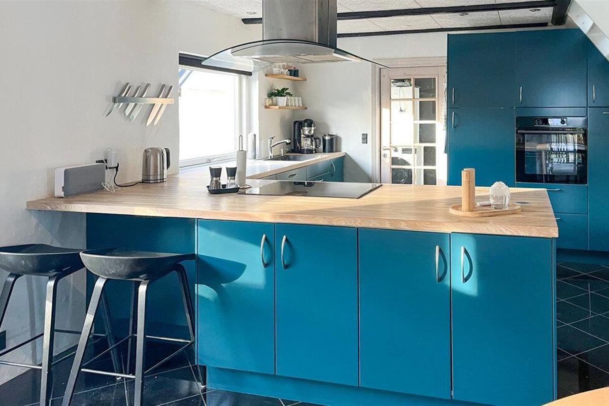 Geniet van de uitnodigende sfeer van dit smaakvol gemoderniseerde vakantiehuis op twee niveaus. Neem plaats op de comfortabele hoekbank in de ruime woonkamer en sluit de dag af in een vredige sfeer. Kom samen rond de lange eettafel, die voldoende ruimte biedt voor gezamenlijke maaltijden of gezellige avonden. De open, kleurrijke keuken met kookeiland, barkrukken en moderne apparatuur nodigt uit om samen te koken en nieuwe recepten uit te proberen.