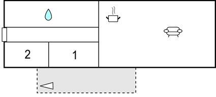 Woonkamer met open keuken - 1 Slaapplaatsen. (Opklapbed(den) of matras(sen)).