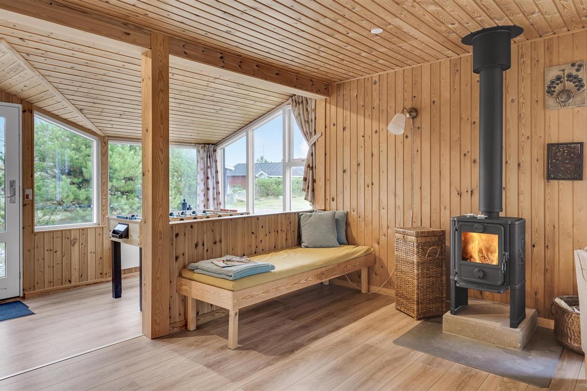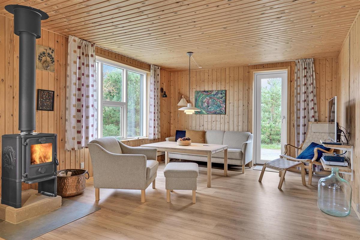 Geniet van een sfeervol vakantiehuis vlak bij het Lyngså strand, met een houtkachel en ruim deels overdekt terras.