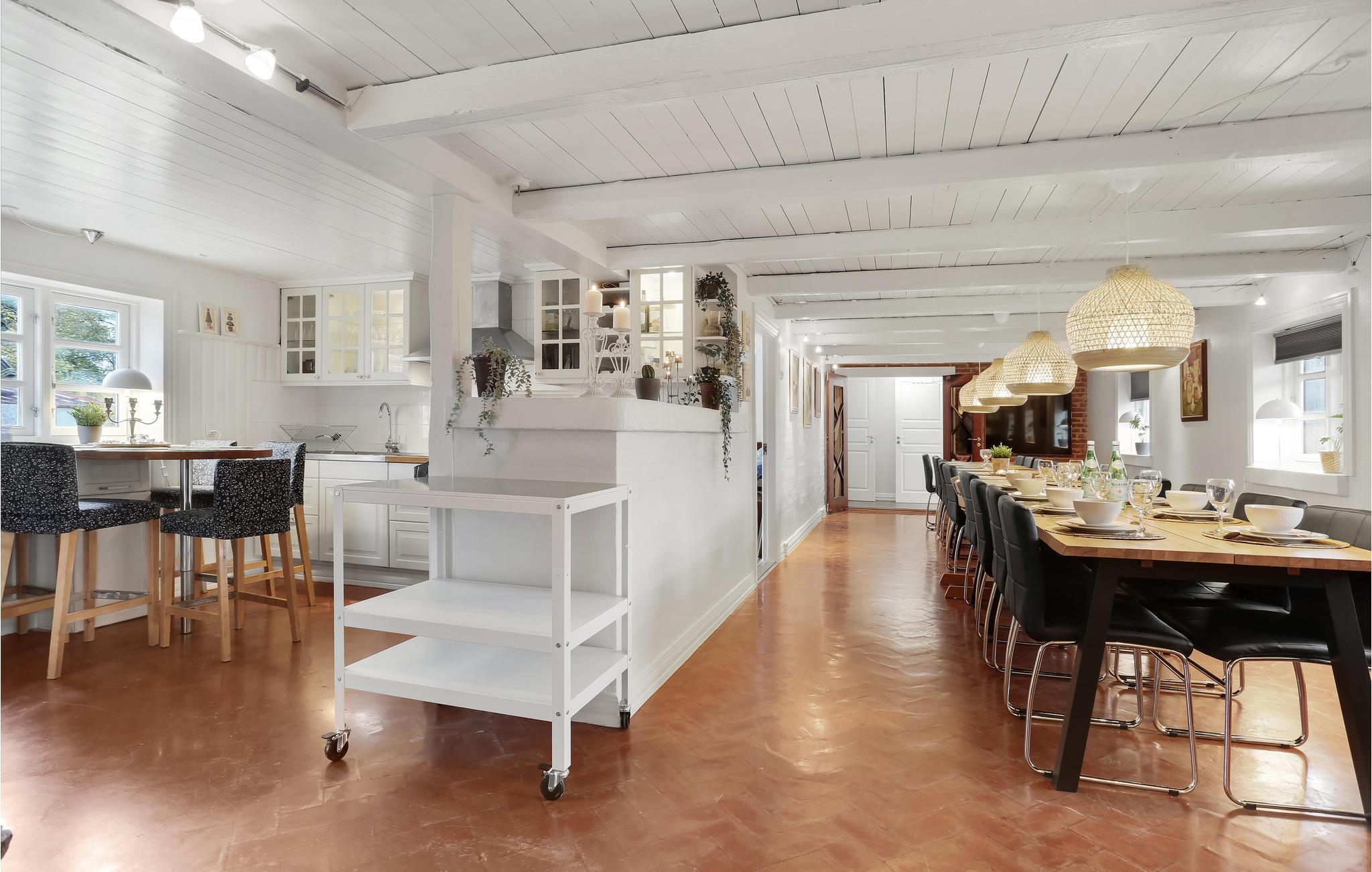 Niet ver van het strand van Lyngså ligt dit prachtige landgoed met ruimte voor meerdere gezinnen. Het biedt een licht, sfeervol interieur met prachtige details zoals de bakstenen open haard. In deze authentieke, rustieke sfeer vind je de ideale omstandigheden voor een gezellige, zorgeloze vakantie. Geniet van een spelletje pool of tafelvoetbal en verzamel je rond de lange eettafel voor gezellige maaltijden. De whirlpool in de badkamer zorgt daarna voor ontspanning.