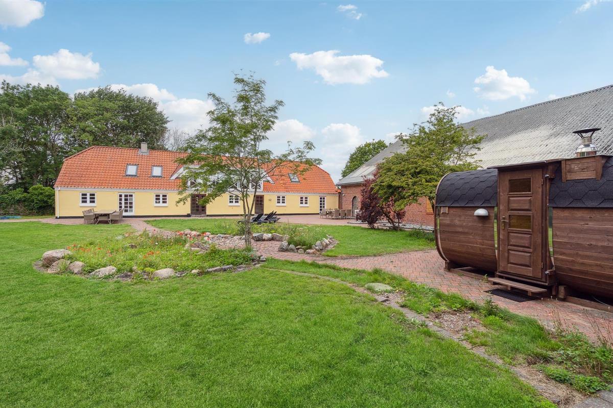Groot landgoed nabij Lyngså strand met wellness, spelletjes en ruimte voor meerdere gezinnen.