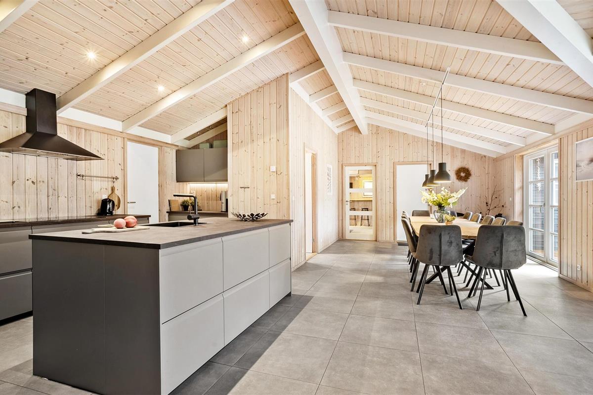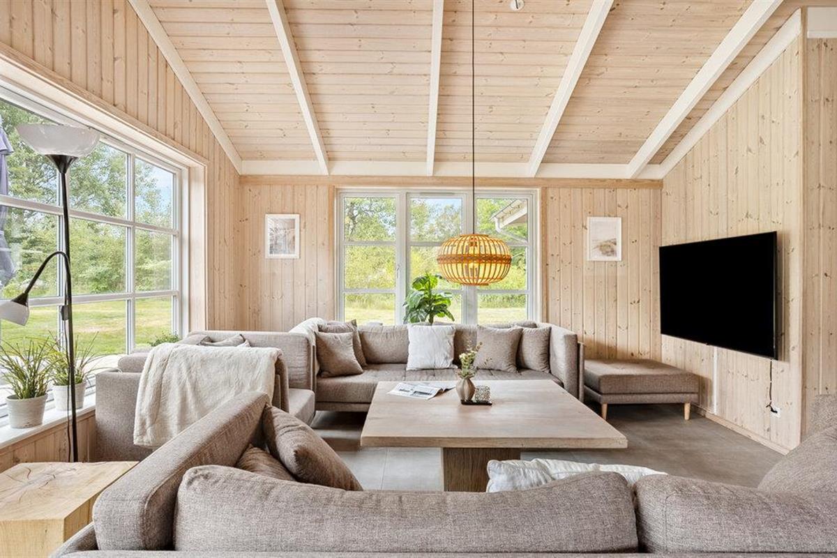 Ruim en smaakvol vakantiehuis met zwembad, sauna en activiteitenruimte nabij Sæby strand.