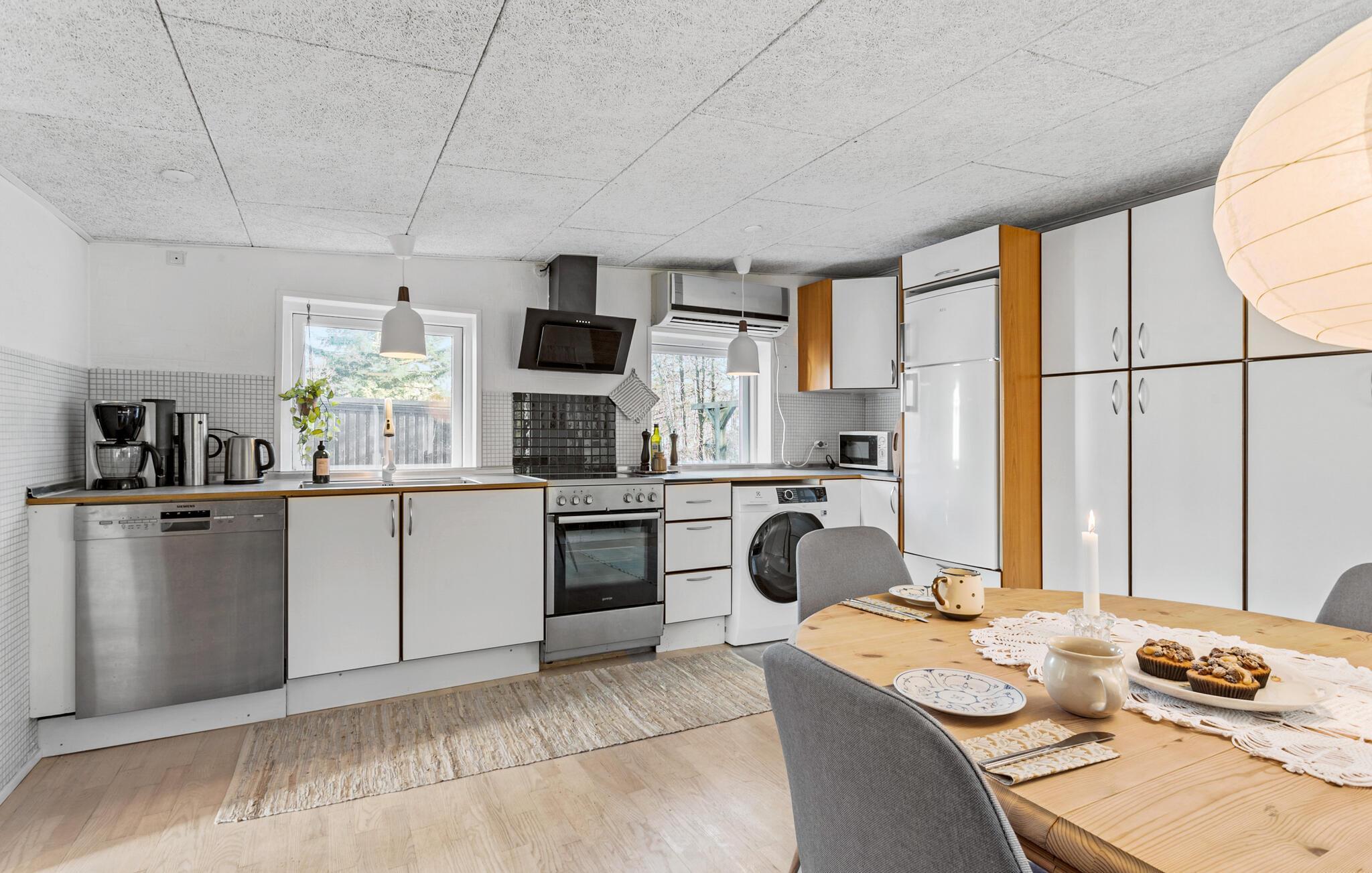 Ontspan in dit vertrouwde en goed uitgeruste vakantiehuis niet ver van een mooi zandstrand aan het Kattegat. Voel je thuis zodra je aankomt en geniet van het gezellige comfort. Je grote gezin zal hier genoeg ruimte vinden en kan zich verheugen op een tafeltennistafel en een grote eetkeuken om gezellig samen te zijn. Stap vanuit de lichte woonkamer het houten terras op, dat perfect is om te zonnebaden en barbecuen in de zomermaanden. Speel met je kinderen in de tuin en verzamel je 's avonds rond de vuurplaats om stokbrood en marshmallows te roosteren.