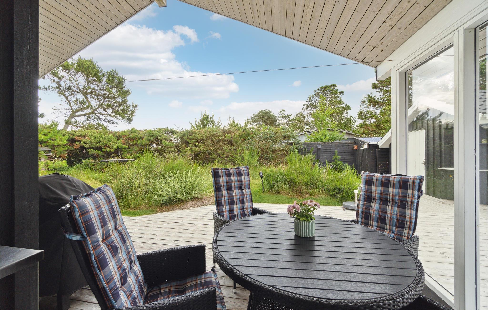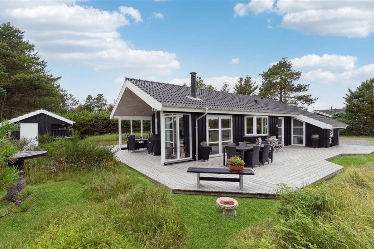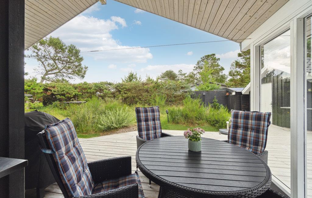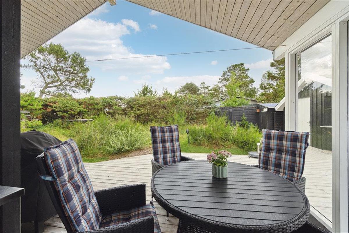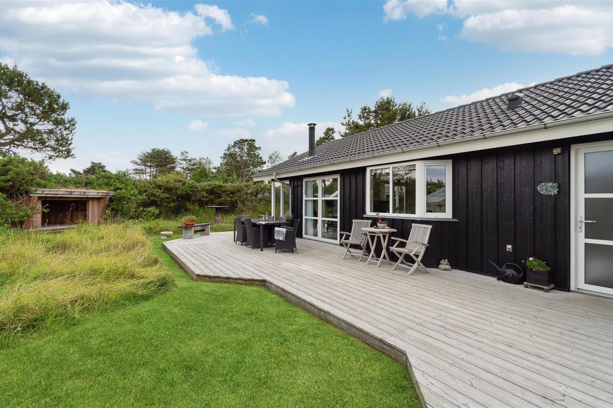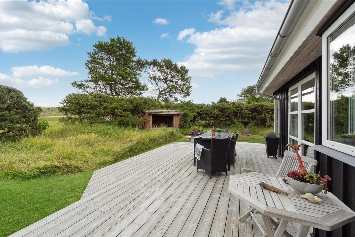 Het ruime houten terras loopt bijna helemaal rond het huis en is ideaal om overdag te ontspannen en te zonnebaden. Kinderen kunnen spelen op het natuurlijke terrein en er is ook een typisch Deense schuilplaats als je de nacht buiten wilt doorbrengen.