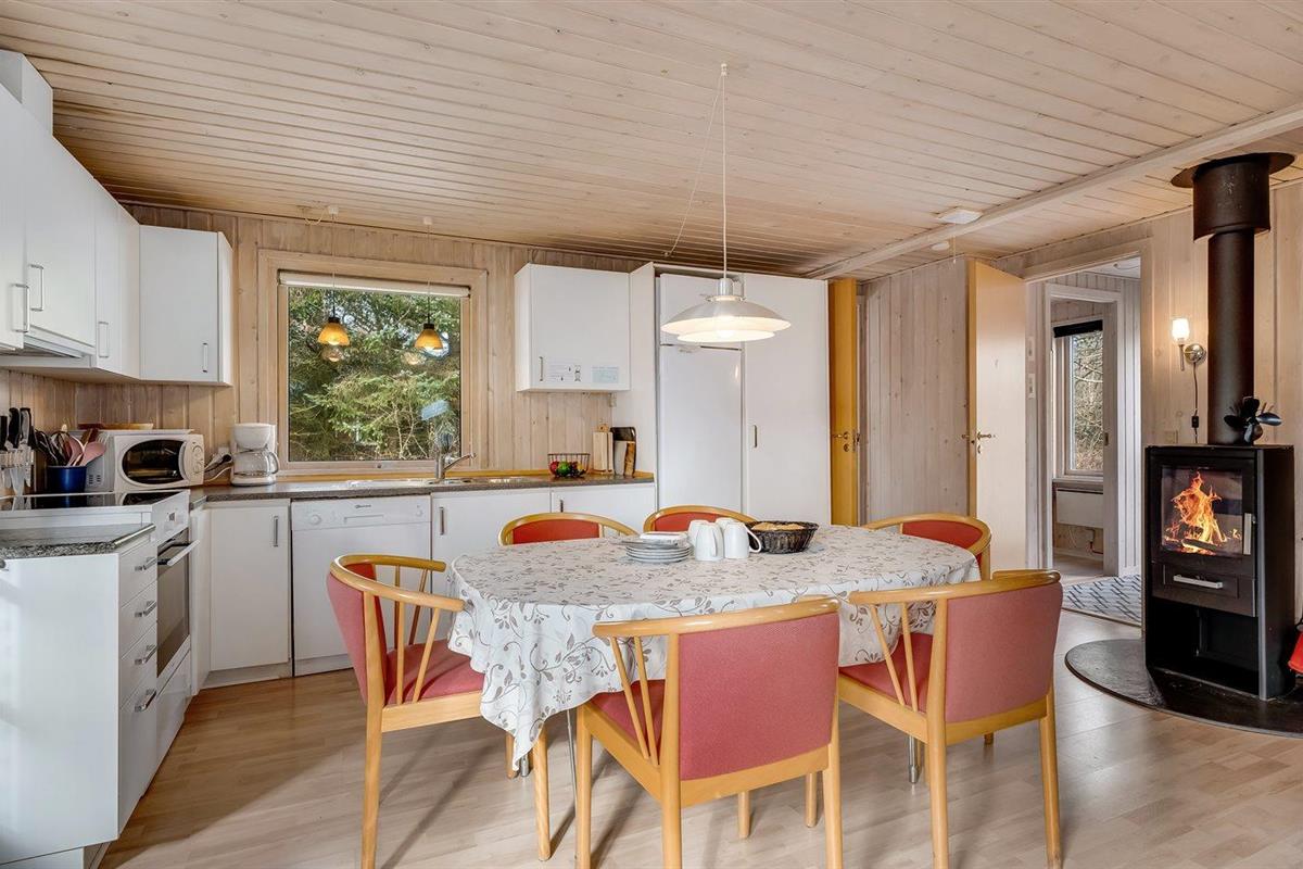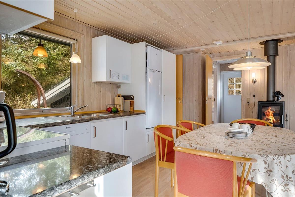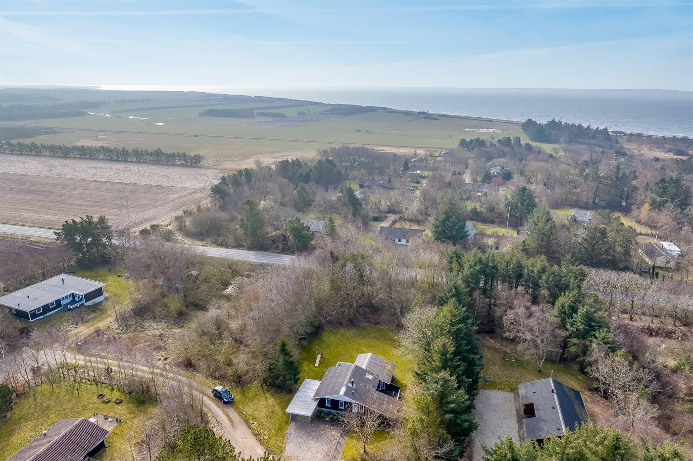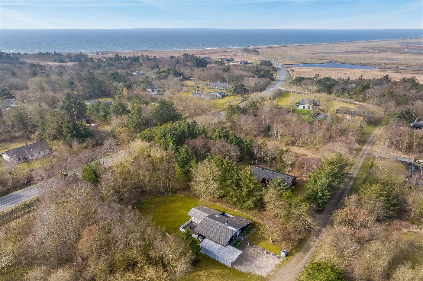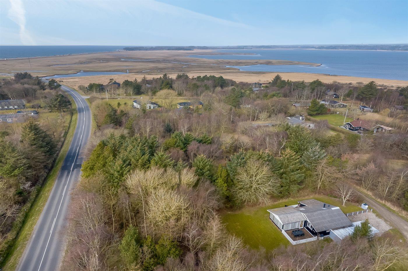 De vakantiewoning is gelegen op een 1500 m² groot natuural grond. Afstand tot de zee 5000 m. Afstand tot de fjord 200 m. Afstand tot meer 50 m. Dichtstbijzijnde winkel 4500 m. Bij de vakantiewoning hoort terras. Tevens heeft u de beschikking over een serre. Parkeerplaats bij het huis.