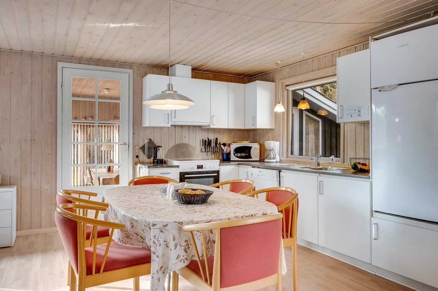 De keuken is uitgerust met koelkast Er is 4 elektrische kookplaten, heteluchtoven, magnetron en vaatwasser.
