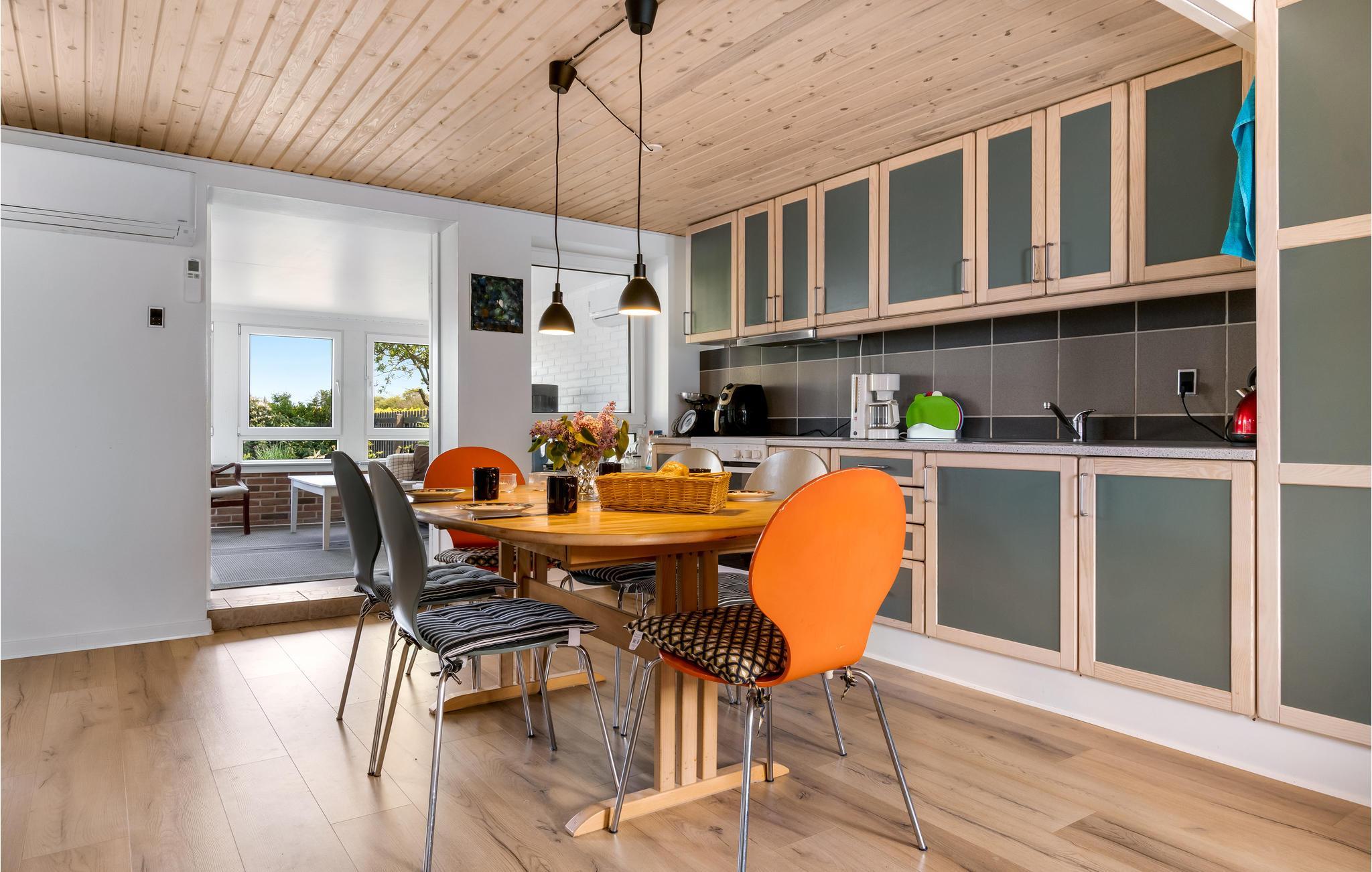 Op een rustige locatie in Lyngs Strand, verwelkomt dit aangename vakantiehuis op twee niveaus u. Maak het uzelf hier comfortabel met uw geliefden en breng een ontspannende vakantie door. Het huis biedt alles wat u nodig heeft voor een zorgeloze vakantie. Achter het huis vindt u zowel een groot als een kleiner terras waar u kunt genieten van de zon en uw maaltijden in de open lucht. U kunt de avonduren doorbrengen met een glas wijn, een goed gesprek en uitzicht op het veld, terwijl u activiteiten plant voor de volgende dag van uw vakantie.