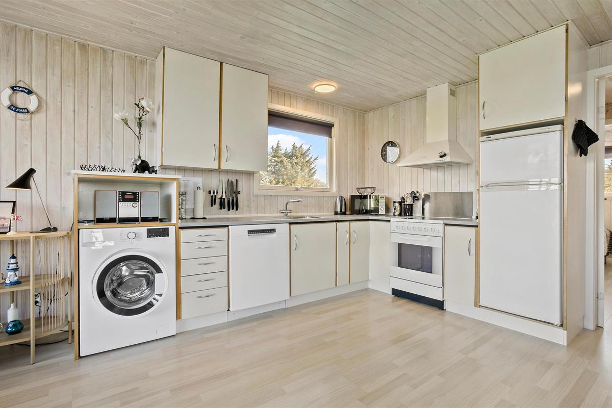 Dit gezellig ingerichte vakantiehuis in Lyngs Drag ligt niet ver van de Limfjord. Het is een ideaal domicilie voor degenen die graag centraal wonen en voor degenen die graag Thisted en Struer bezoeken. Het licht ingerichte vakantiehuis heeft een groot terras rondom het huis, waarvan een deel onder het dak ligt. Lyngs Drag is een klein vakantiehuisgebied met fjord, heide en bos in de nabijheid. De Limfjord staat bekend om zijn schilderachtige eilanden. Bezoek het eiland Mors met het Jesperhus Blomsterpark, een fascinerend bloemenpark met een leuk attractiepark en zwemgedeelte. De vaak zeer ondiepe en kindvriendelijke stranden van de Limfjord nodigen uit tot allerlei watersporten. Hier kunt u vissen, zeilen, surfen, duiken, waterskiën of zandkastelen bouwen en spetteren in de ondiepe golven. Een heerlijke speeltuin voor jong en oud.