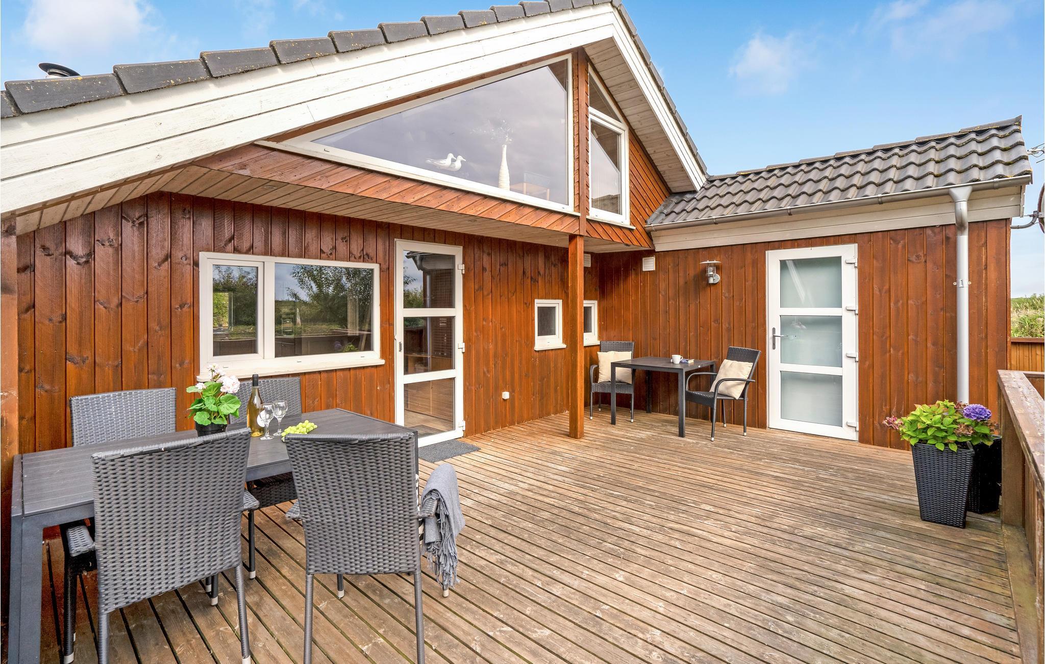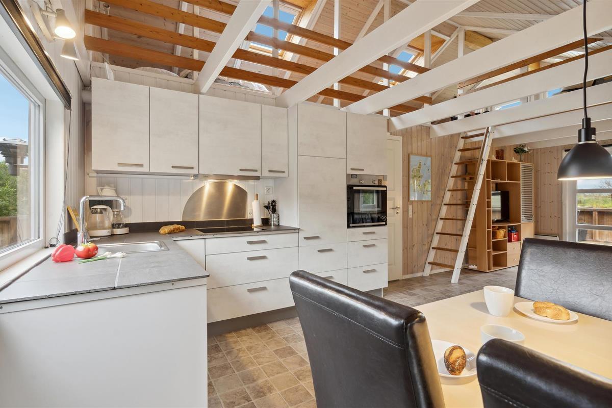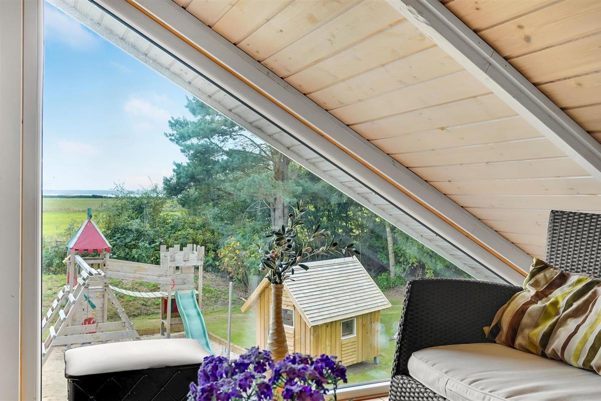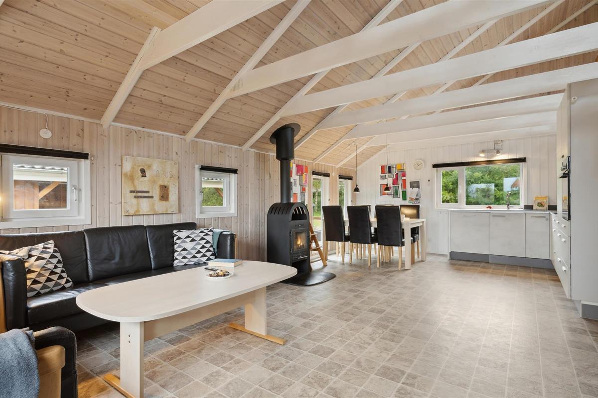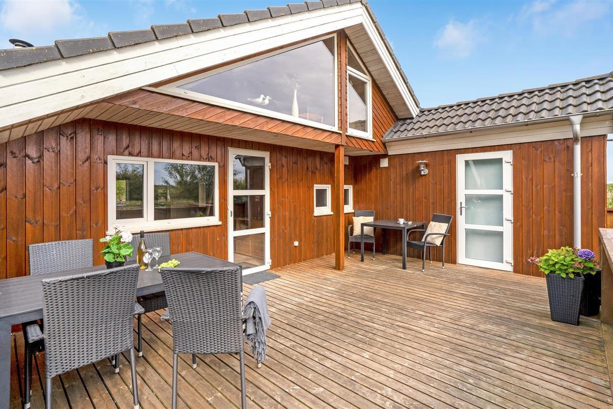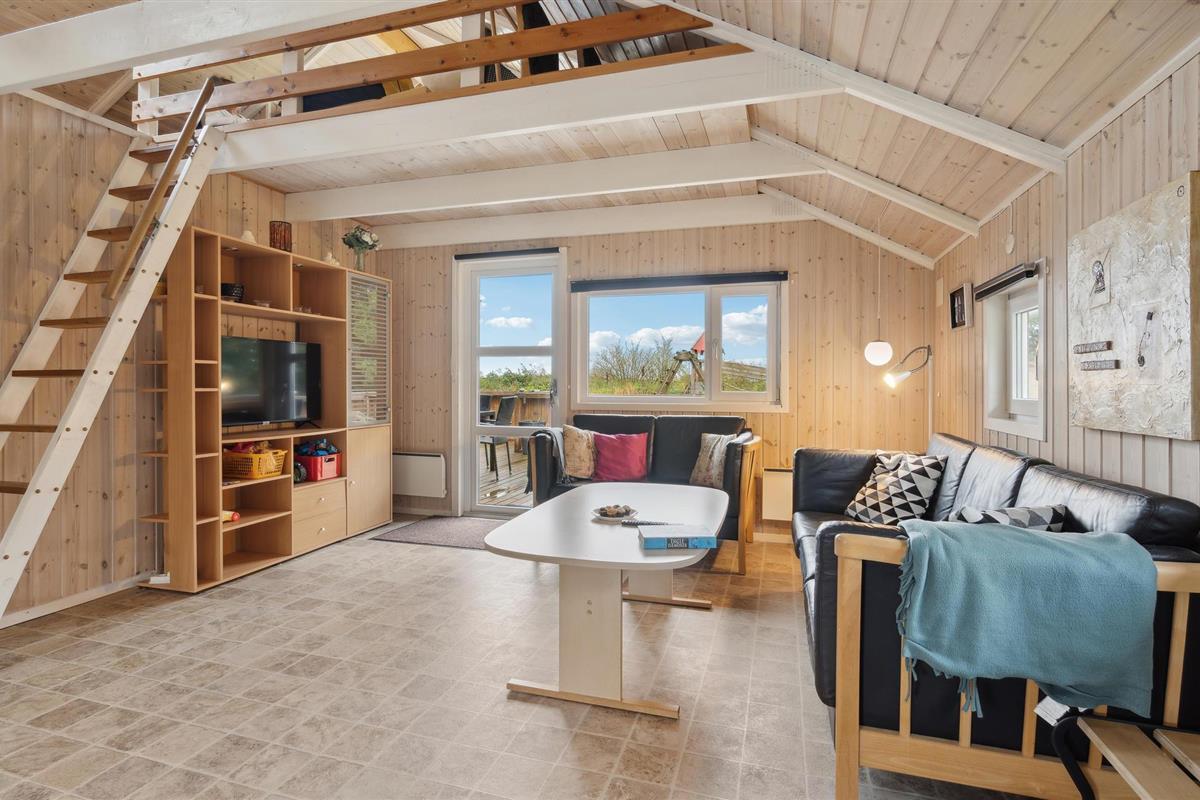 Zeer mooi houten vakantiehuis op een gedeeltelijk beplant natuurperceel in een natuurrijke omgeving. Het is ingericht met een ruime woonkamer met open balken. Er is een grote, lichte open slaapzolder en een zuidwestelijk terras met uitzicht op het fjord. U heeft vele tv-zenders tot uw beschikking, waaronder TV2 Sport. De mooie keuken staat in verbinding met de eethoek. De mooie badkamer heeft een zwarte klinkervloer, licht interieur, een whirlpool en een sauna. Een licht huis dat zeer geschikt is voor een familievakantie. De huurprijs is inclusief gratis toegang tot het overdekte zwembad Sydthy Svømme- og Kurbad Hurup.