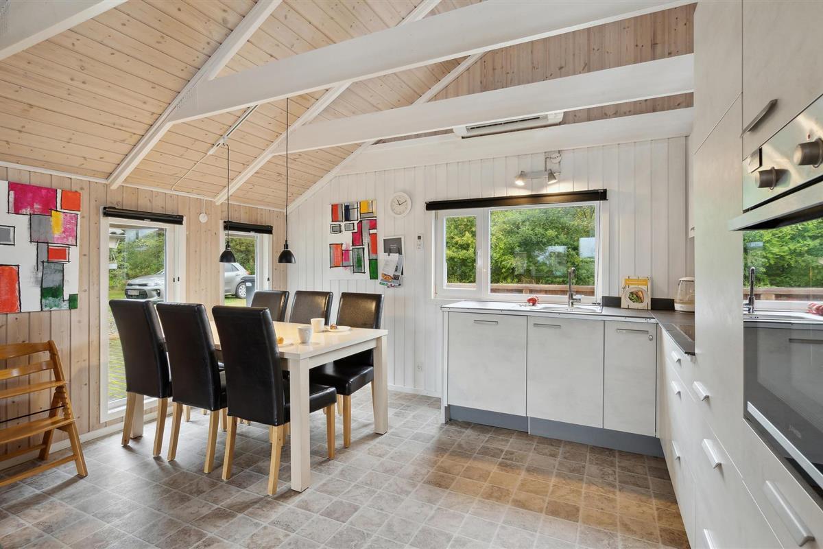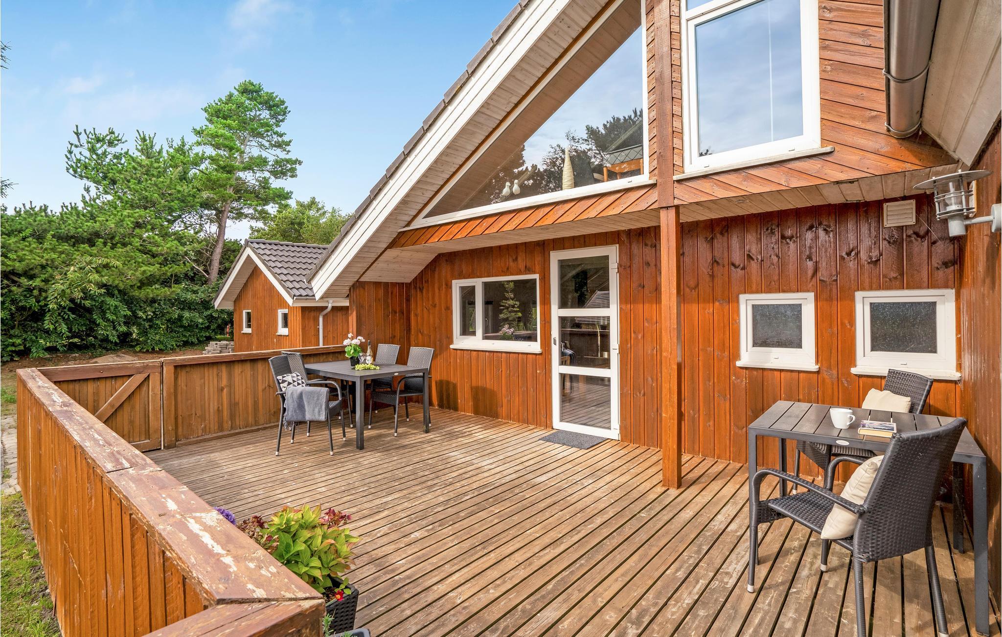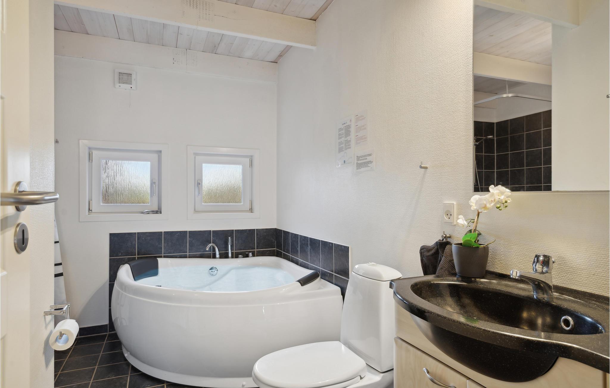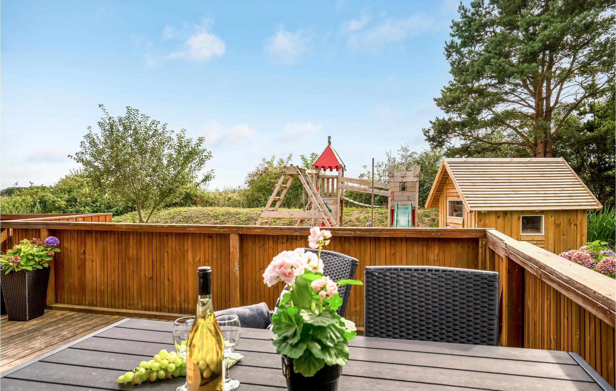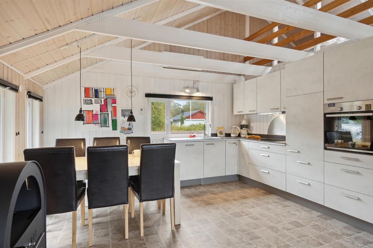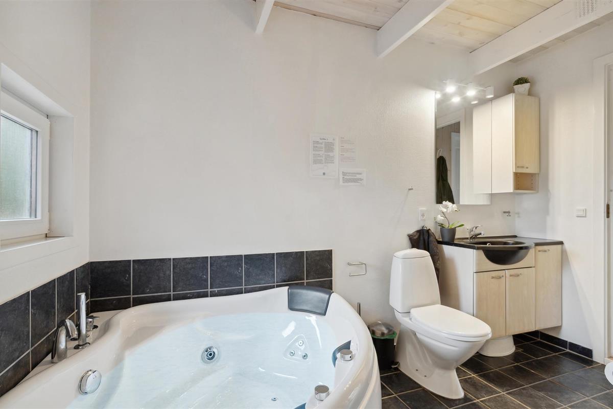 Zeer mooi houten vakantiehuis op een gedeeltelijk beplant natuurperceel in een natuurrijke omgeving. Het is ingericht met een ruime woonkamer met open balken. Er is een grote, lichte open slaapzolder en een zuidwestelijk terras met uitzicht op het fjord. U heeft vele tv-zenders tot uw beschikking, waaronder TV2 Sport. De mooie keuken staat in verbinding met de eethoek. De mooie badkamer heeft een zwarte klinkervloer, licht interieur, een whirlpool en een sauna. Een licht huis dat zeer geschikt is voor een familievakantie. De huurprijs is inclusief gratis toegang tot het overdekte zwembad Sydthy Svømme- og Kurbad Hurup.