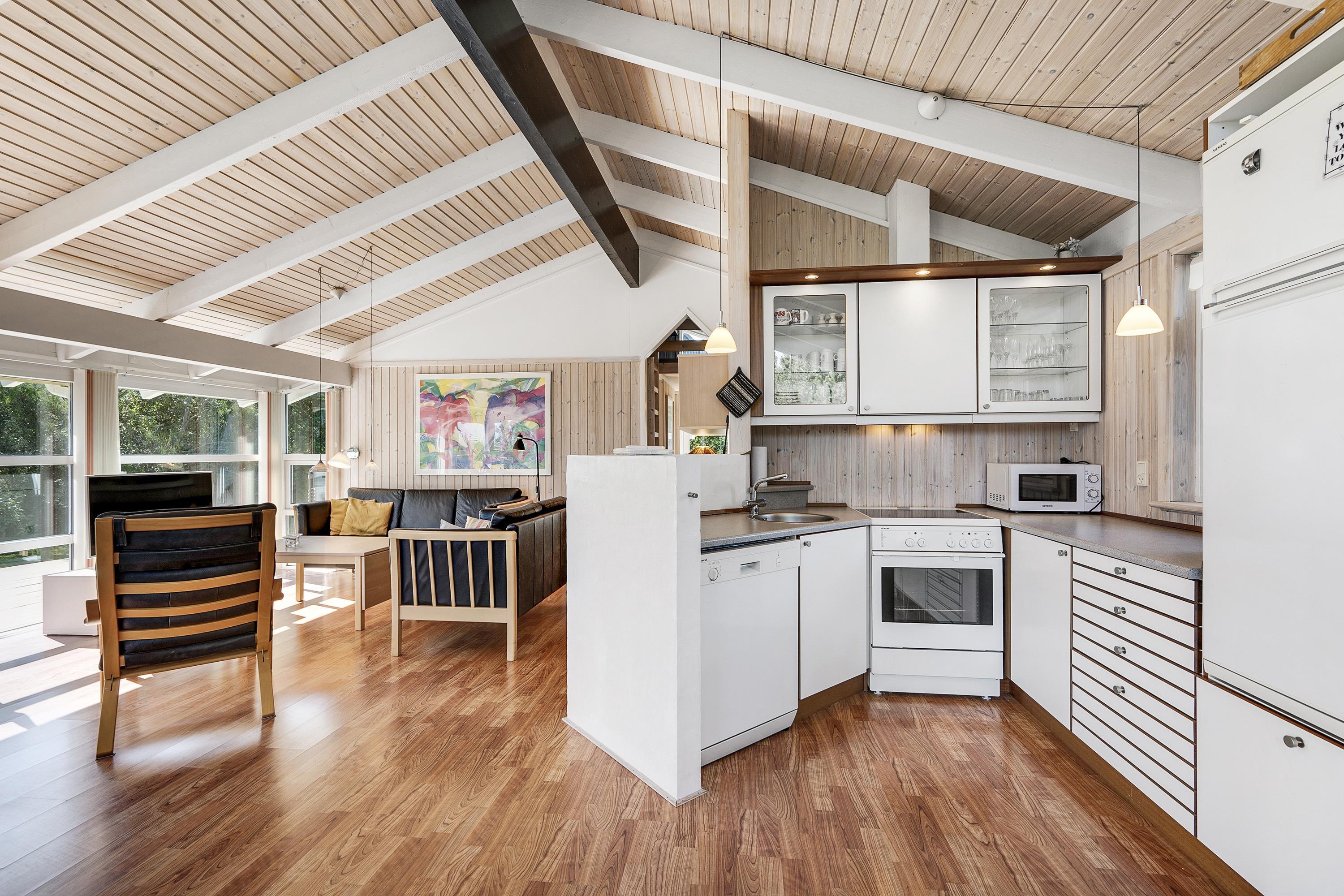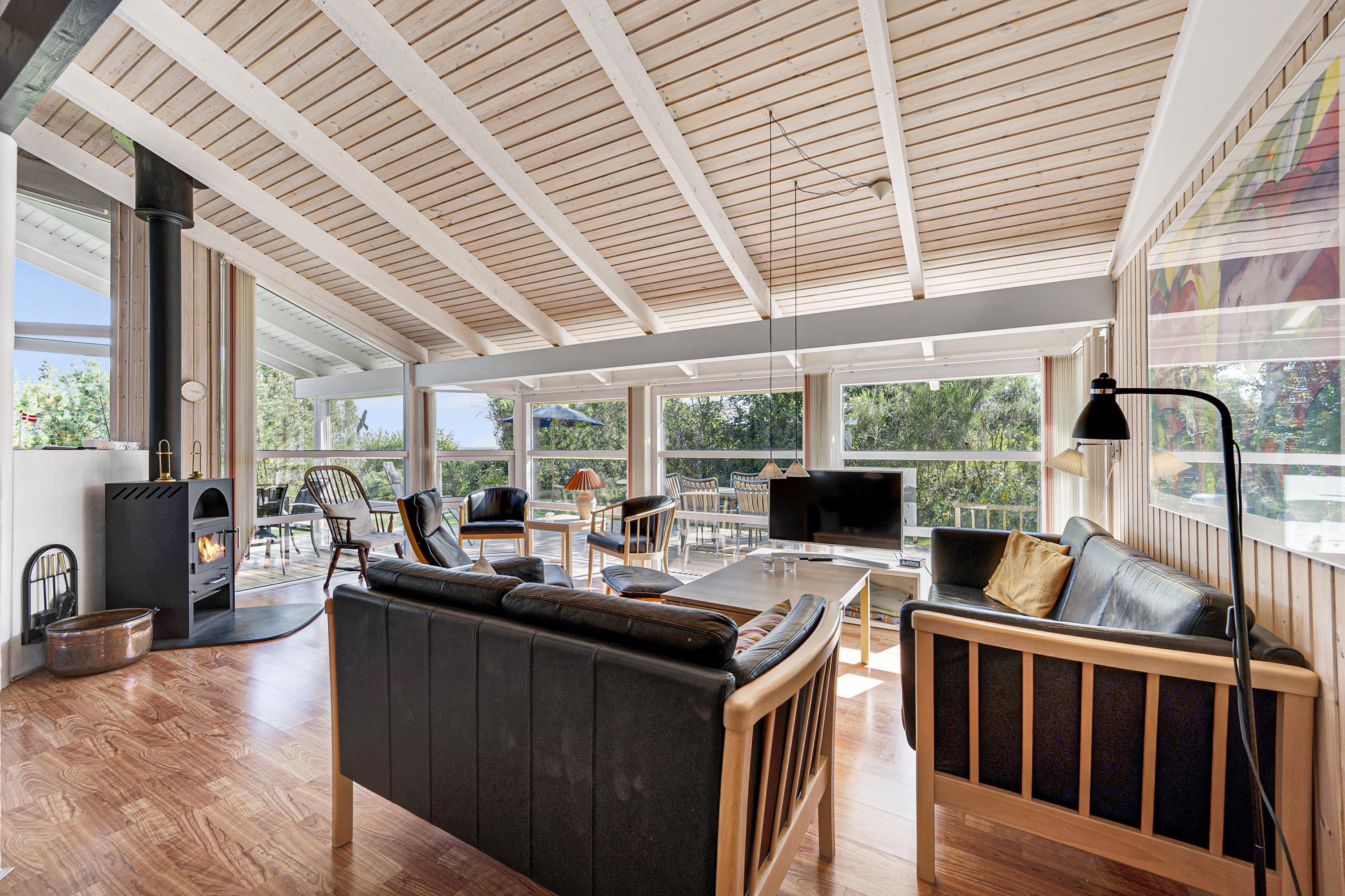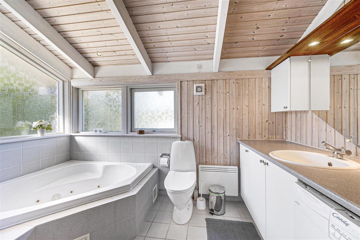 From the spacious entrance, you enter the large, bright living room with panoramic windows. It has a dining area for 6 people, a comfortable sofa set, a wood stove, a television with Danish (including TV2) and German channels, Chromecast, and a radio. In an open connection with the living room, you will find a large, well-equipped kitchen with a stove with ceramic hobs and an oven, a fridge/freezer, a dishwasher, and a microwave. TThe house has 3 bedrooms - 2 good rooms with double beds, width 180 cm and 140 cm, and 1 room with 2 single beds.. A large, beautiful bathroom with underfloor heating, a shower niche, a spa, a washing machine, and a tumble dryer. From the bathroom, there is access to the sauna. Internet access is available.
