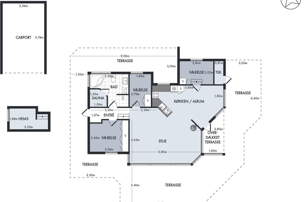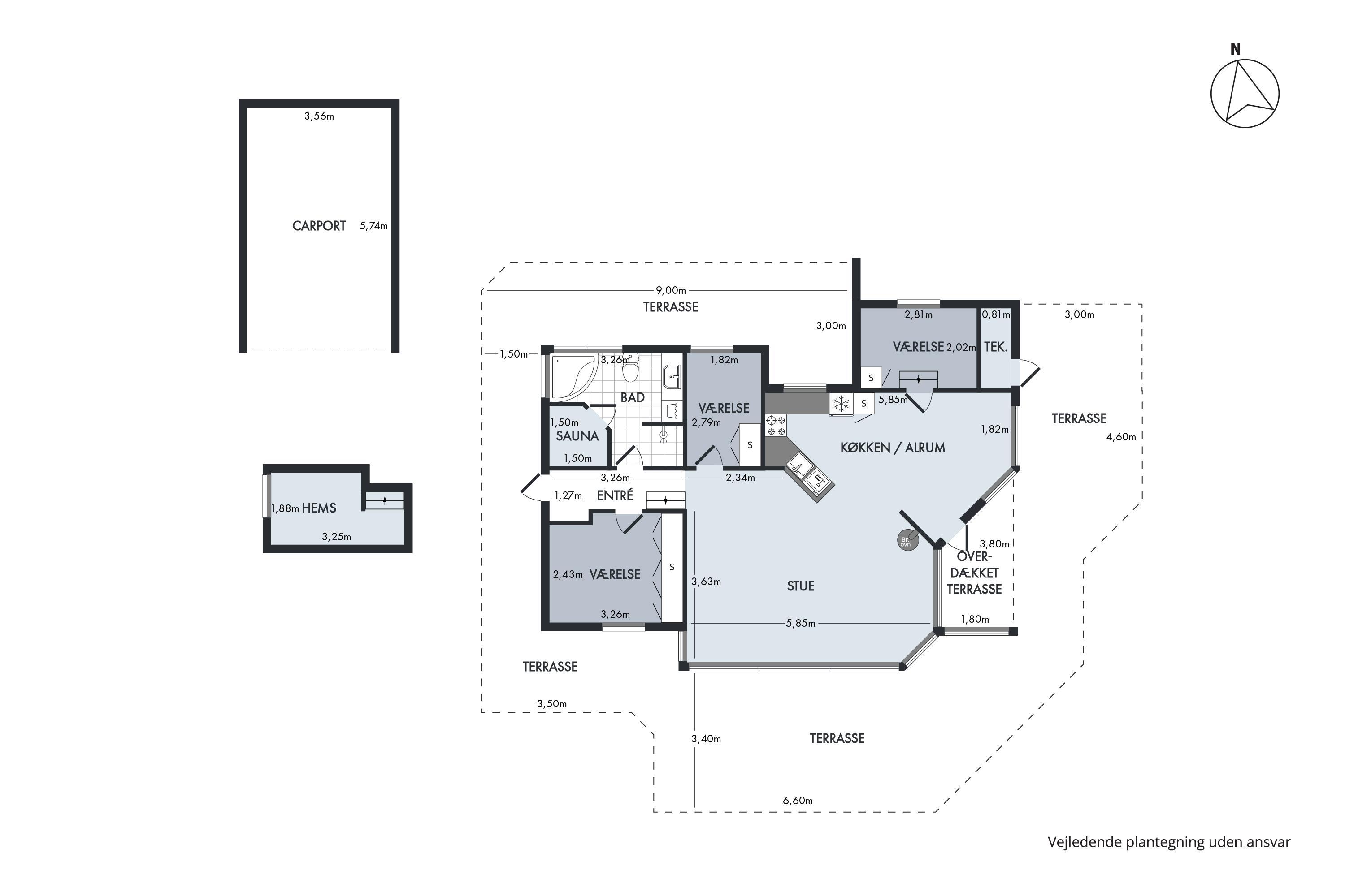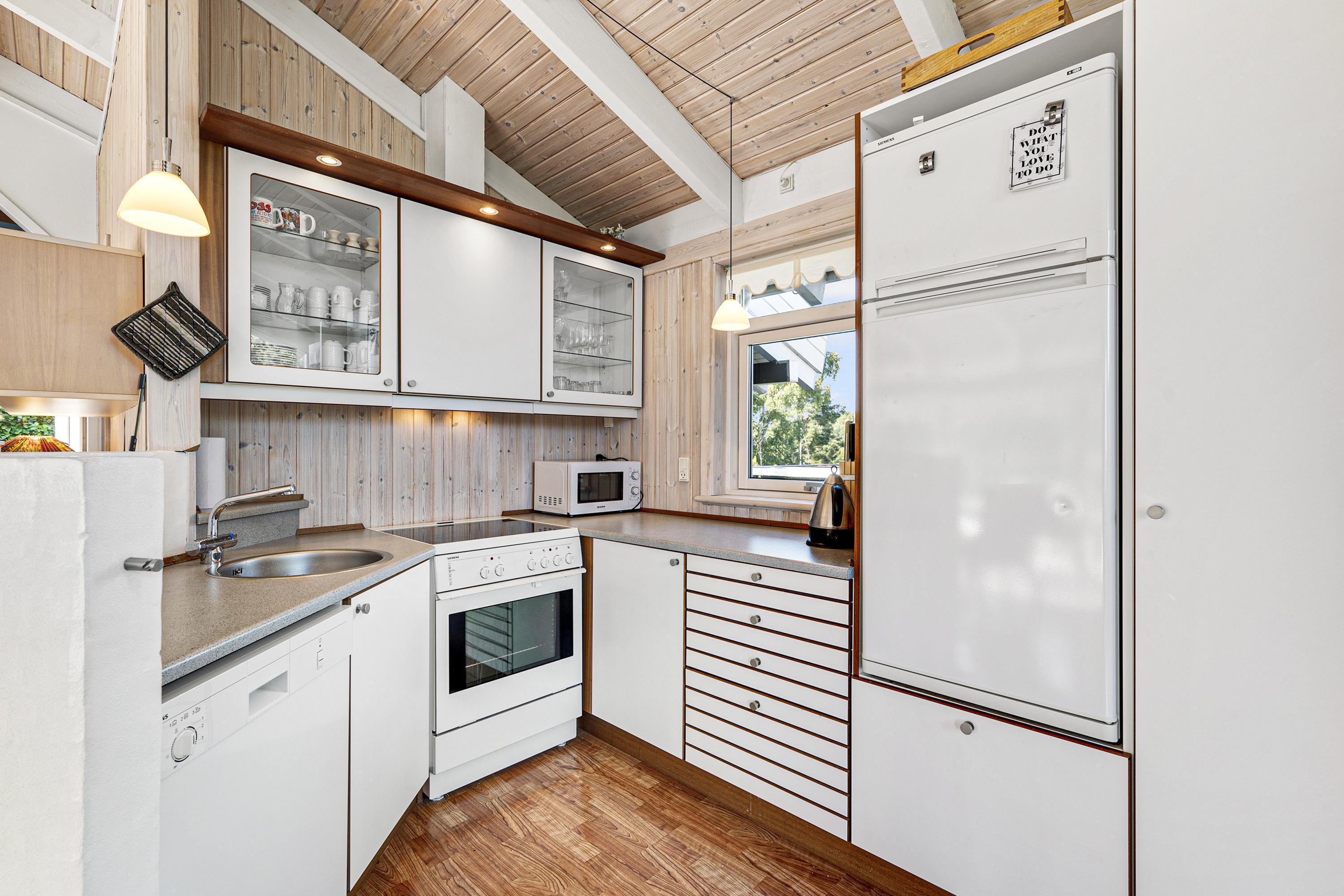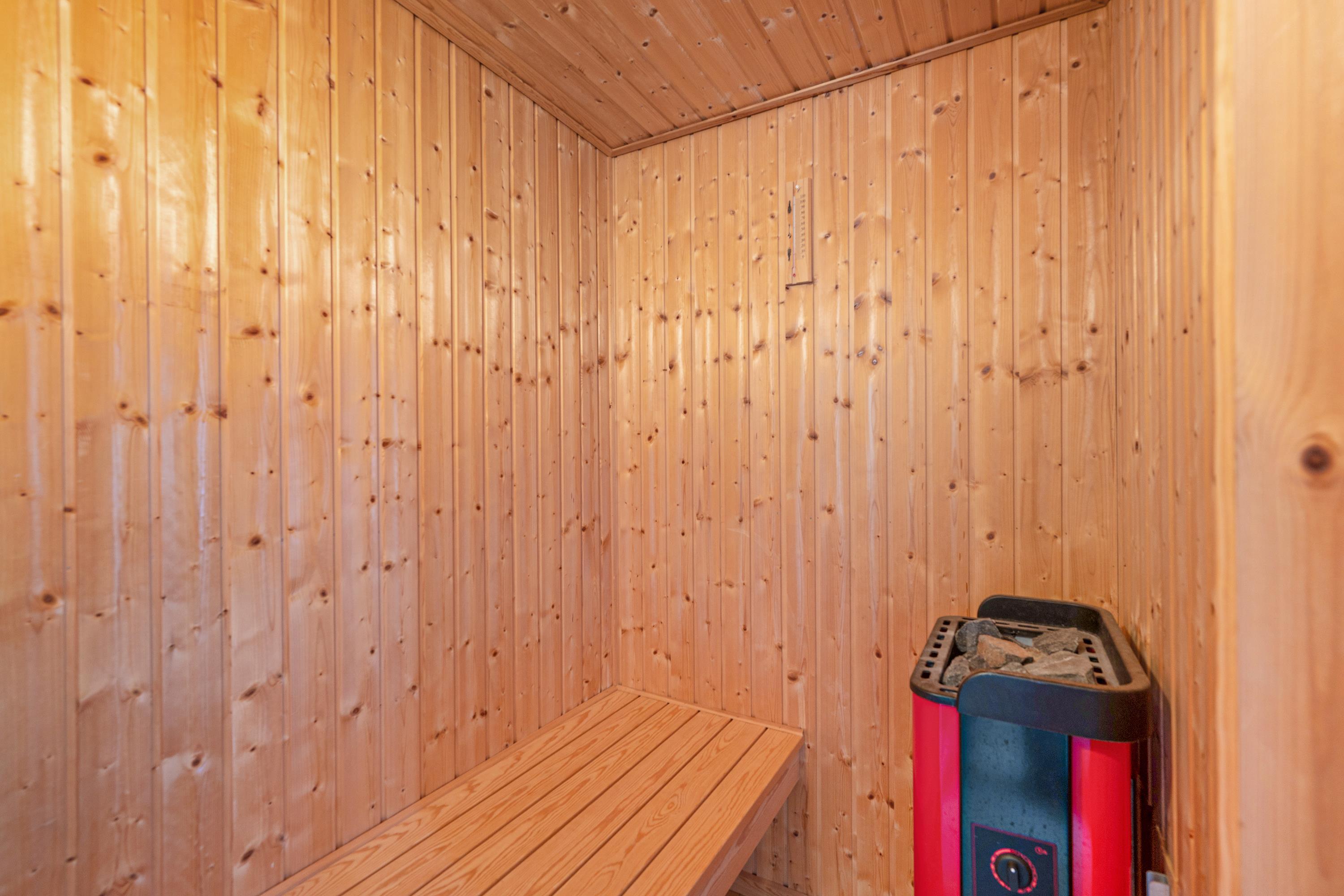 From the spacious entrance, you enter the large, bright living room with panoramic windows. It has a dining area for 6 people, a comfortable sofa set, a wood stove, a television with Danish (including TV2) and German channels, Chromecast, and a radio. In an open connection with the living room, you will find a large, well-equipped kitchen with a stove with ceramic hobs and an oven, a fridge/freezer, a dishwasher, and a microwave. TThe house has 3 bedrooms - 2 good rooms with double beds, width 180 cm and 140 cm, and 1 room with 2 single beds.. A large, beautiful bathroom with underfloor heating, a shower niche, a spa, a washing machine, and a tumble dryer. From the bathroom, there is access to the sauna. Internet access is available.