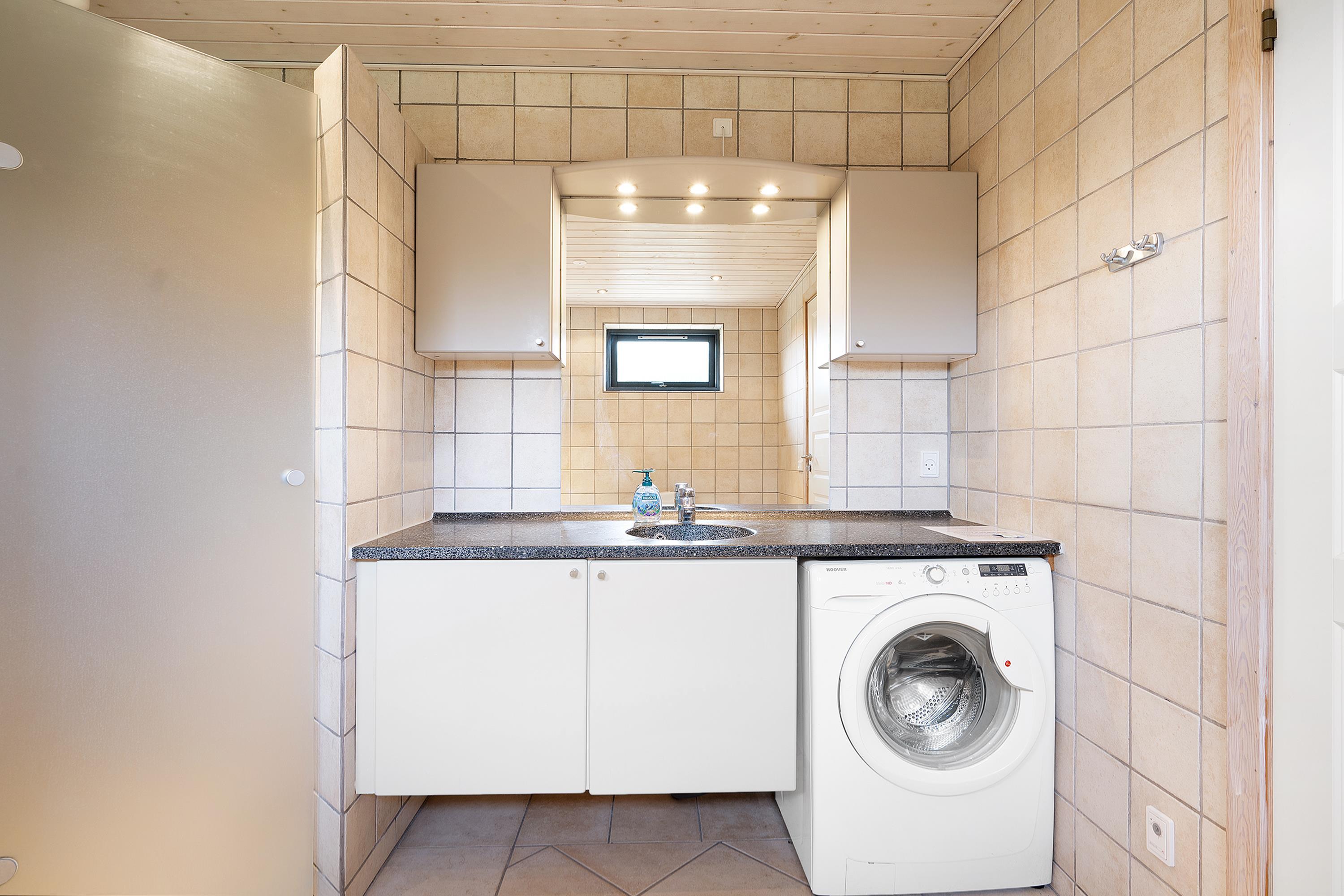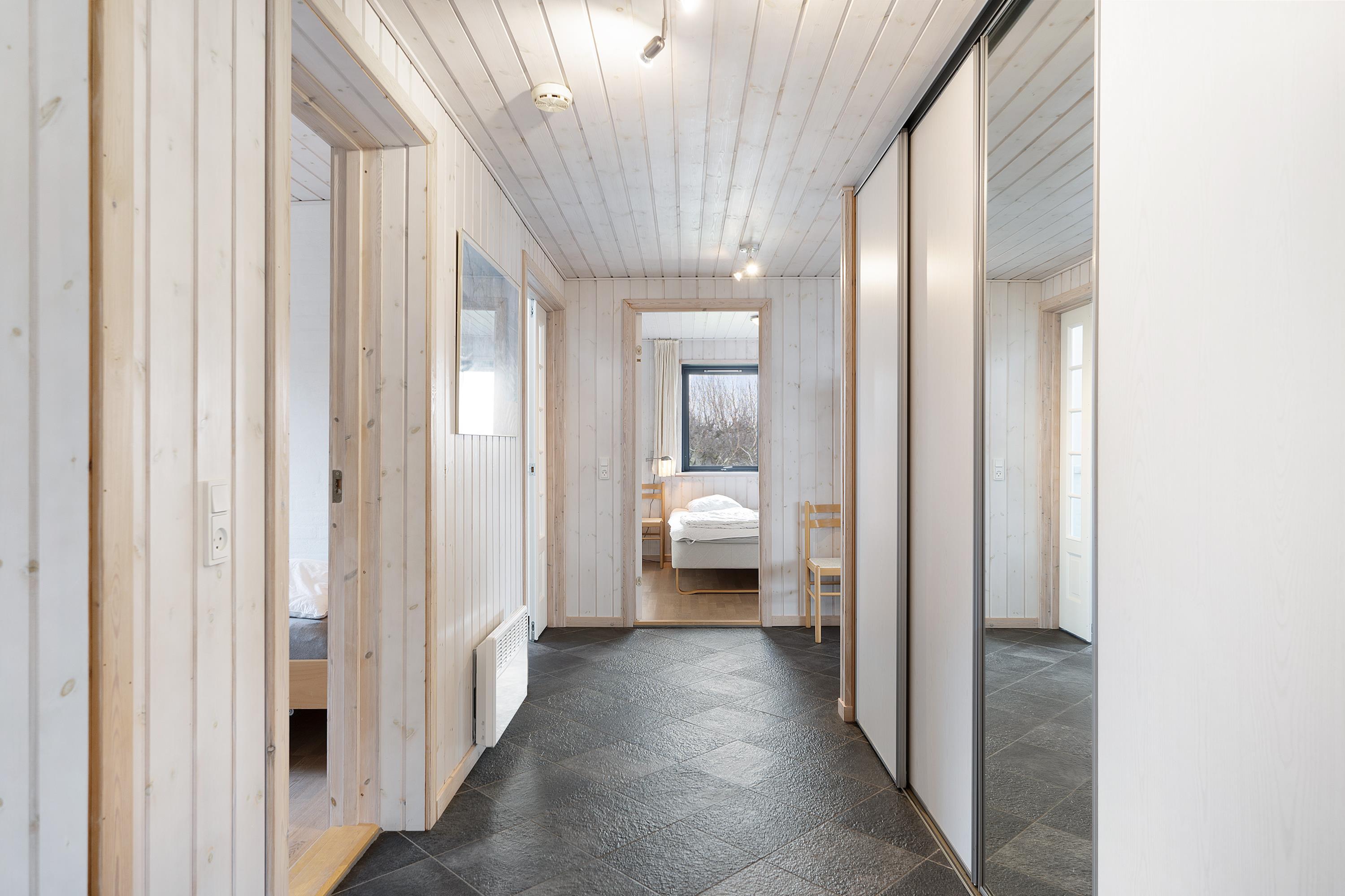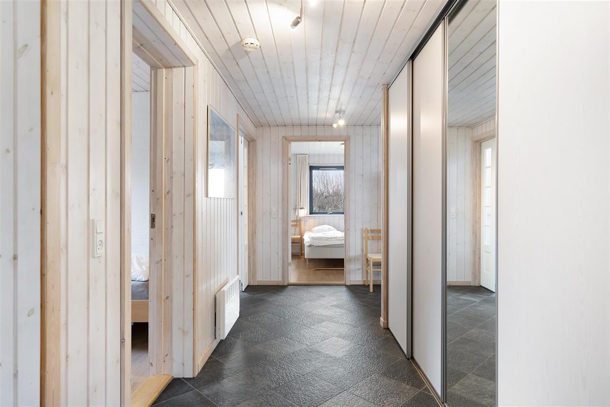 The heart of the home is the large, bright living room with the fantastic view. It features a dining area for 8 people, a comfortable sofa set, a wood stove, a television with Danish (including TV2) and German channels, and a radio. In an open connection with the living room, there is a spacious, well-equipped kitchen with ceramic hobs, a built-in oven, a refrigerator, a dishwasher, and a microwave. Additionally, there is a dining area for 4 people. The house has 4 bedrooms – 2 good rooms with double beds and 2 rooms with a single bed, providing a total of 6 sleeping spaces. A large, beautiful tiled bathroom with underfloor heating, a shower niche, a spa, and a washing machine. Internet access is available.