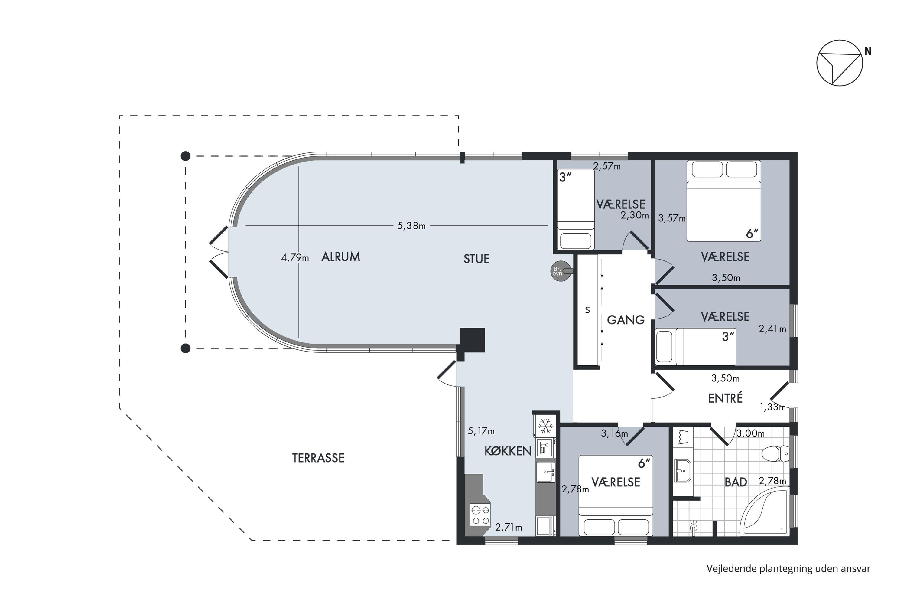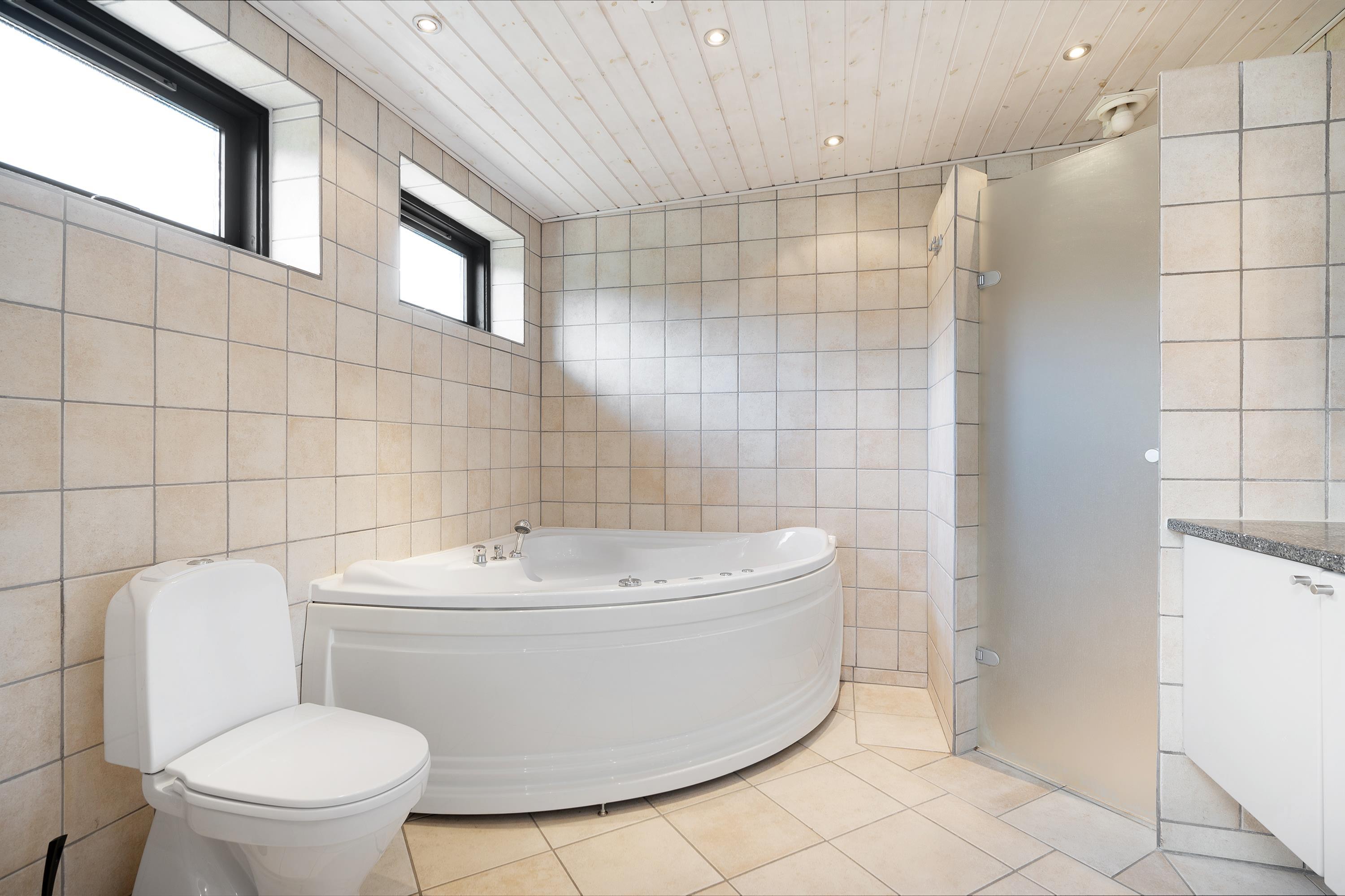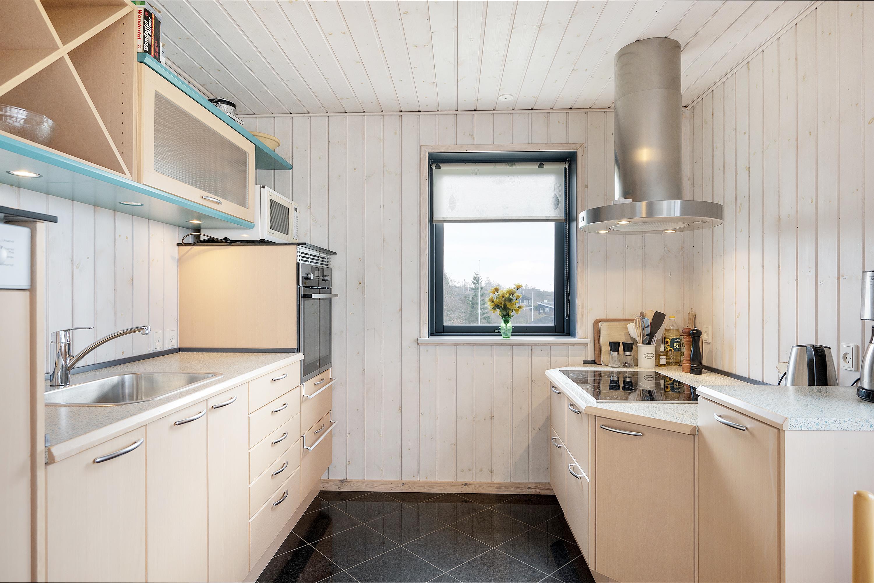 The heart of the home is the large, bright living room with the fantastic view. It features a dining area for 8 people, a comfortable sofa set, a wood stove, a television with Danish (including TV2) and German channels, and a radio. In an open connection with the living room, there is a spacious, well-equipped kitchen with ceramic hobs, a built-in oven, a refrigerator, a dishwasher, and a microwave. Additionally, there is a dining area for 4 people. The house has 4 bedrooms – 2 good rooms with double beds and 2 rooms with a single bed, providing a total of 6 sleeping spaces. A large, beautiful tiled bathroom with underfloor heating, a shower niche, a spa, and a washing machine. Internet access is available.