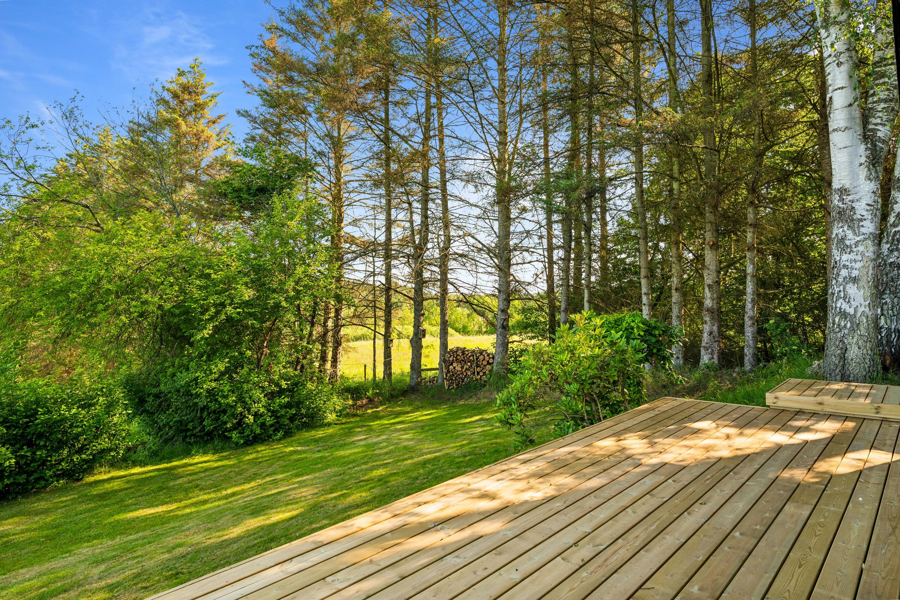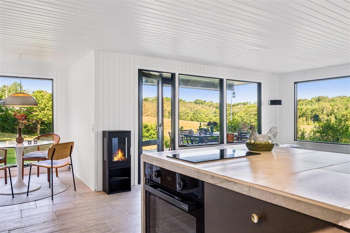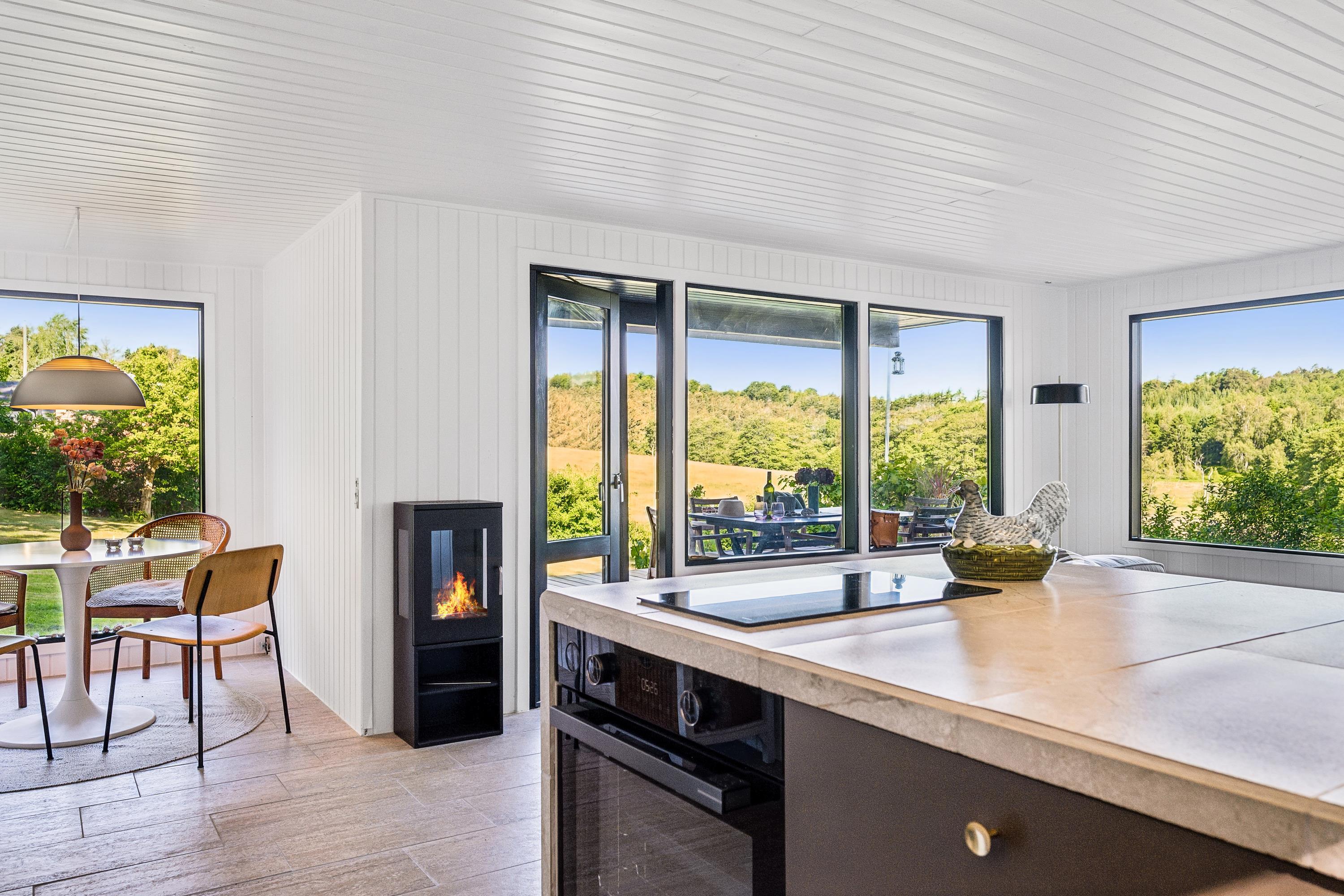 The house is located on a charming plot with a large lawn, perfect for playing and outdoor relaxation, and with a view of the stunning surrounding nature. It is heated via an air-to-air heat pump, making energy consumption low and cost-effective. The house is situated about a 15-minute drive from Ebeltoft.