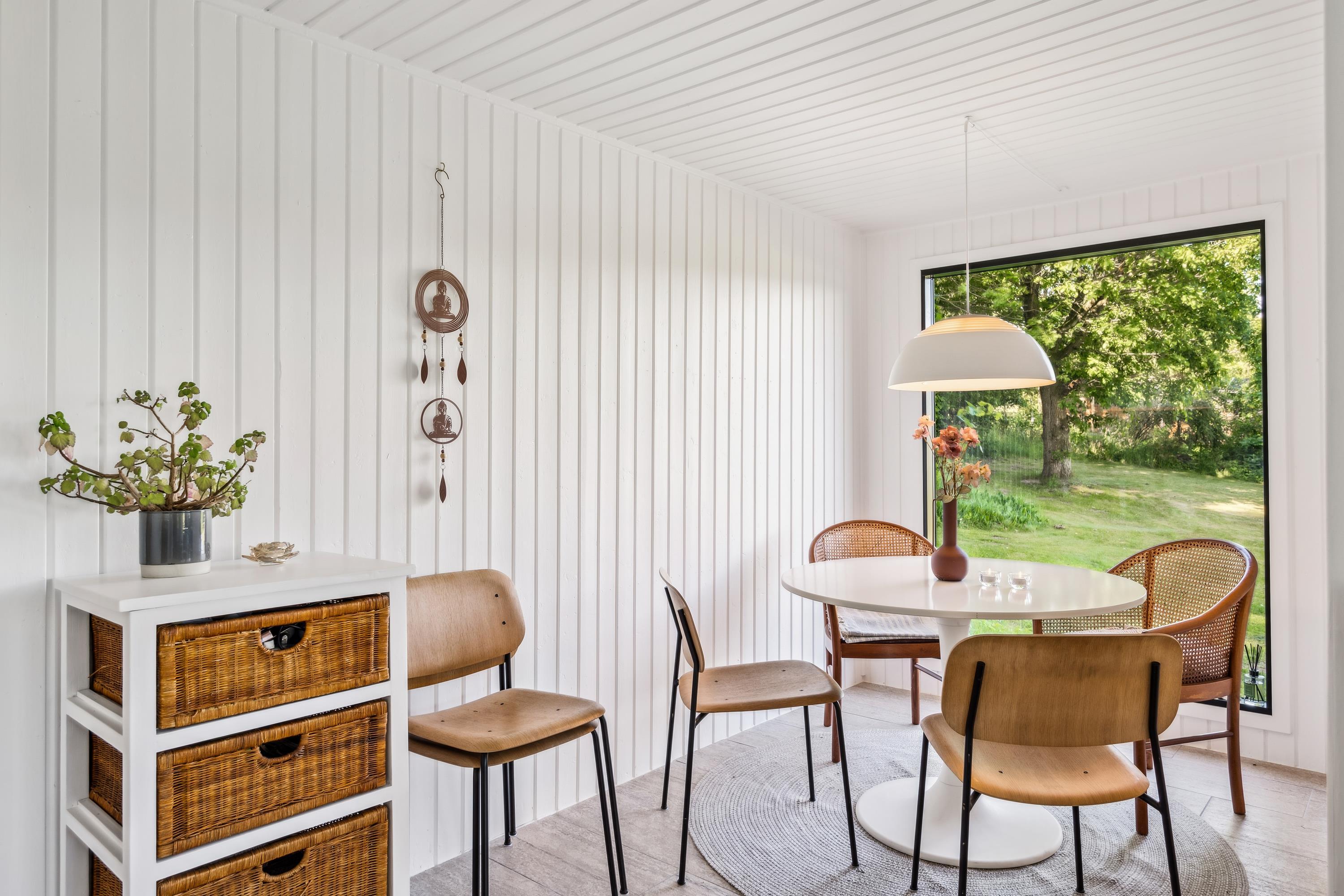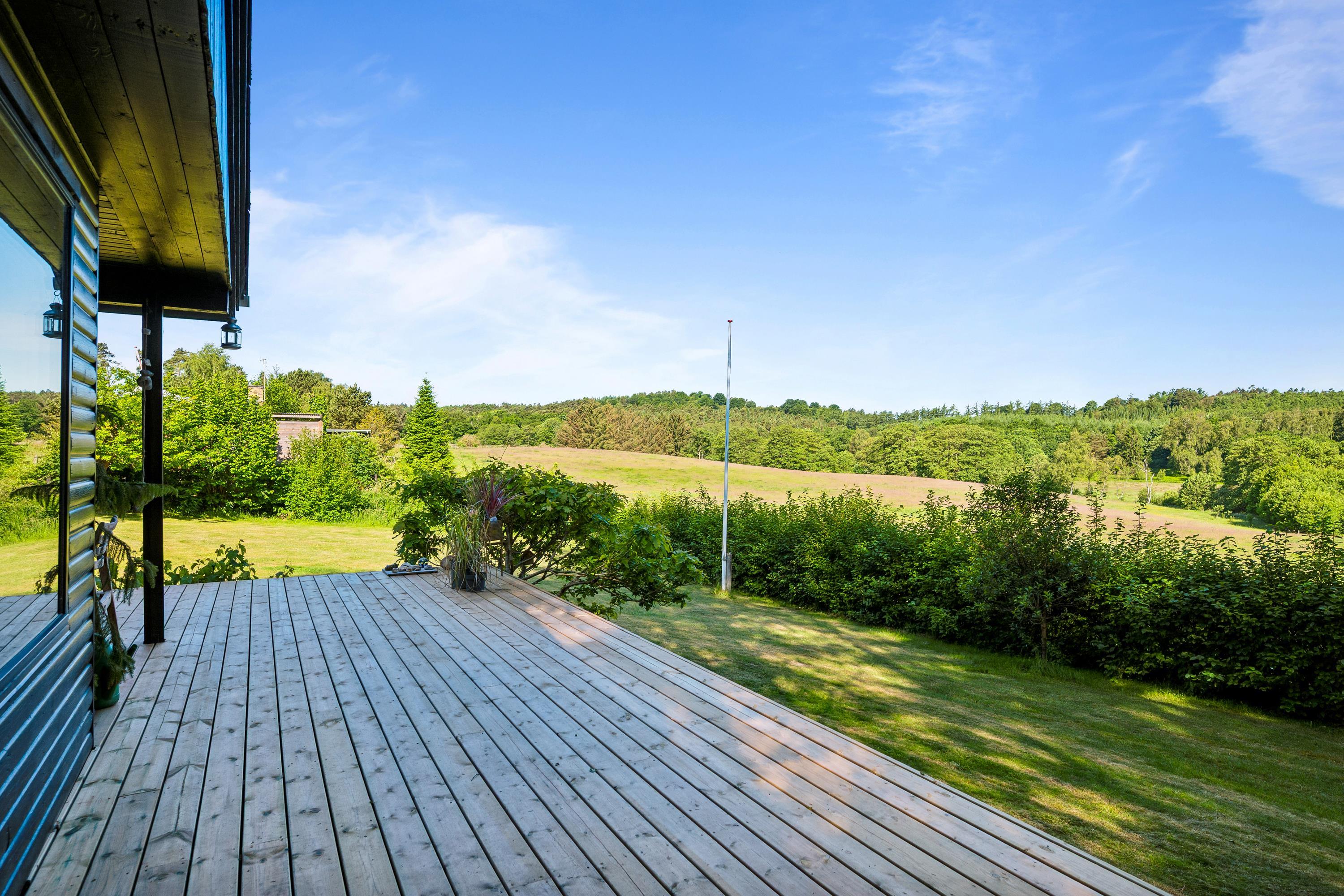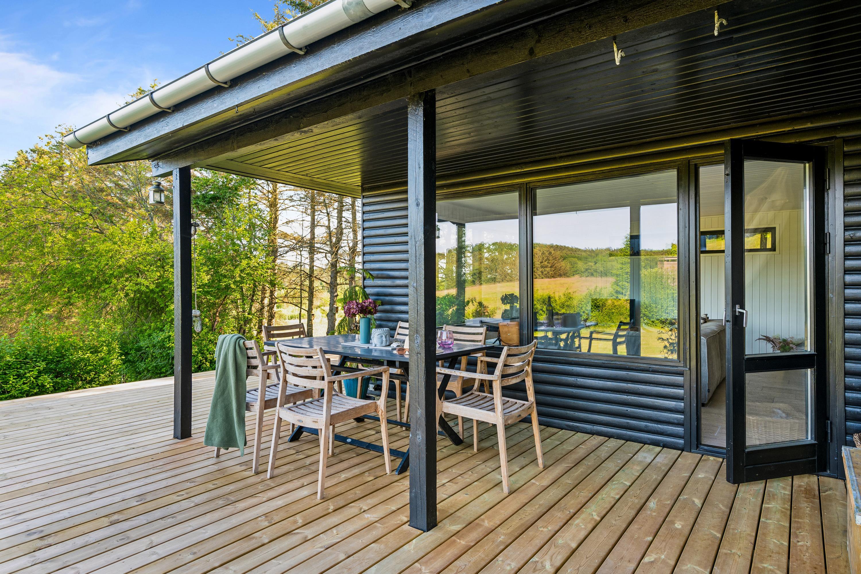 The house is located on a charming plot with a large lawn, perfect for playing and outdoor relaxation, and with a view of the stunning surrounding nature. It is heated via an air-to-air heat pump, making energy consumption low and cost-effective. The house is situated about a 15-minute drive from Ebeltoft.