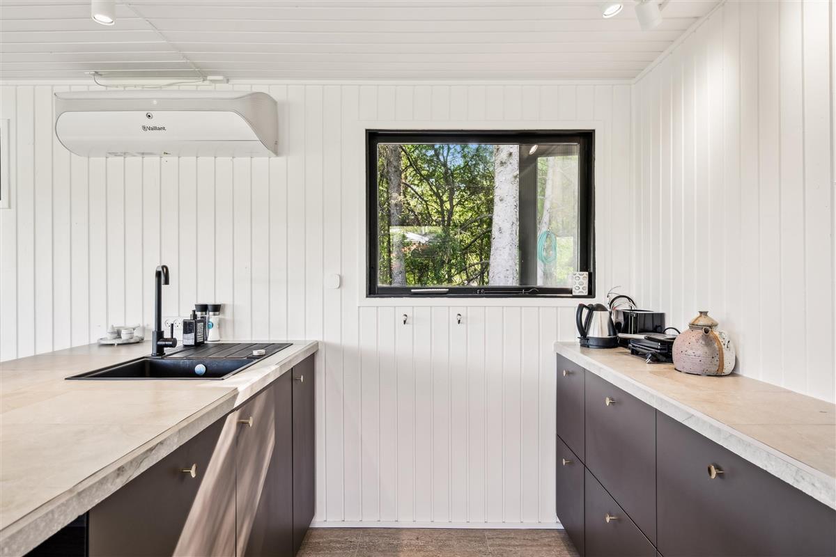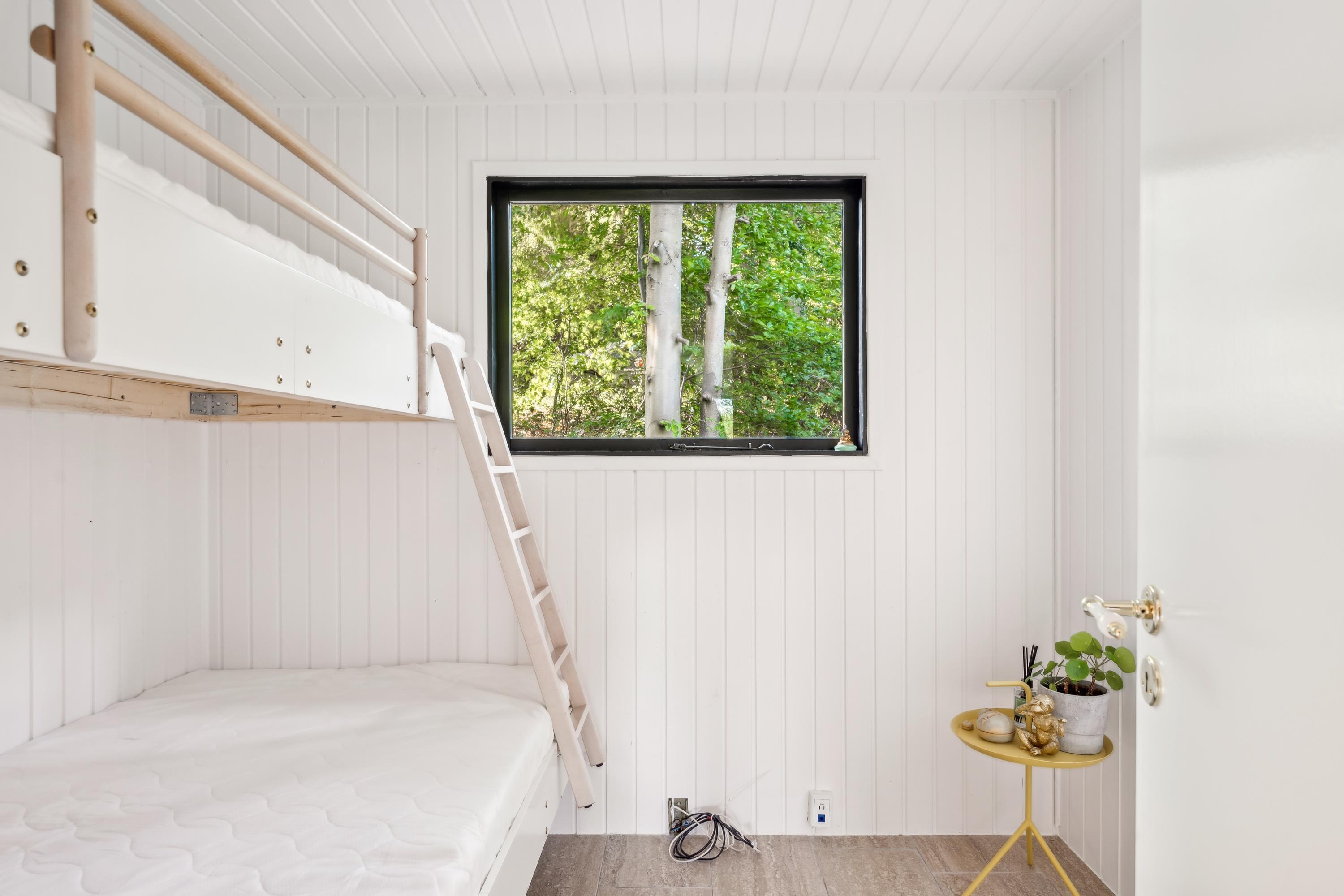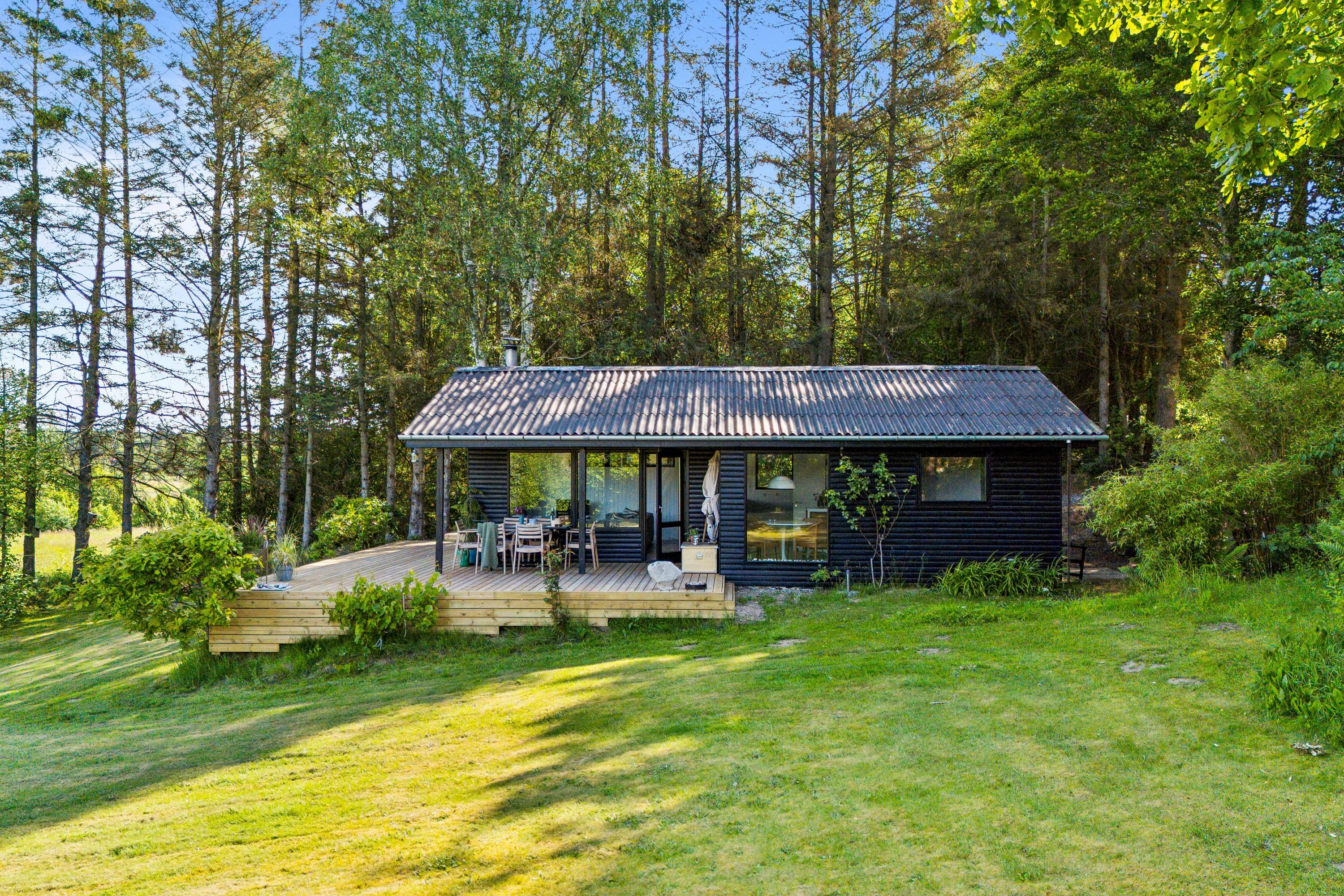 In the beautiful natural surroundings not far from Lyngsbæk Beach and the Mols Bjerge National Park, you'll find this older but fully renovated and cosy holiday home. It features a bright and comfortably furnished living room with a heat pump and biogas stove, as well as direct access to a lovely covered terrace with garden furniture. Connected to the living room is the brand-new kitchen, which includes a dishwasher among other amenities. The bathroom is also newly renovated and equipped with a shower. The sleeping arrangements include two bedrooms – one with a double bed and the other with a ¾ bed and a bunk bed above.