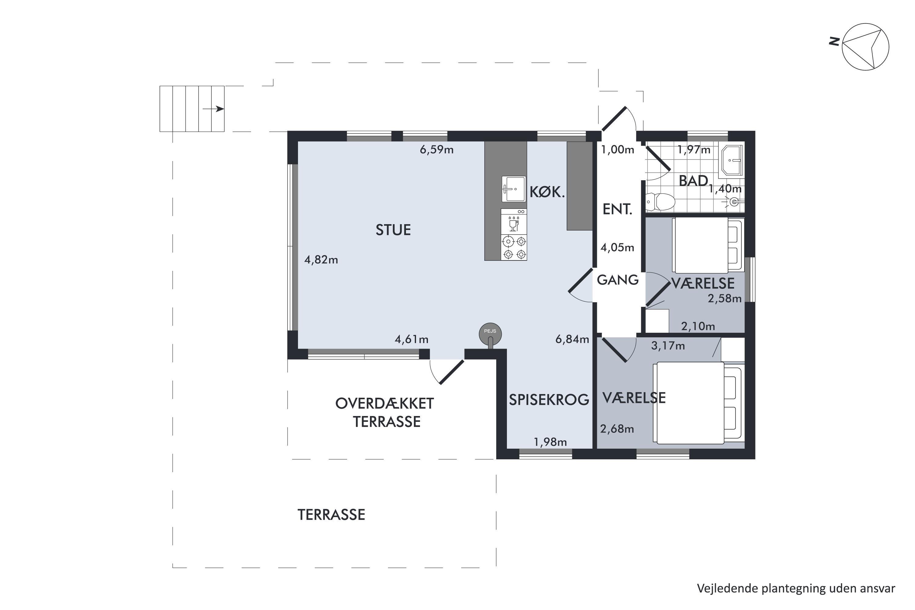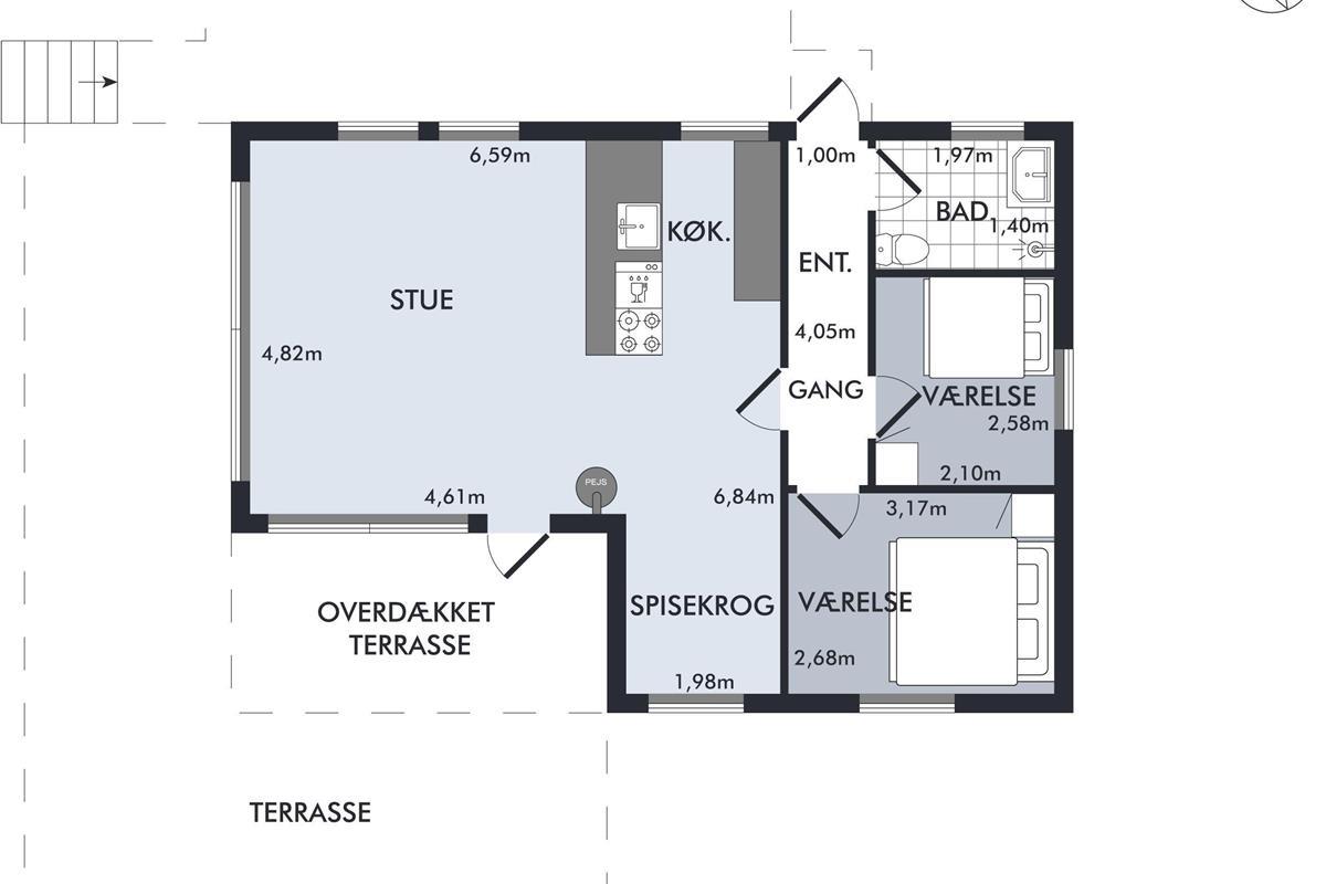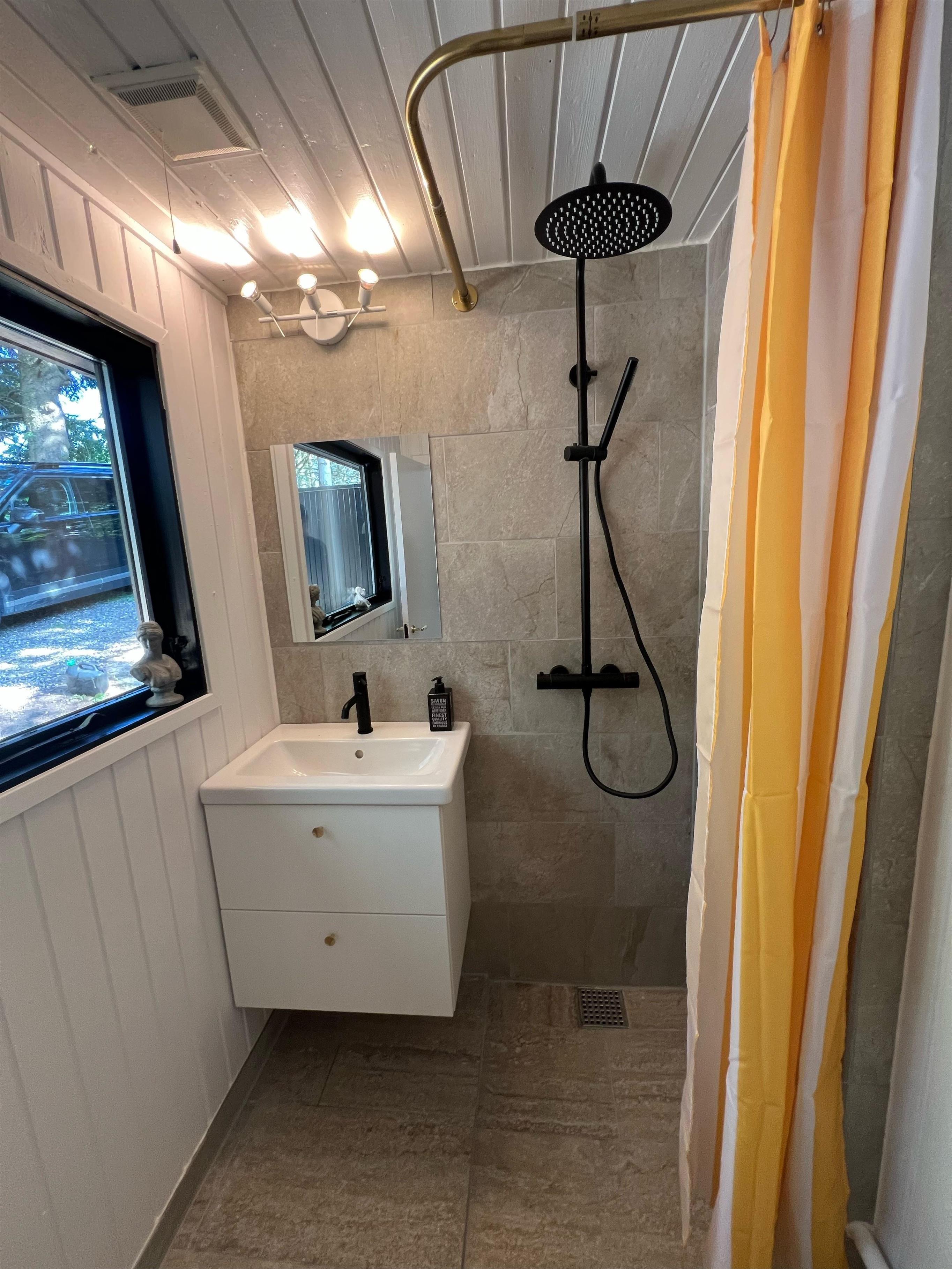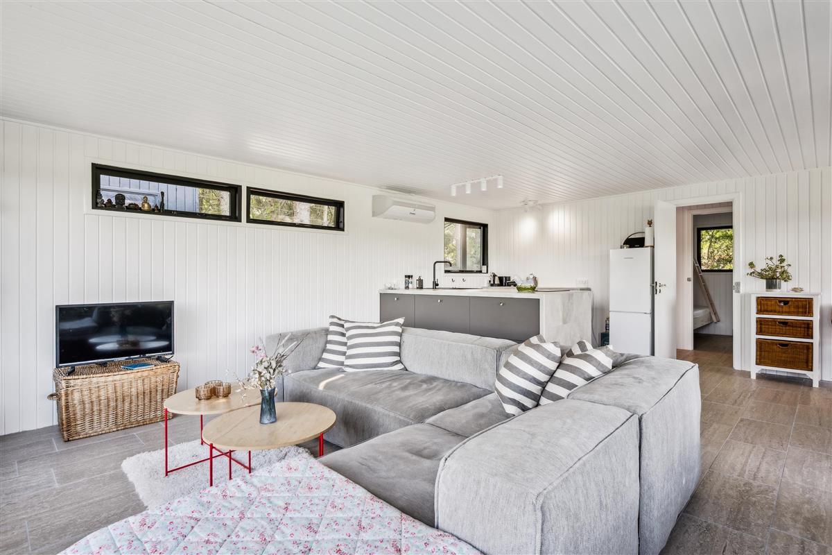 In the beautiful natural surroundings not far from Lyngsbæk Beach and the Mols Bjerge National Park, you'll find this older but fully renovated and cosy holiday home. It features a bright and comfortably furnished living room with a heat pump and biogas stove, as well as direct access to a lovely covered terrace with garden furniture. Connected to the living room is the brand-new kitchen, which includes a dishwasher among other amenities. The bathroom is also newly renovated and equipped with a shower. The sleeping arrangements include two bedrooms – one with a double bed and the other with a ¾ bed and a bunk bed above.