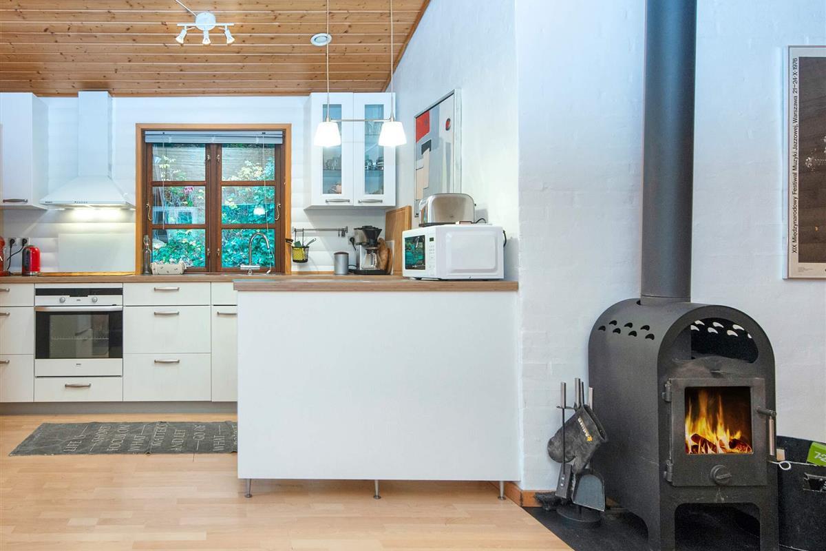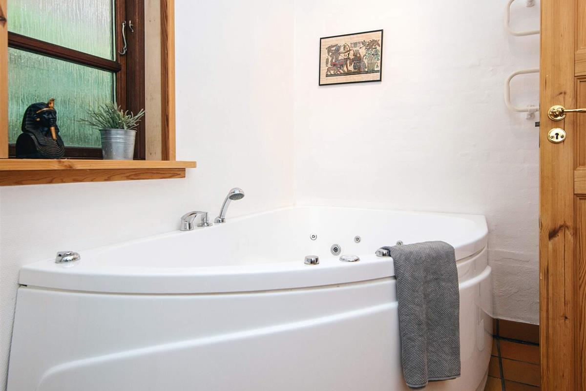 Ferienhaus mit Whirlpool und Sauna im Bad für erholsame Stunden. Liegt schön geschützt, auf einem gut abgeschirmten Naturgrundstück mit Rasenfläche bei Lyngsbæk, das Privatsphäre und Windschutz bietet. Das Ferienhaus hat im Außenbereich eine teilweise überdachte Terrassenfläche für sonnige Tage und lauschige Grillabende aber auch für Tage, an denen die Sonne nicht von einem wolkenlosen Himmel scheint.