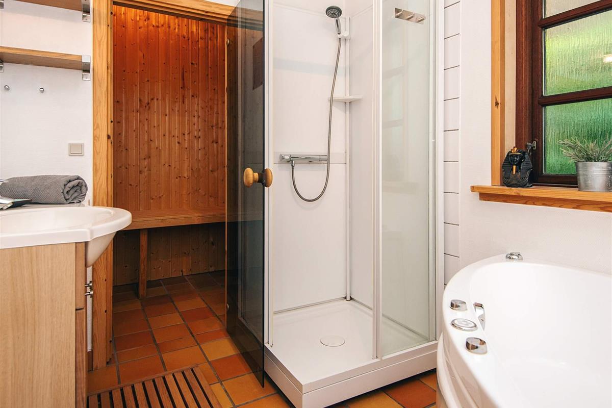 Das ganze Haus ist innen gemütlich eingerichtet und hat einen offenen Küchen-/Wohnbereich für das Familienleben. Die Küchenausstattung ist umfassend und für die Selbstverpflegung ausgelegt. Ihre Mahlzeiten können Sie auch draußen auf der überdachten Terrasse genießen. Nach einem aktiven Tag an der frischen Luft tut ein Bad im sprudelnden Wasser des Whirlpools oder ein Besuch in der warmen Sauna den verspannten Muskeln besonders gut.